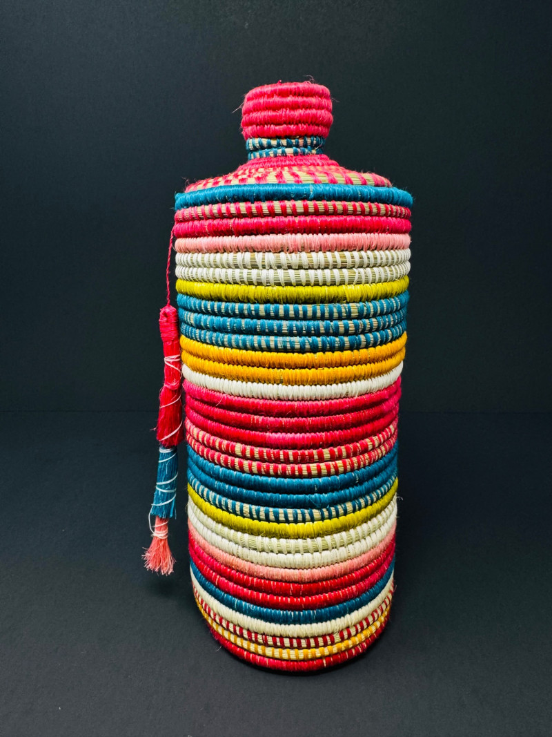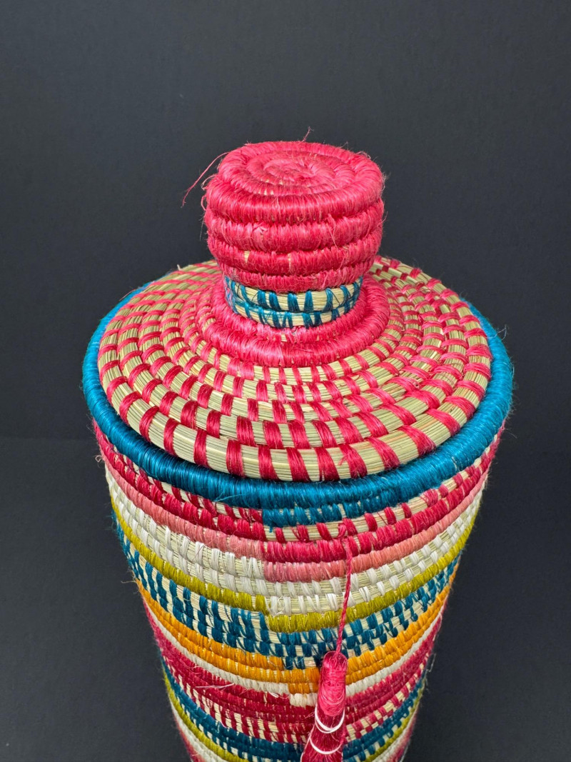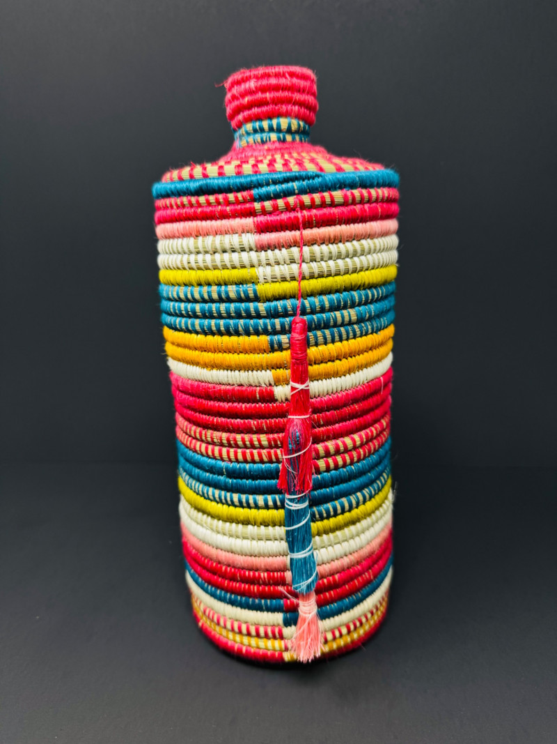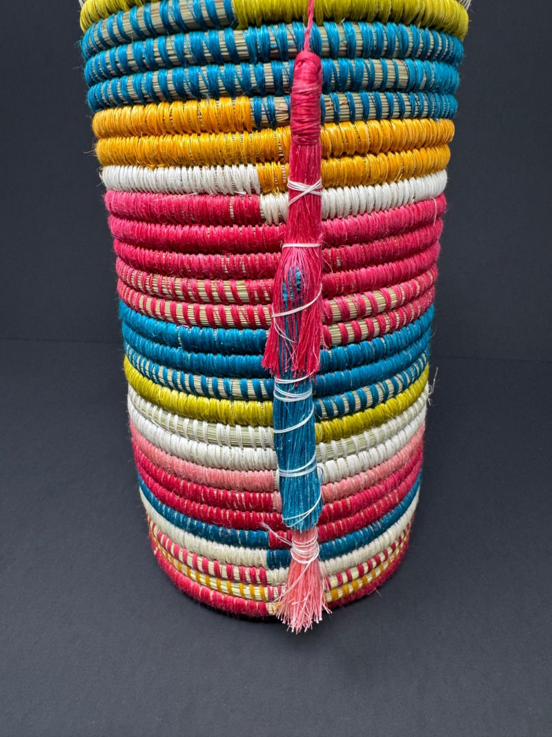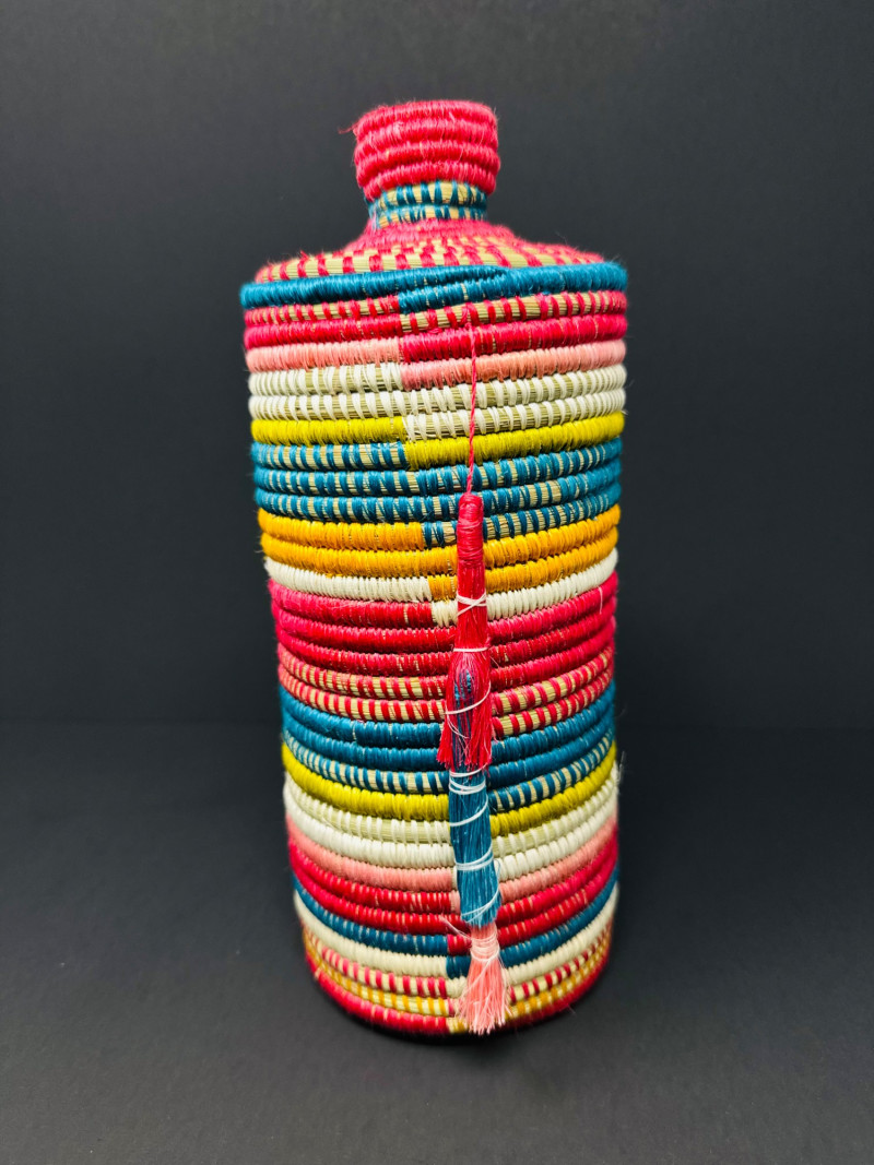 Lot # 81 - Handcrafted Rwandan Colorful Woven Vase Cover w/ Glass Insert
