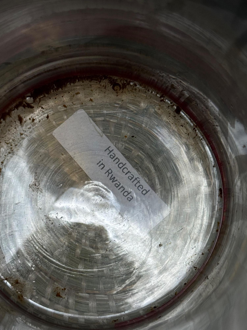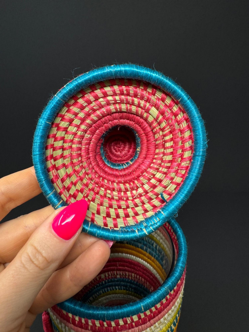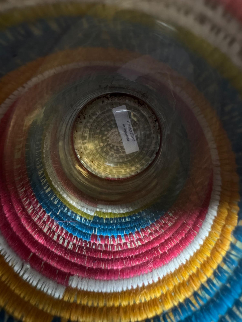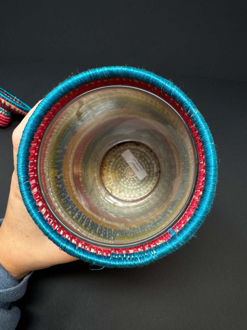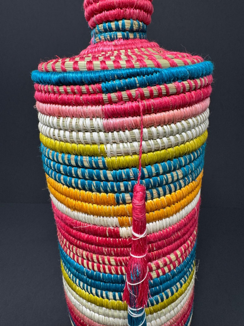 Lot # 81 - Handcrafted Rwandan Colorful Woven Vase Cover w/ Glass Insert