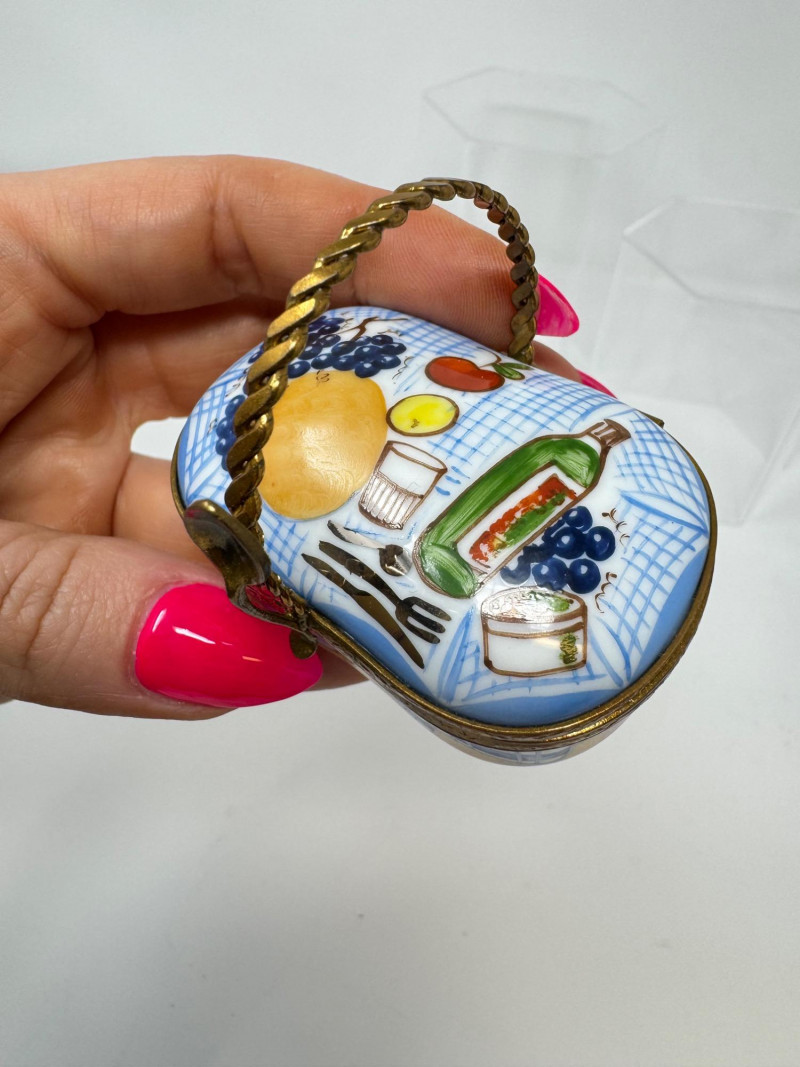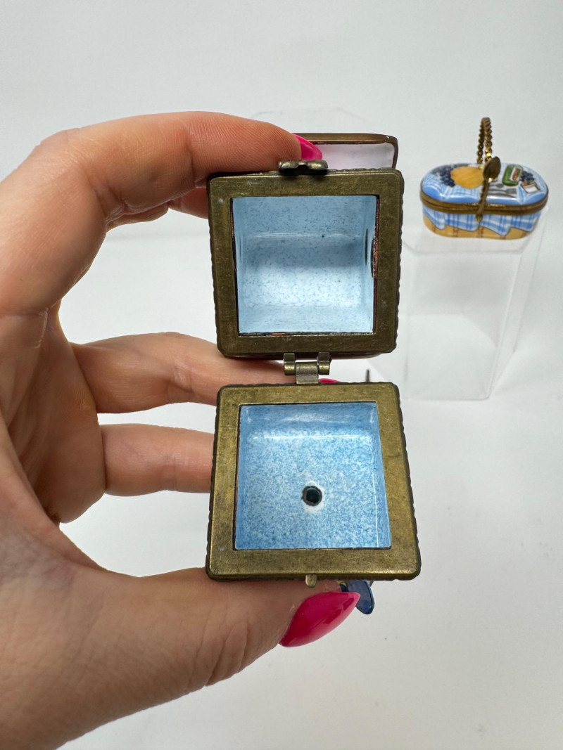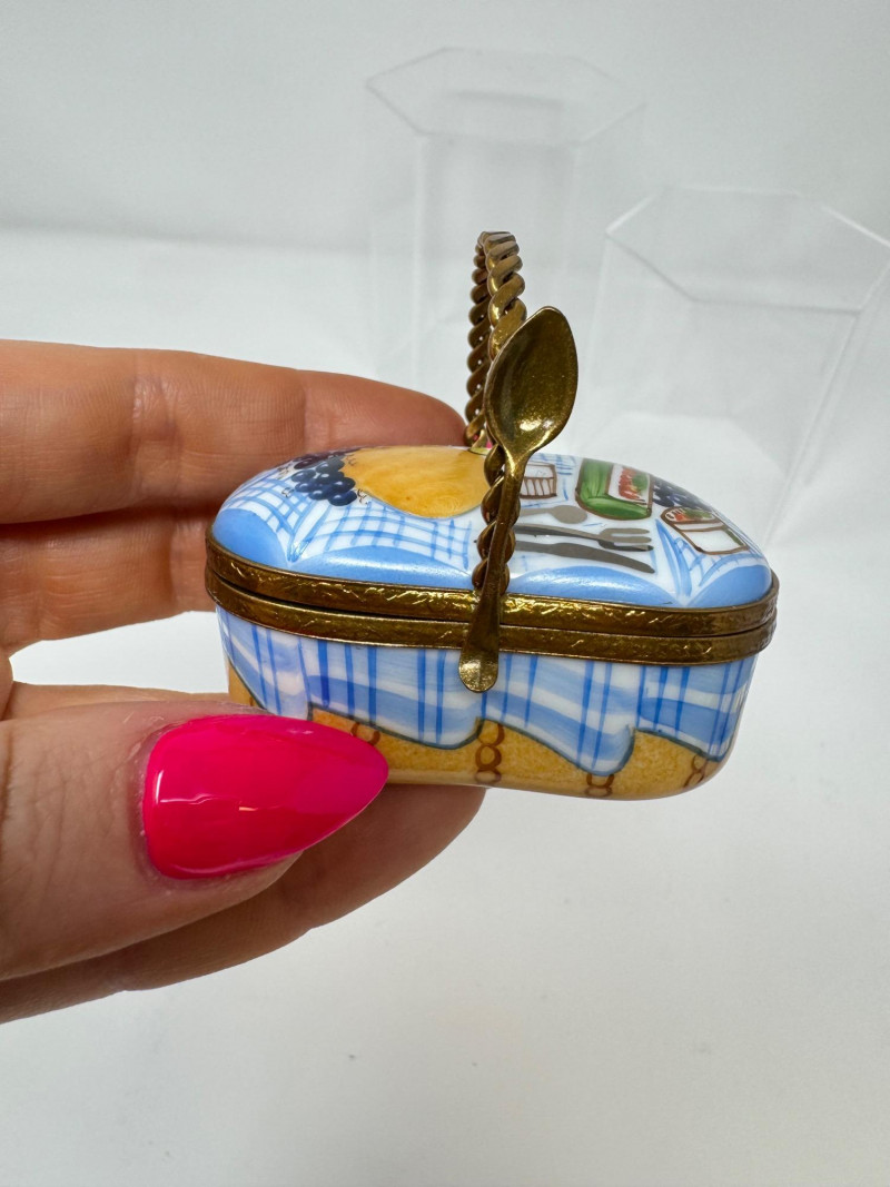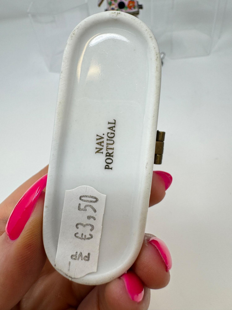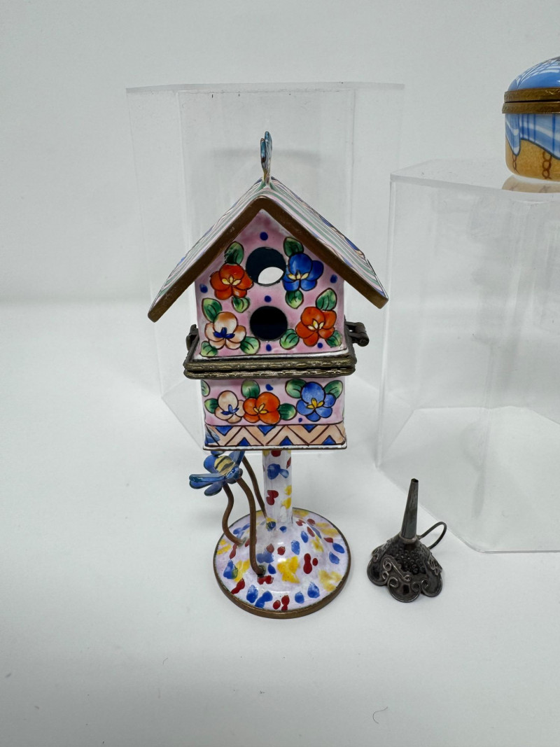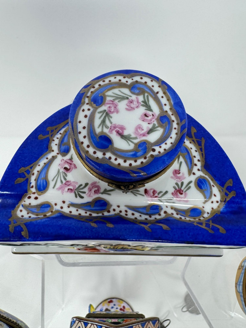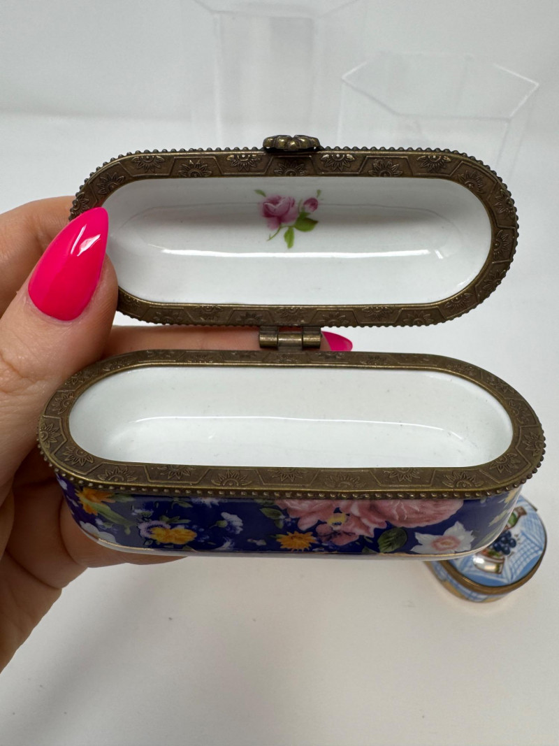 Lot # 93 - Porcelain Limoges Trinket Boxes, Portugal Trinket Box & Metal Funnel