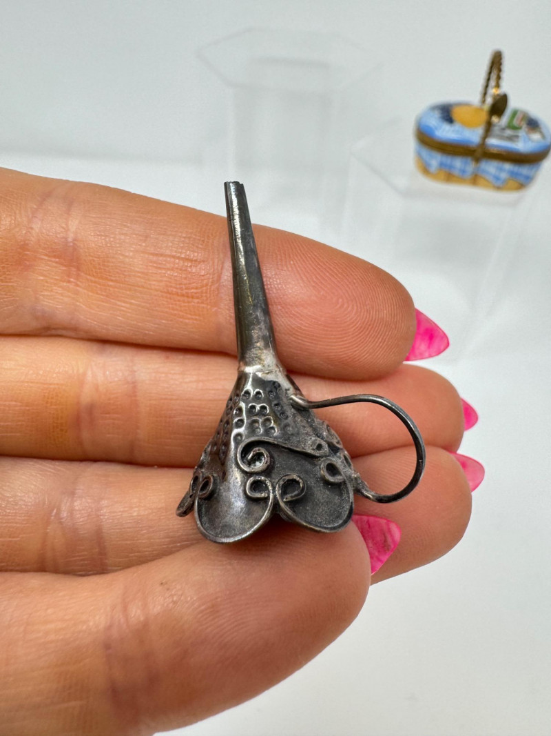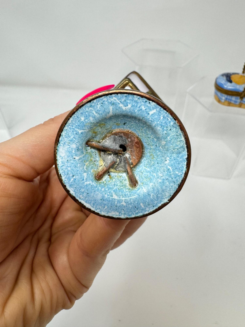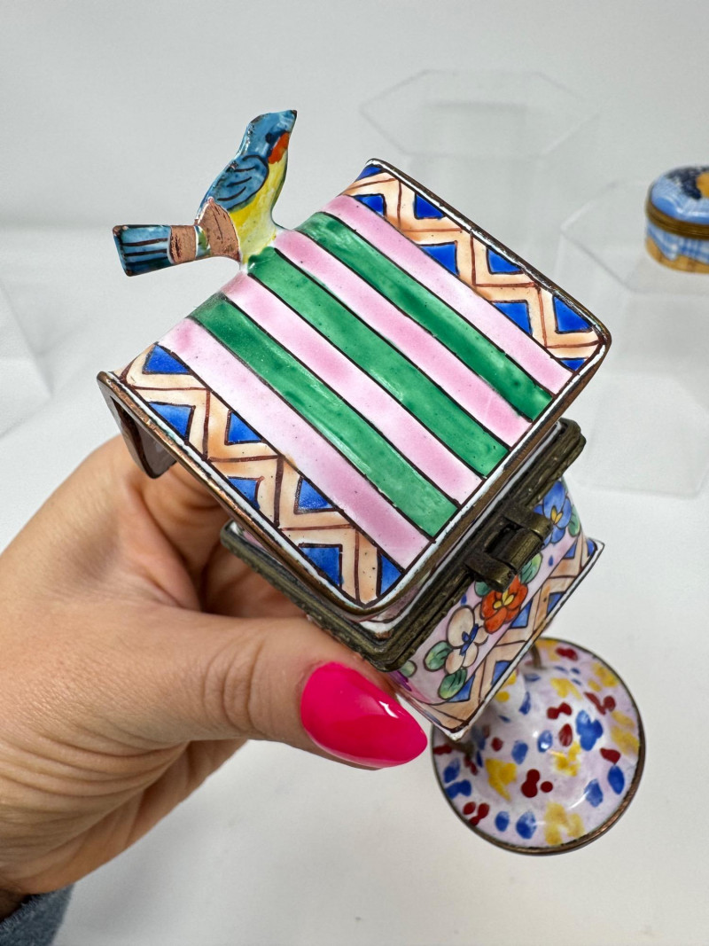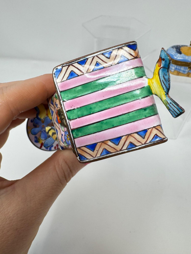 Porcelain Limoges Trinket Boxes, Portugal Trinket Box & Metal Funnel. Largest is 4" Tall