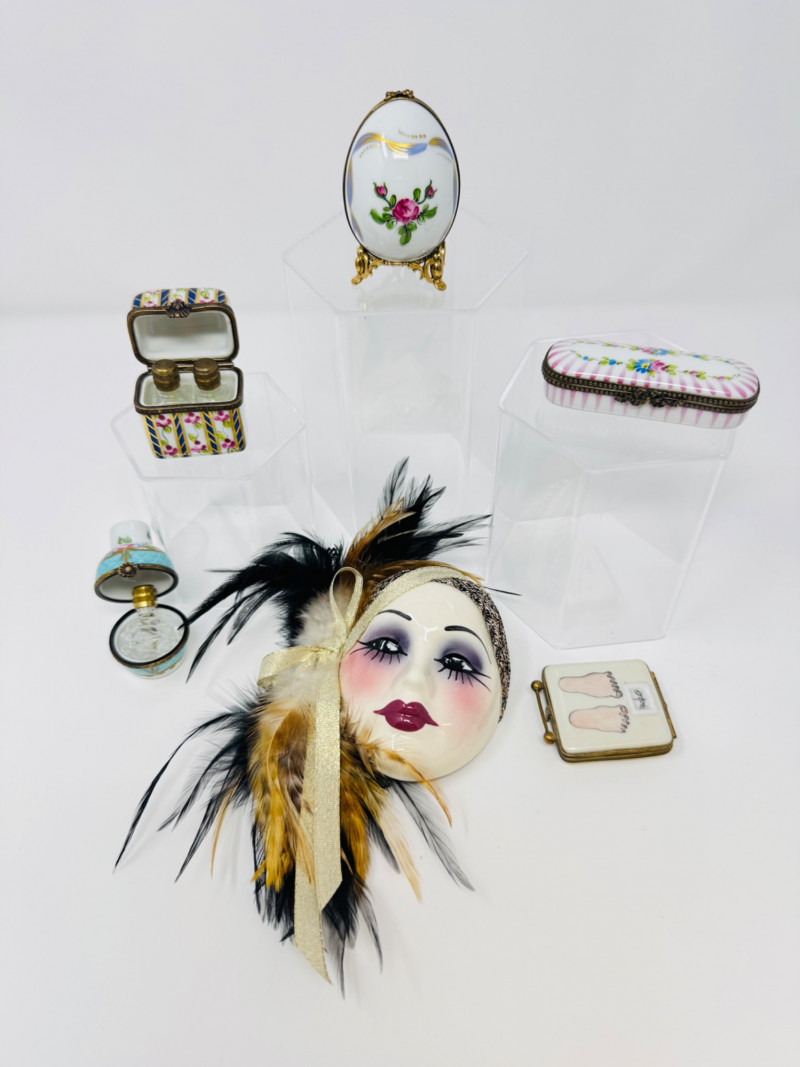 5 Limoges France Porcelain Boxes + Unique Creations Mask.