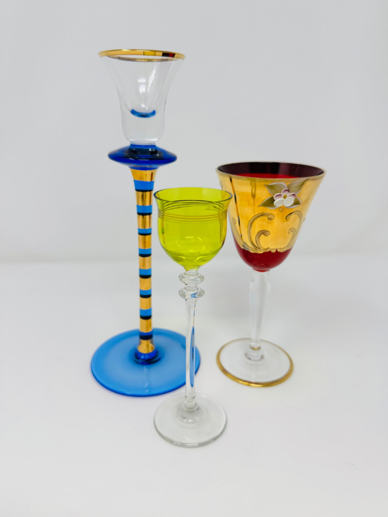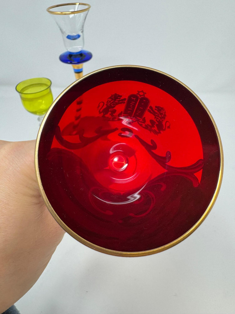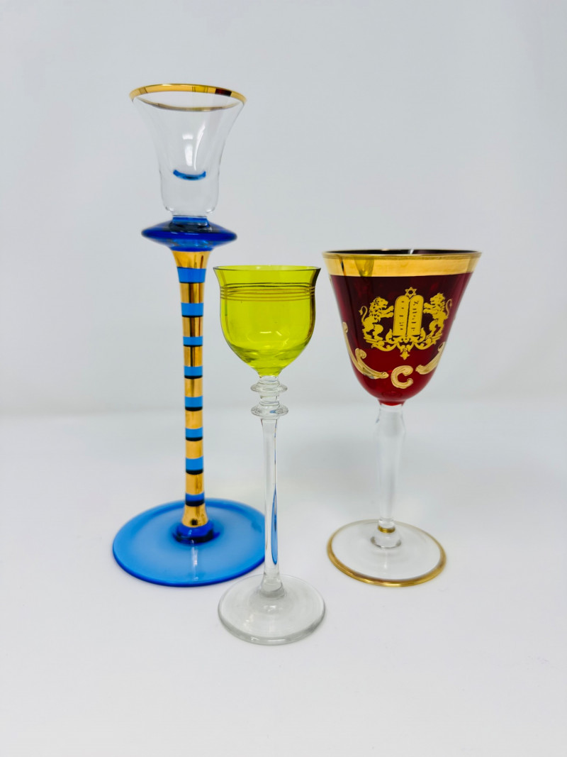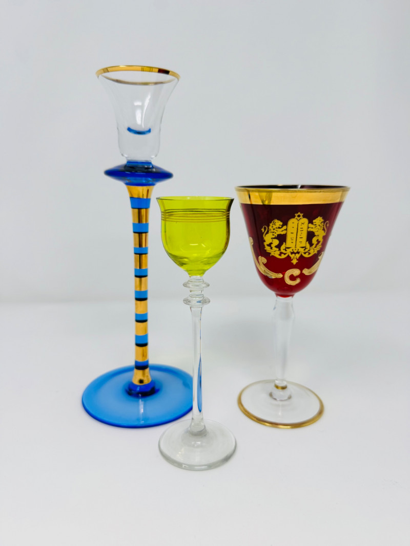 Lot # 95 - Jewish Kiddush Cup & Pair of Czech Aperitif Glasses – Shabbat Set