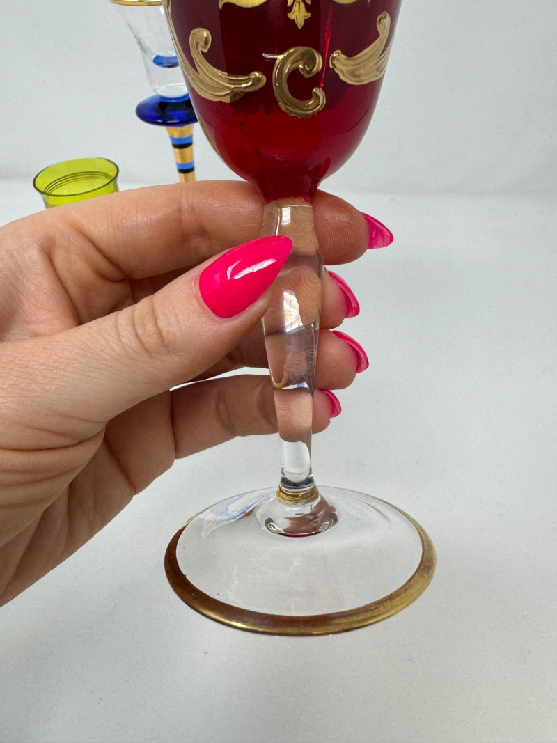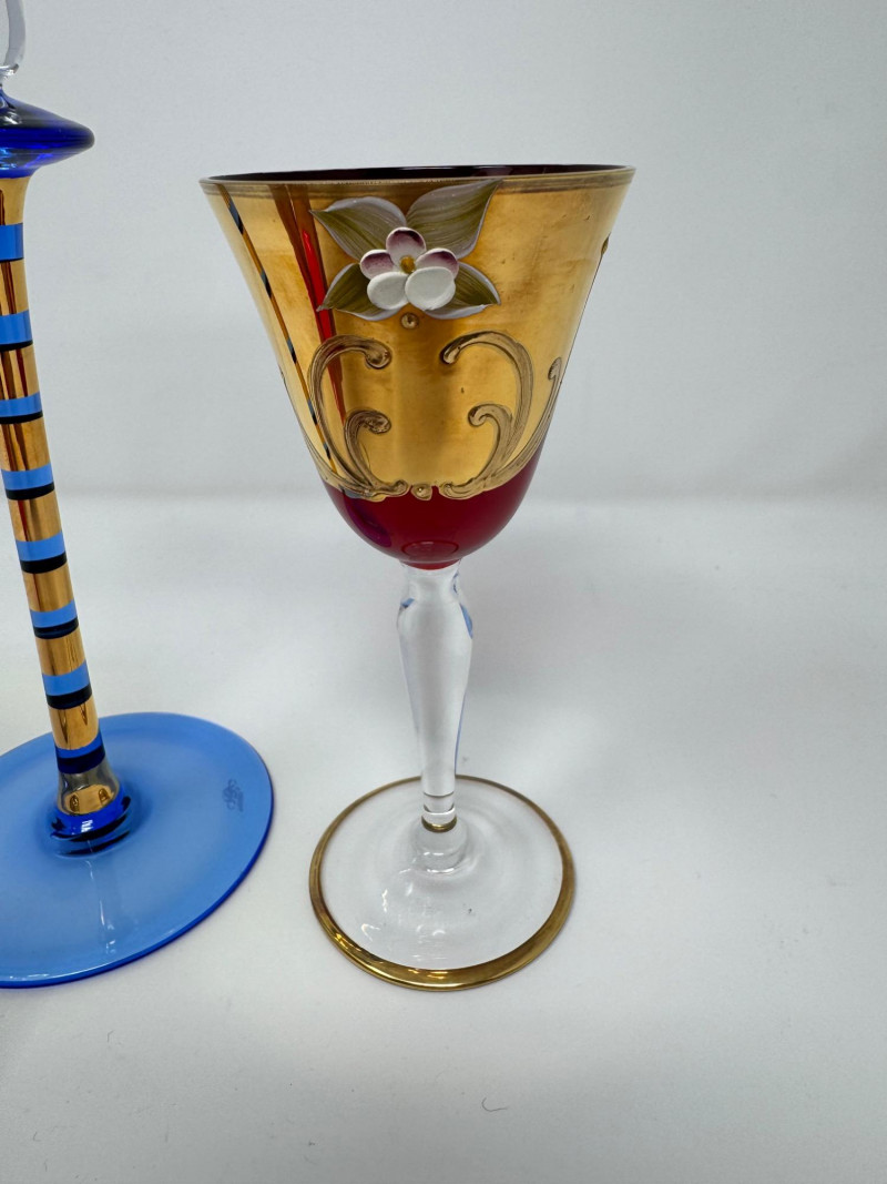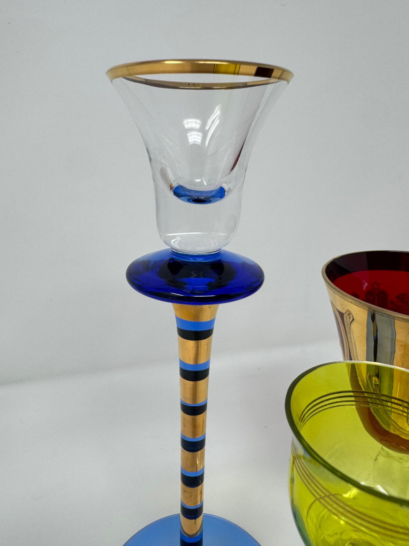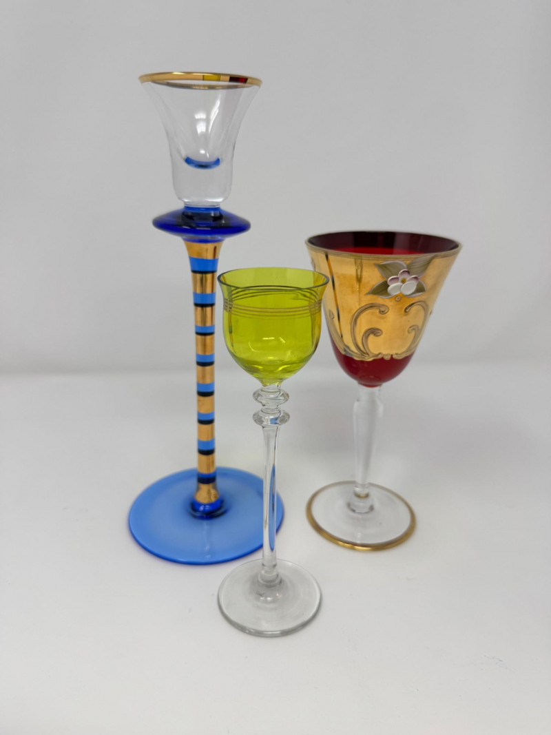 Lot # 95 - Jewish Kiddush Cup & Pair of Czech Aperitif Glasses – Shabbat Set