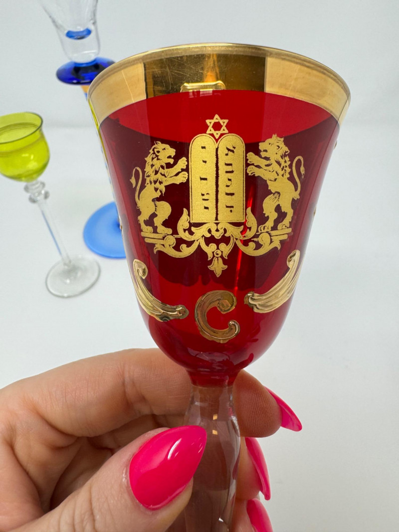 Jewish Kiddush Cup & Pair of Czech Aperitif Glasses – Shabbat Set.