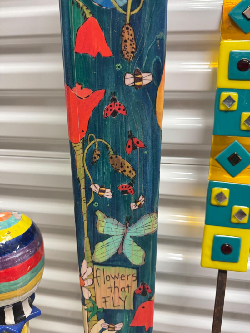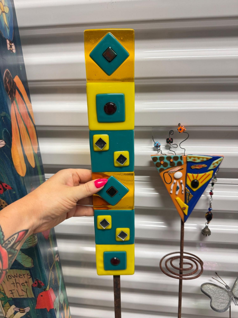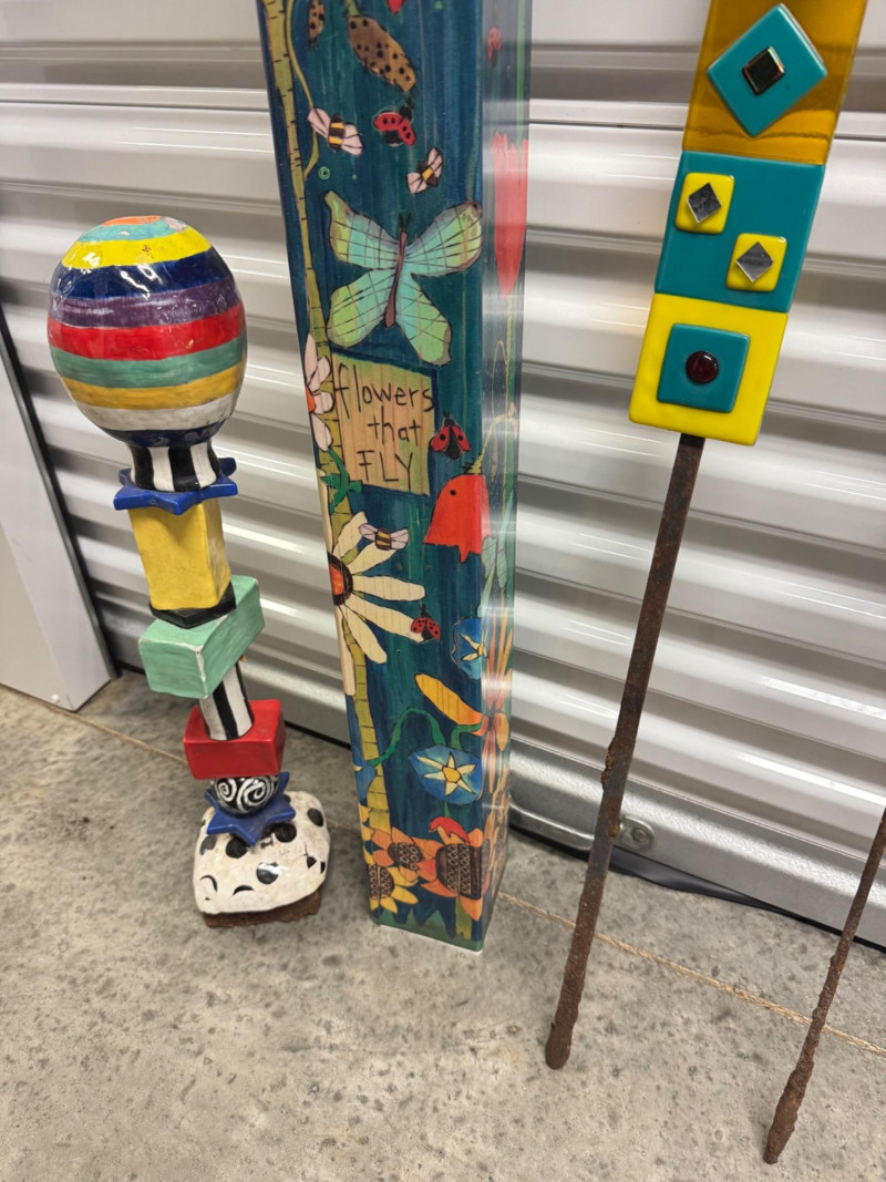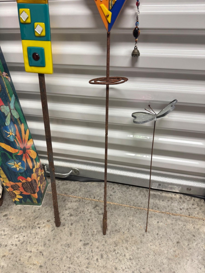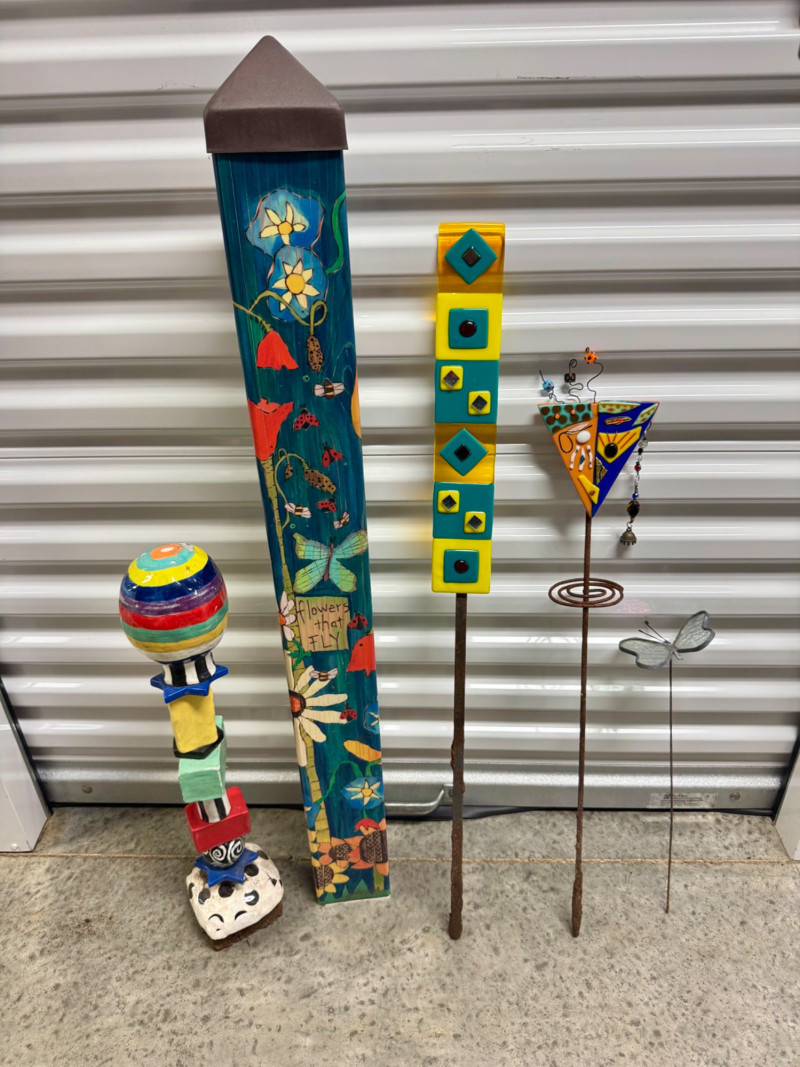 Colorful Whimsical Yard Art Lot – Blown Glass & Mixed Materials Designs . Ranging In Height From 22” To 40”