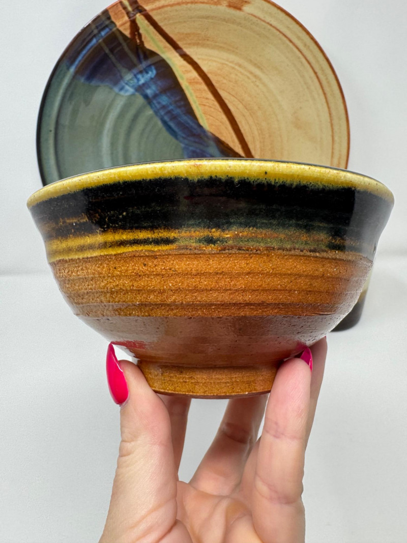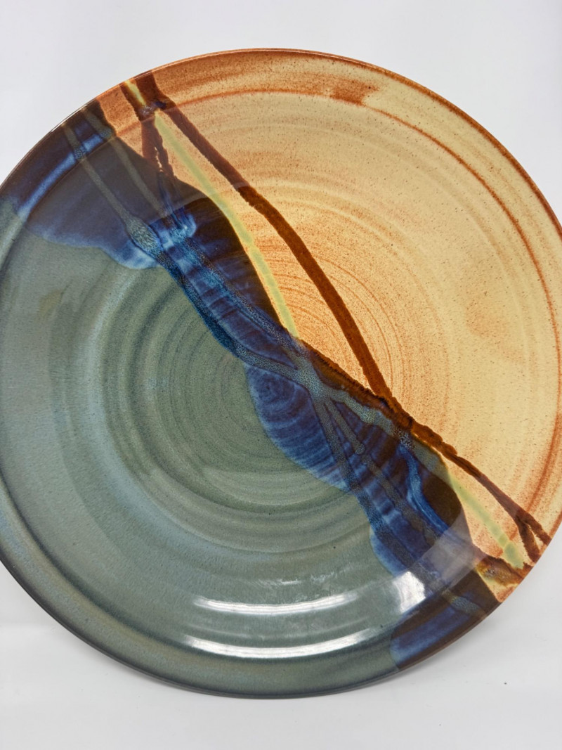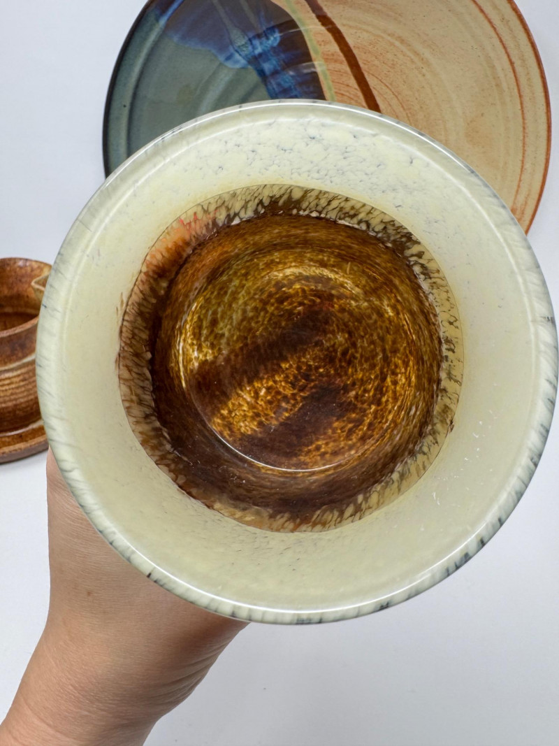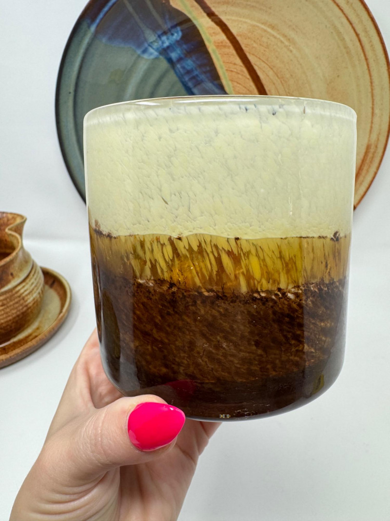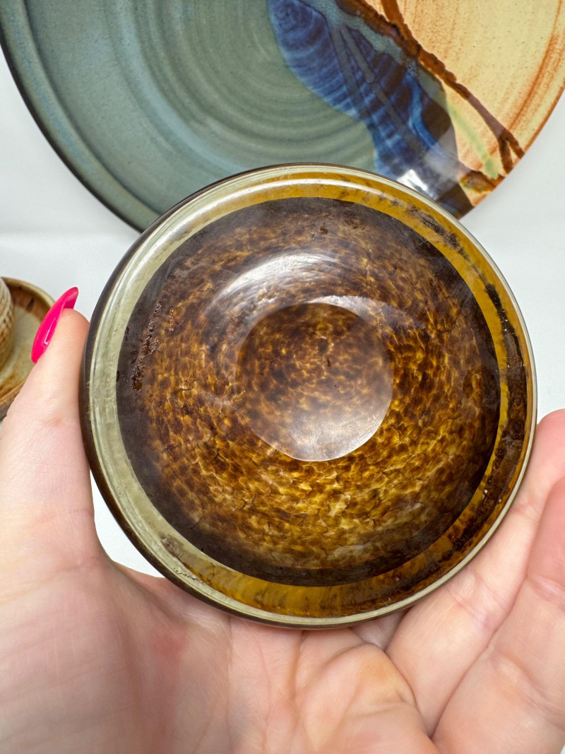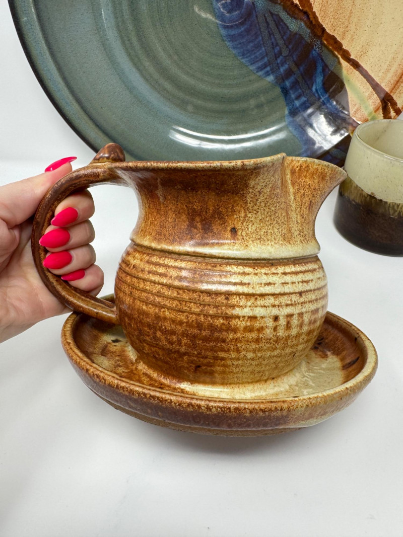 Signed Studio Pottery & Glass Pieces– Platter, Pitcher, Bowl, & Votive.