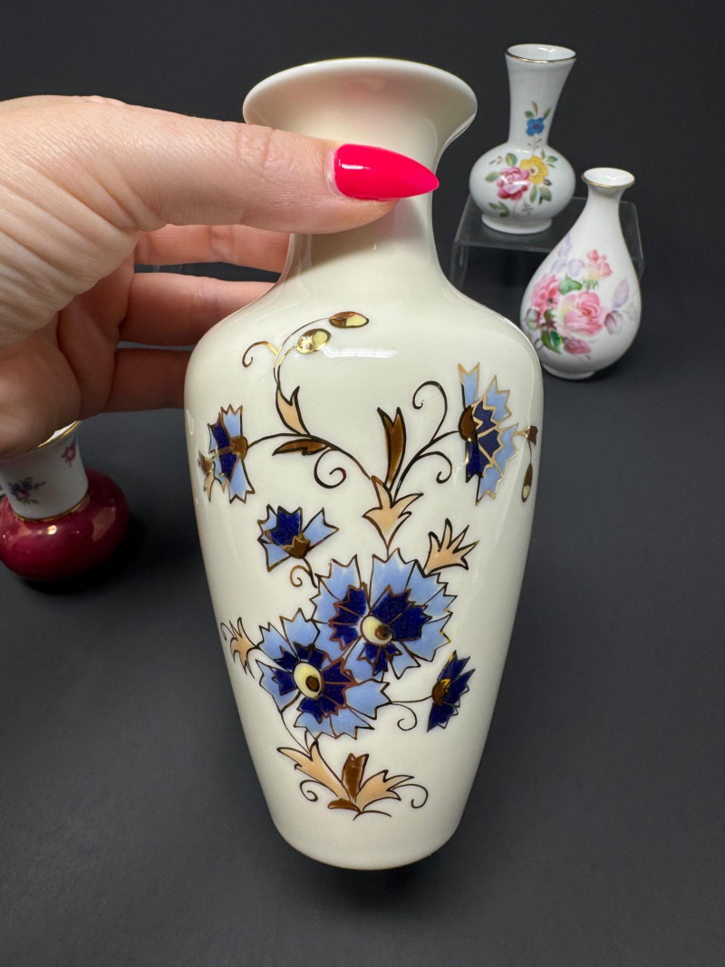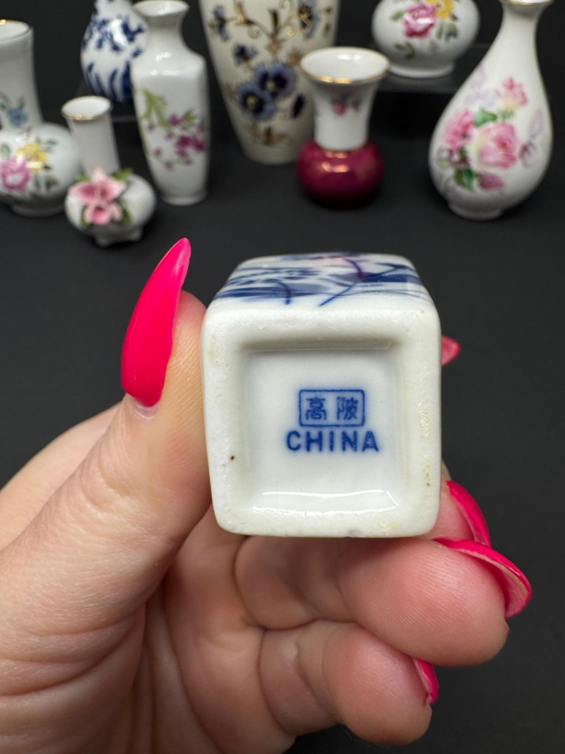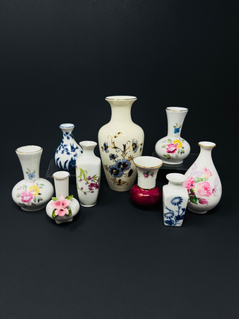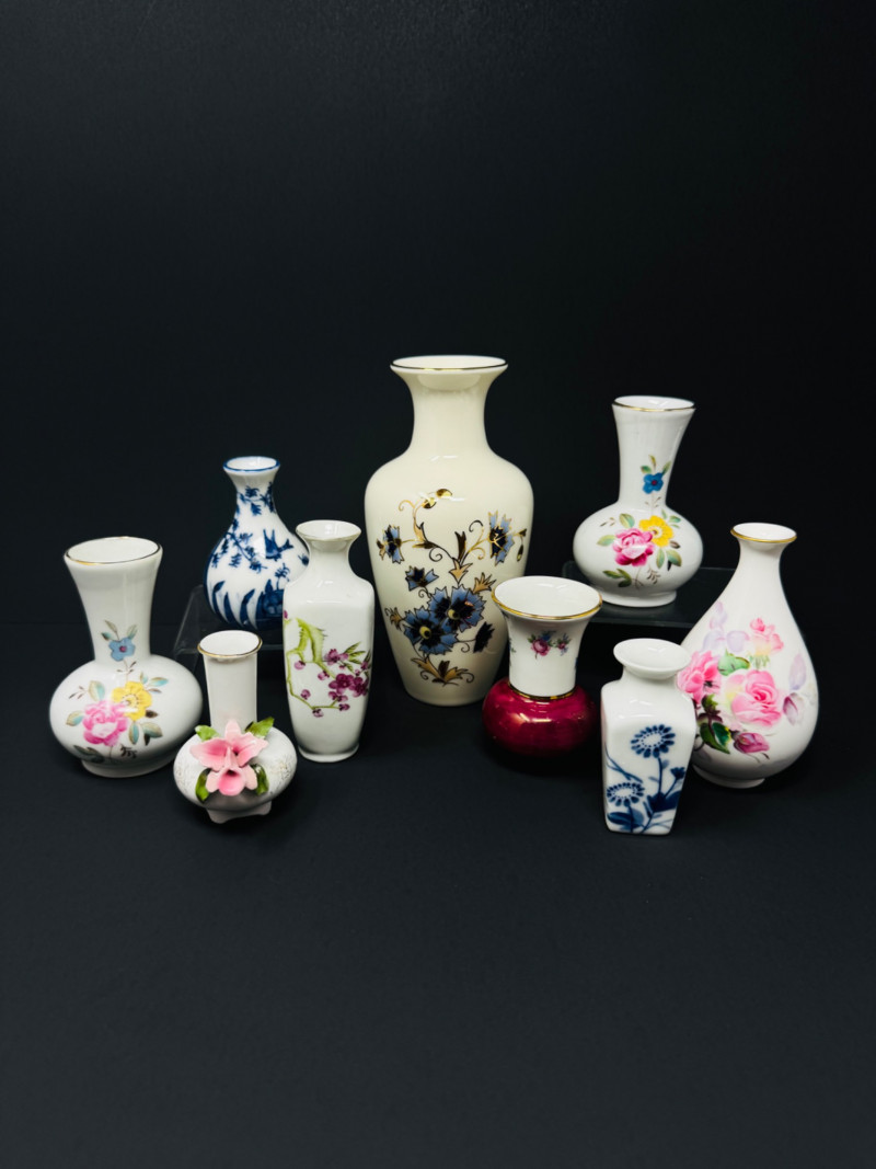9 Miniature Porcelain Vases – Floral, Asian & European Marks.