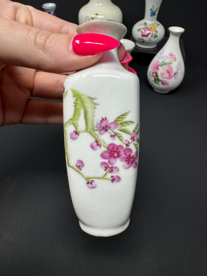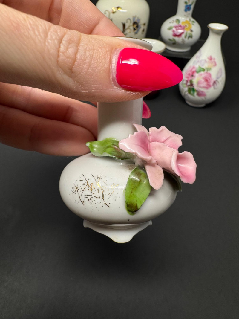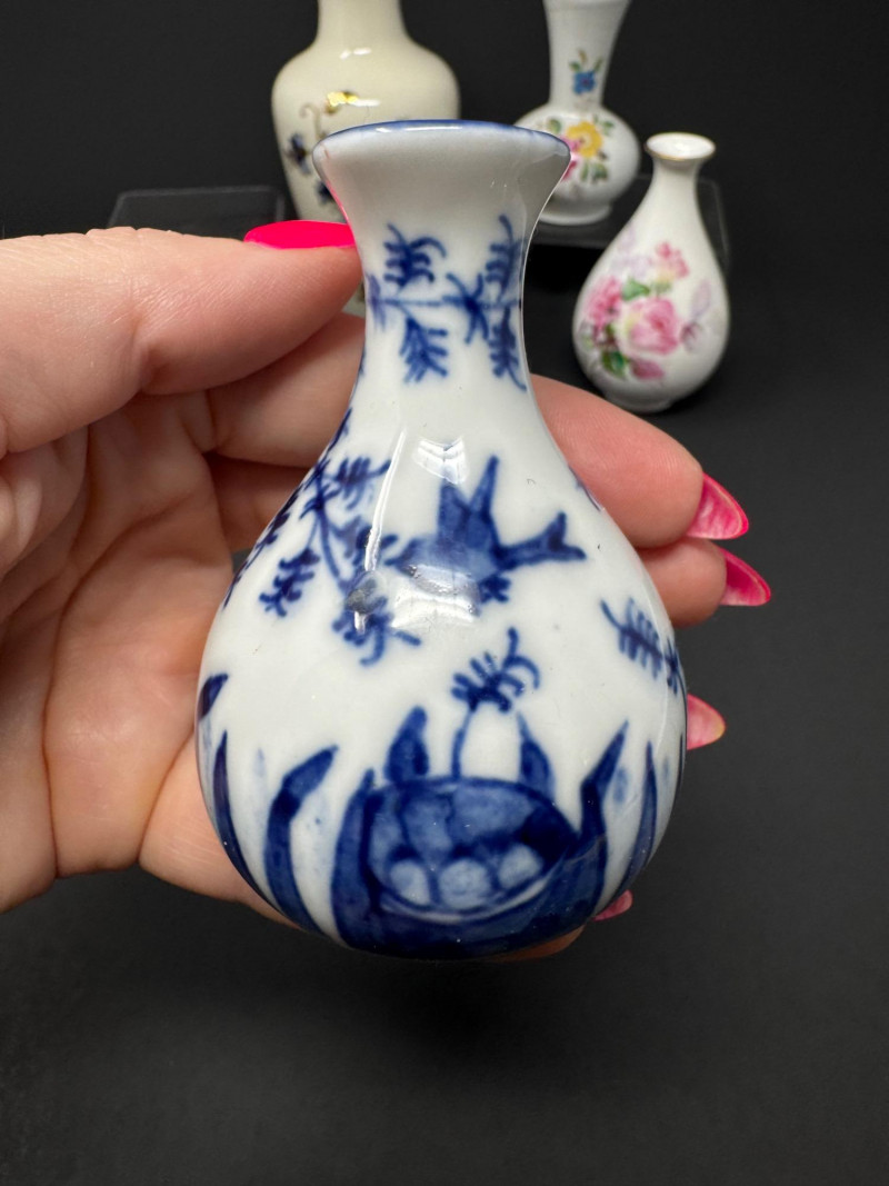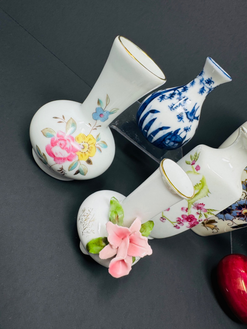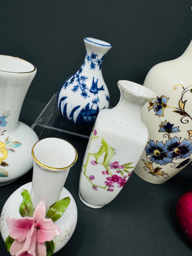 Lot # 113 - 9 Miniature Porcelain Vases – Floral, Asian & European Marks