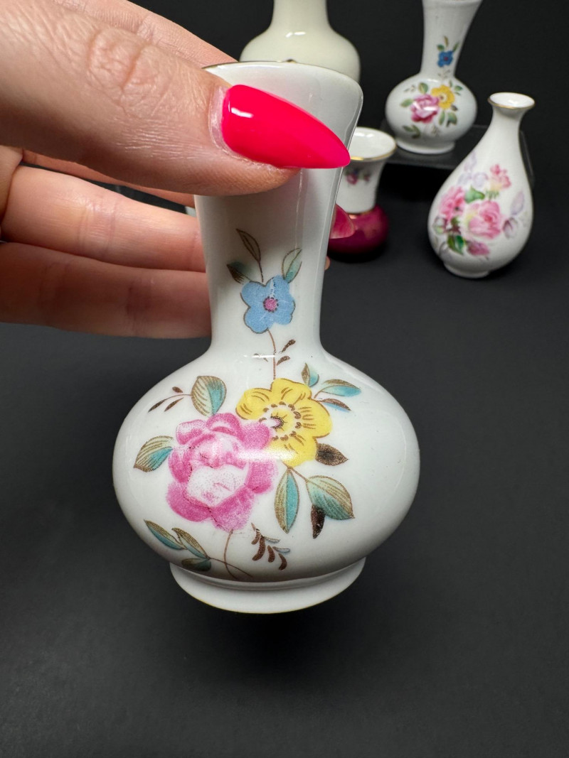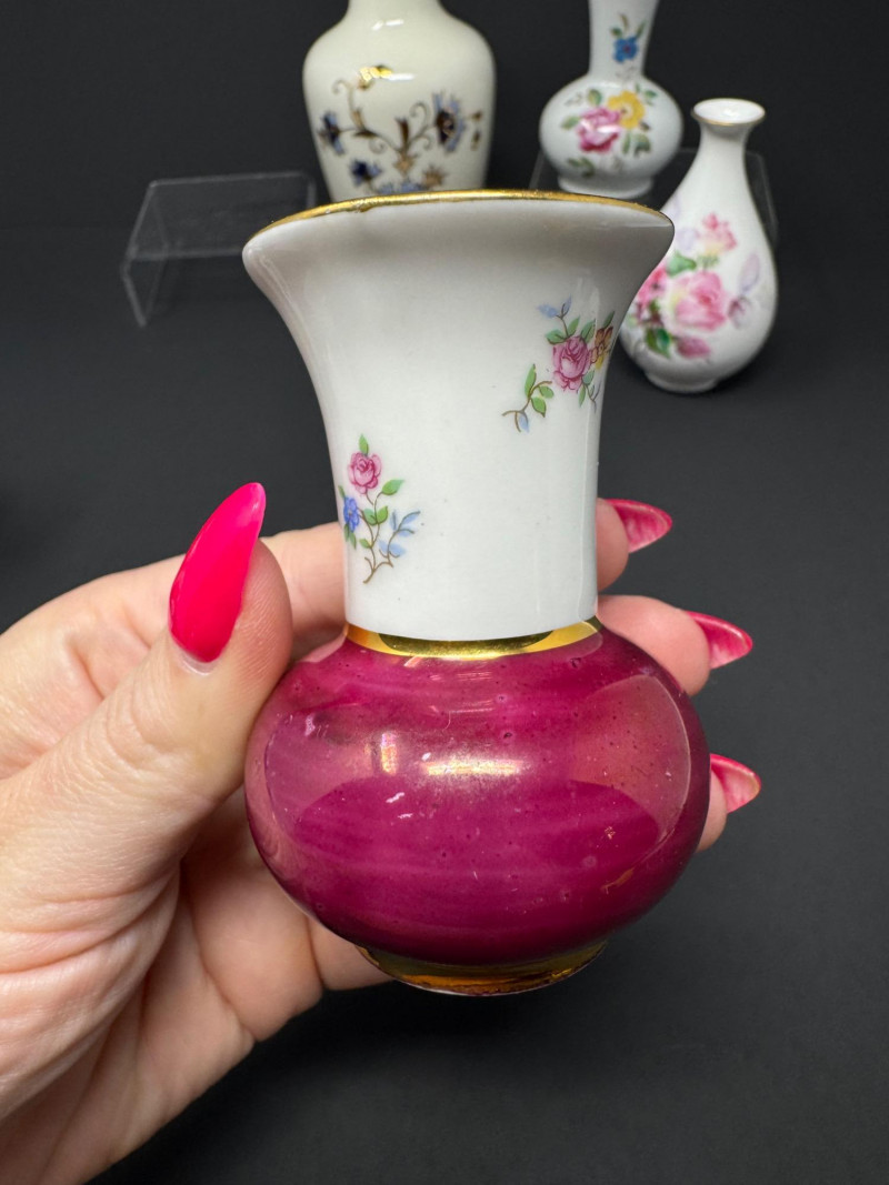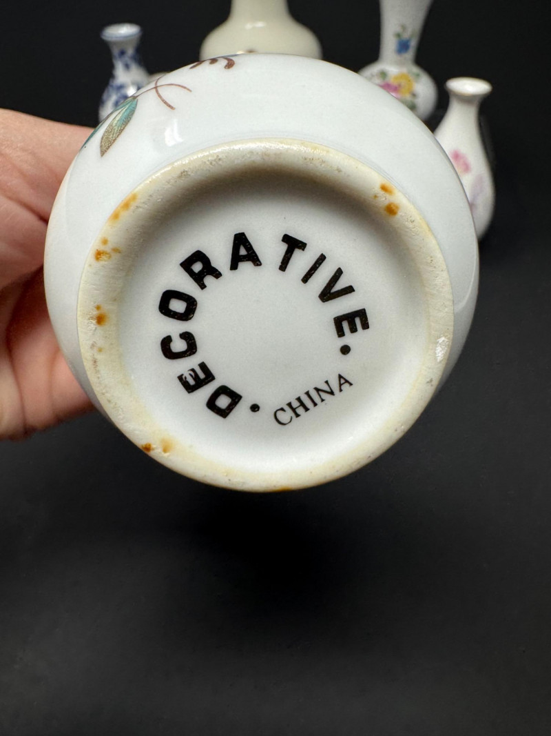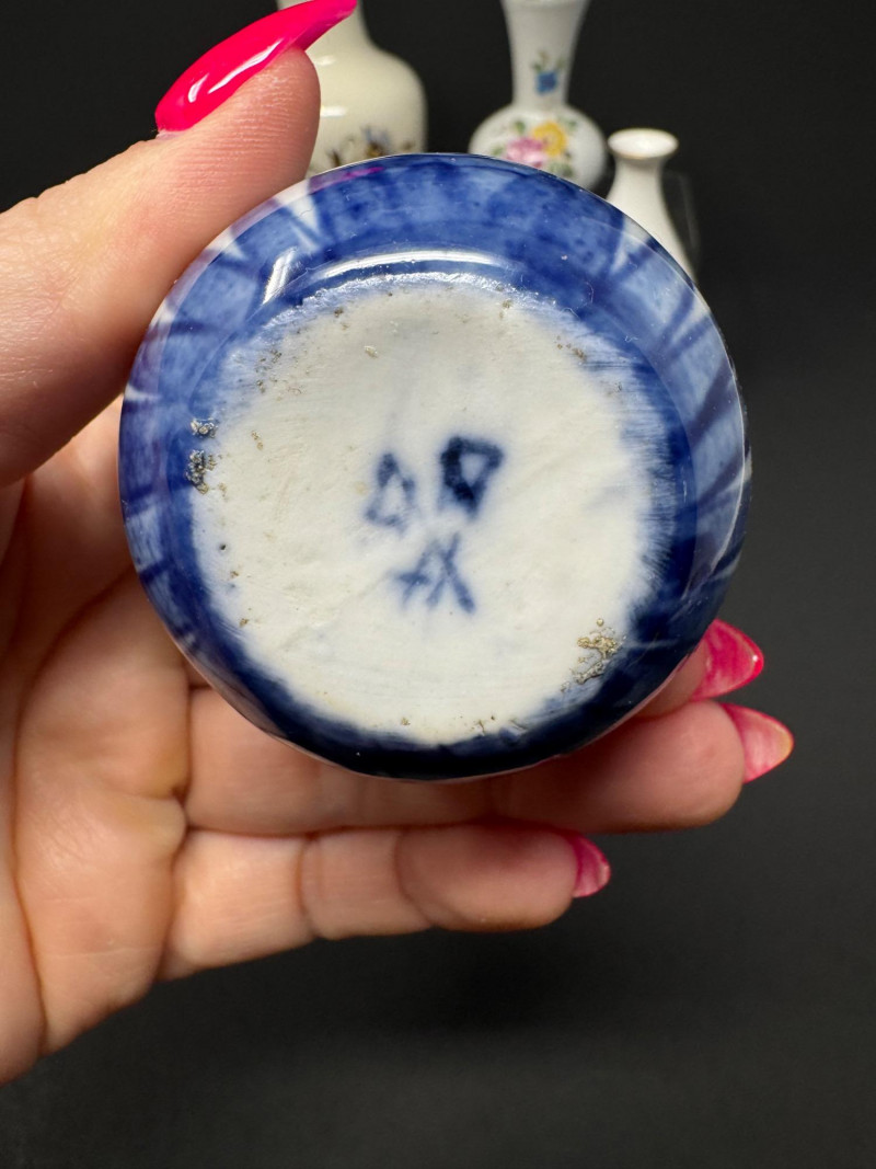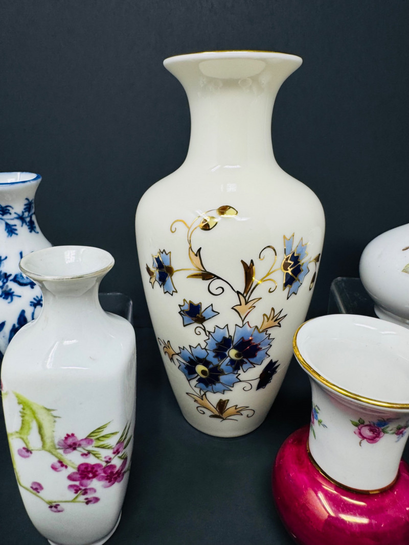 Lot # 113 - 9 Miniature Porcelain Vases – Floral, Asian & European Marks