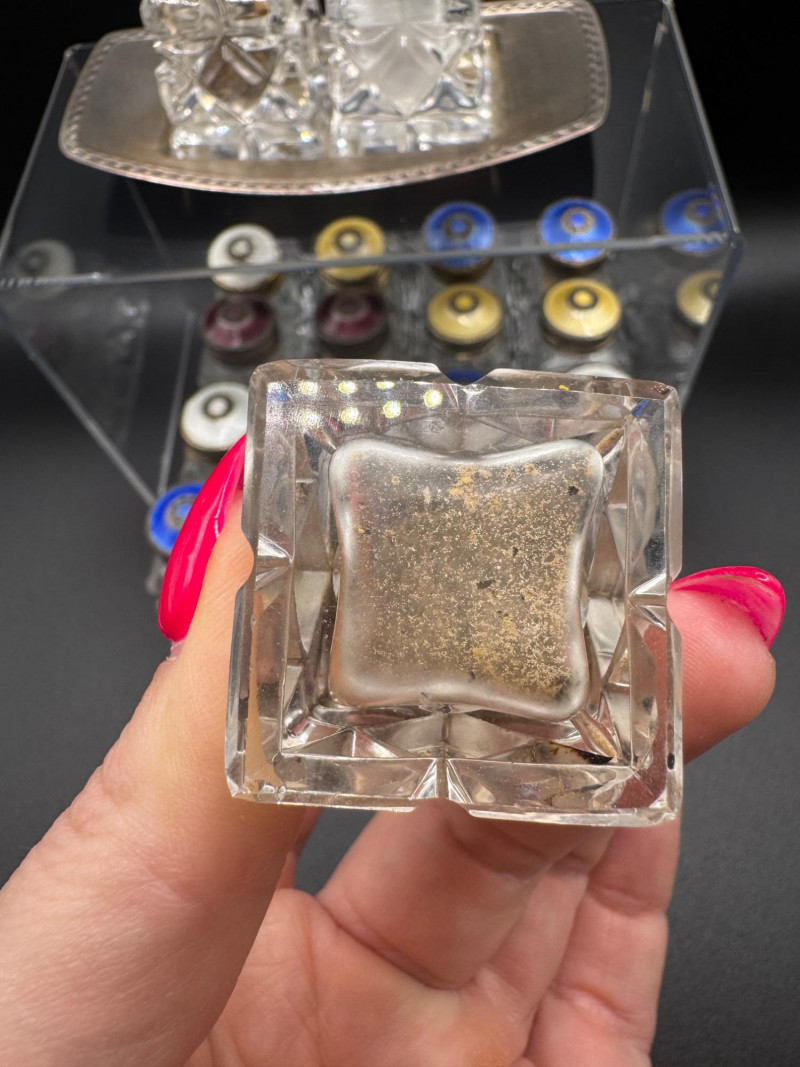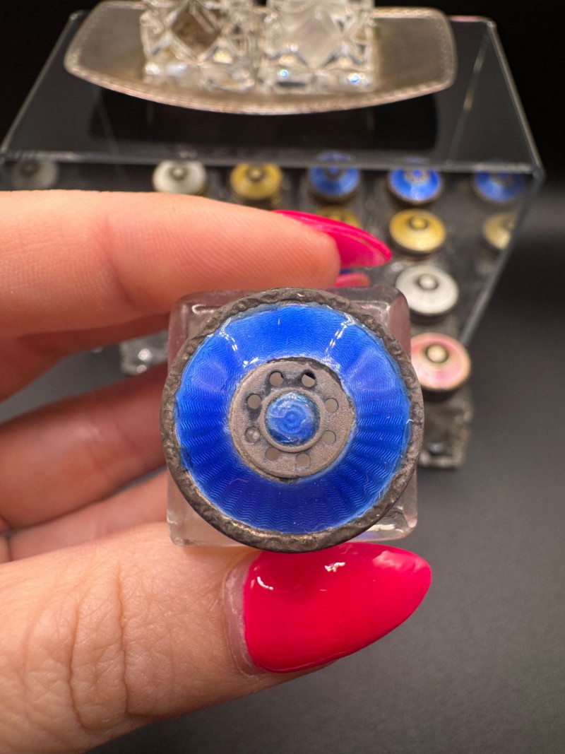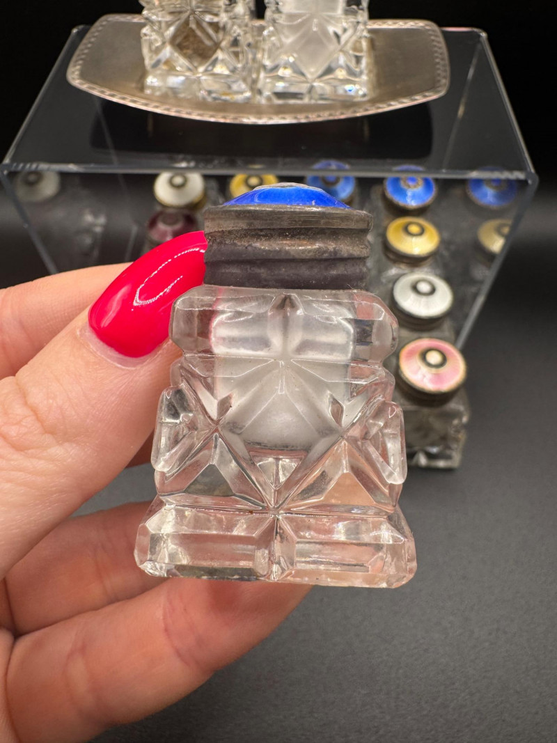 Norway Crystal Salt & Pepper Shakers – Enamel Sterling Silver Tops. 1.5" Tall