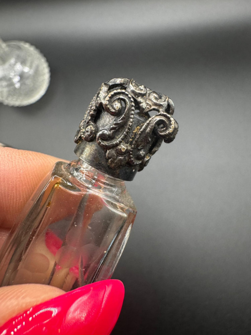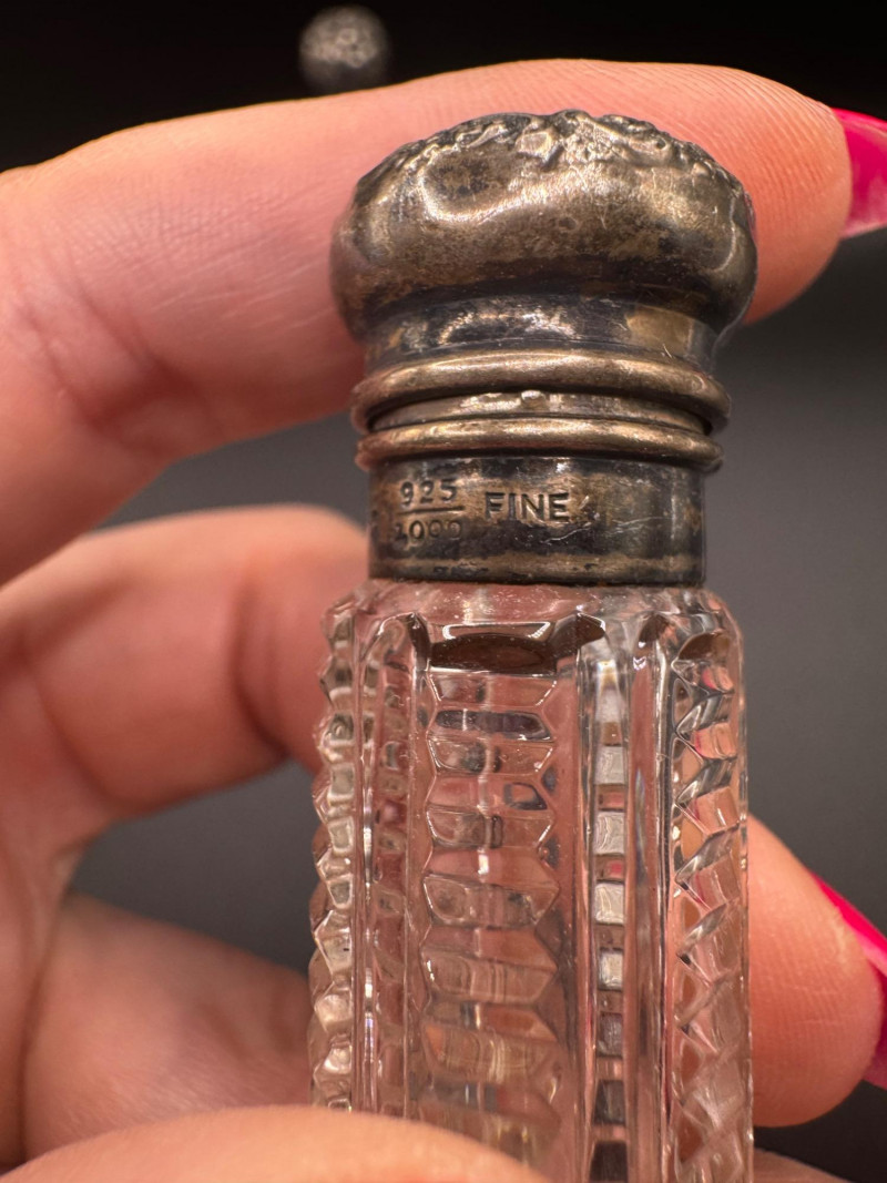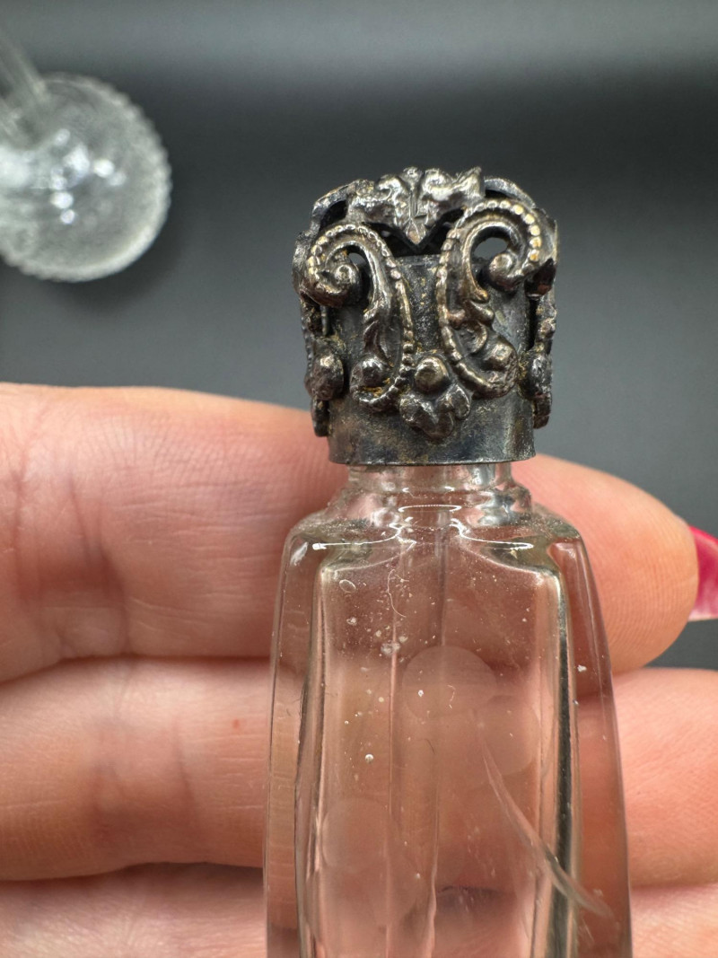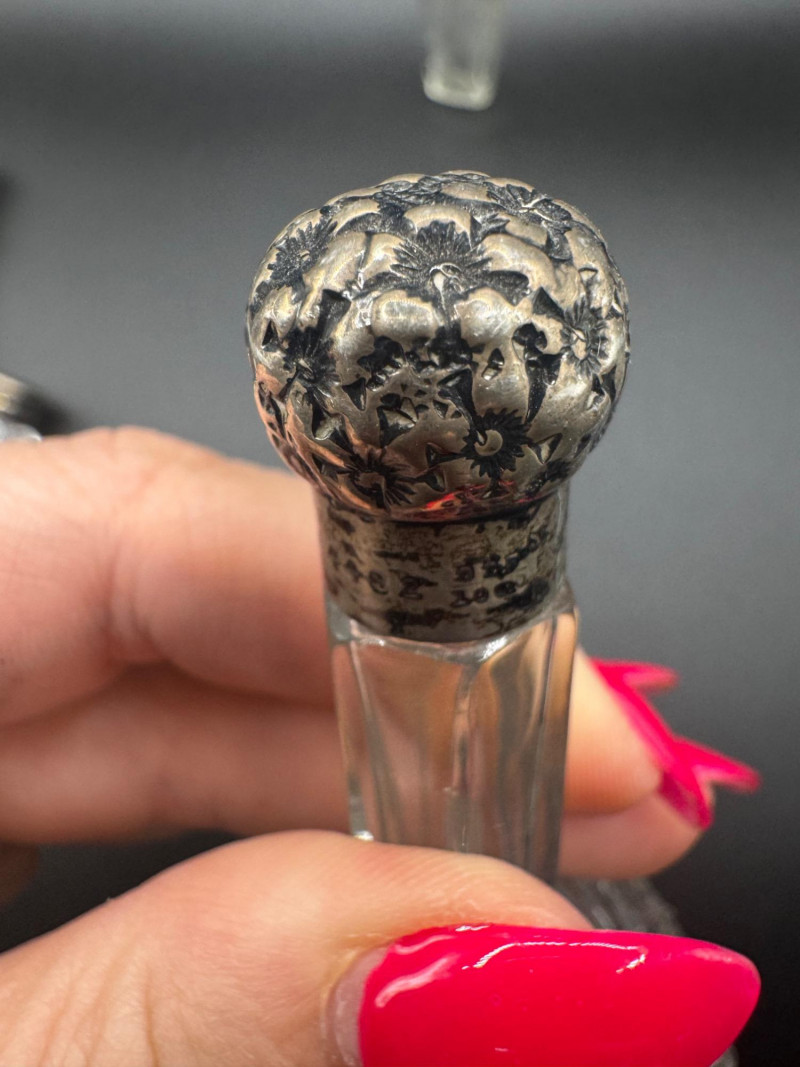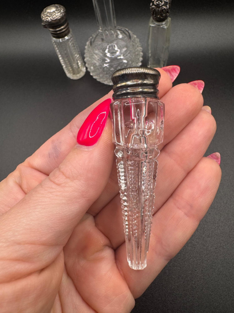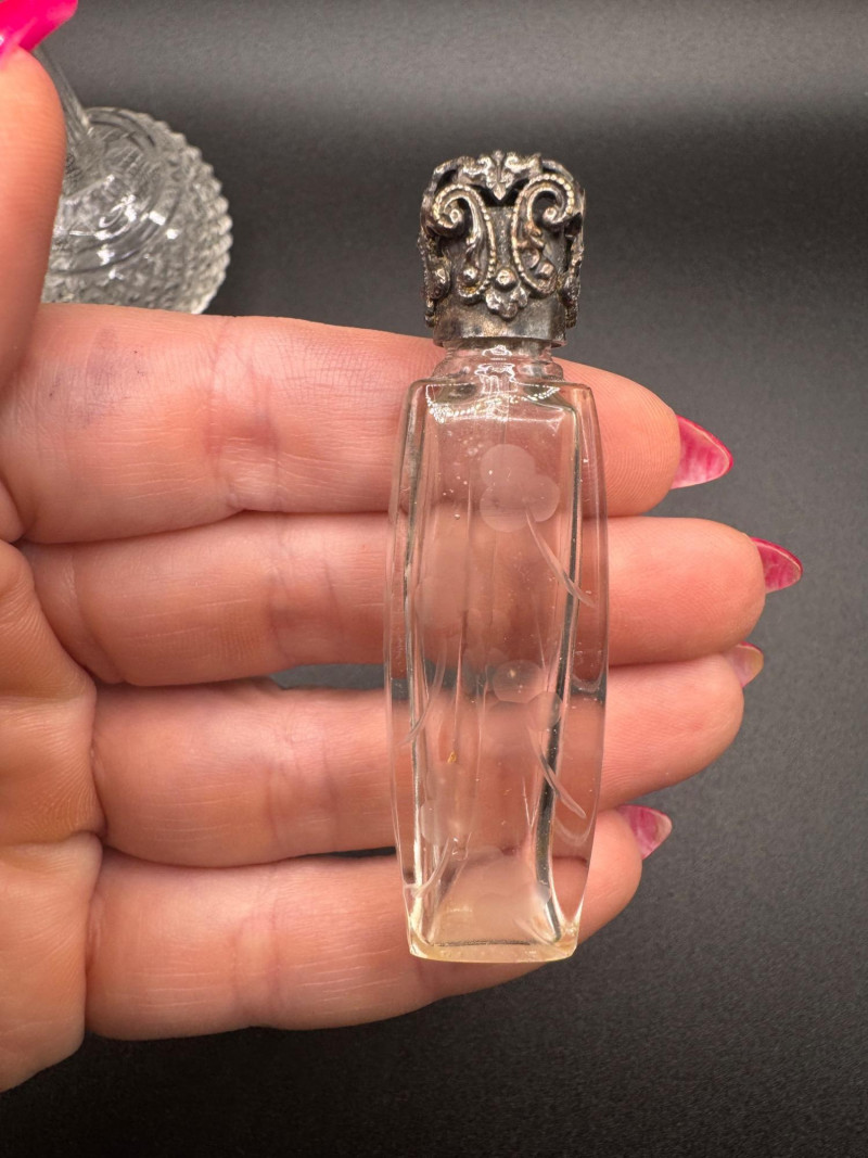 Antique Crystal Perfume Bottle Collection – 5 Pcs, 2 Sterling Tops.