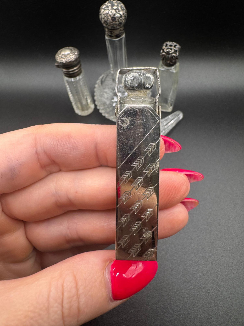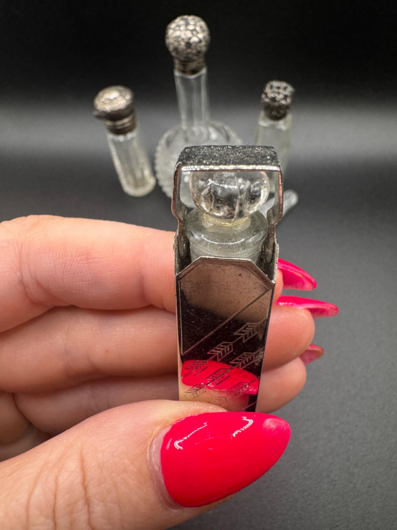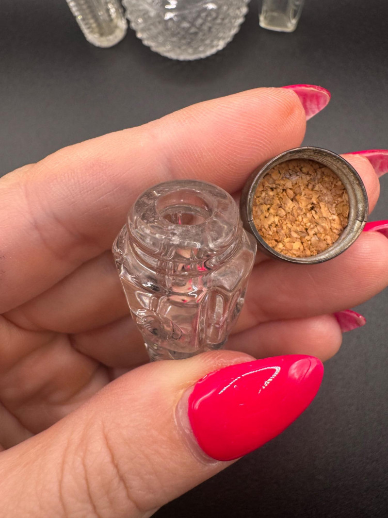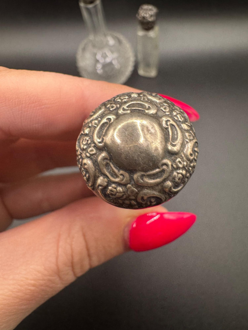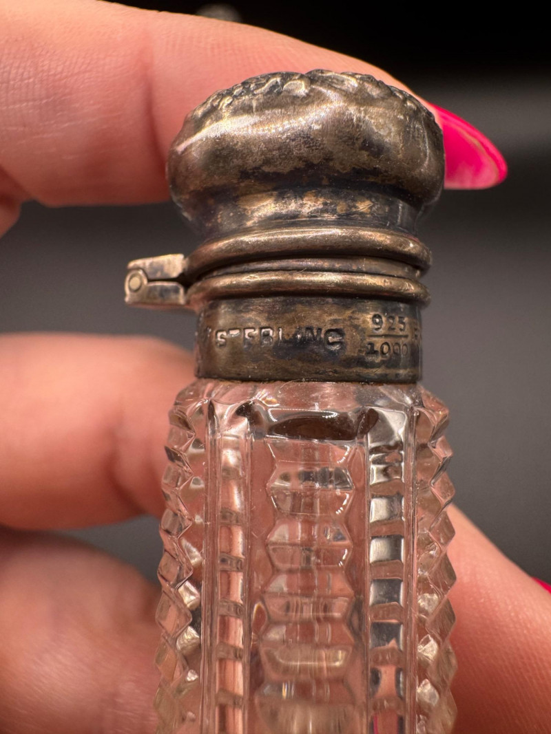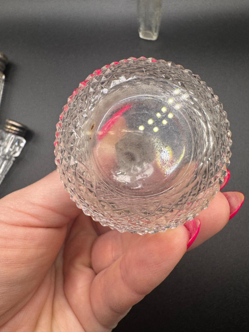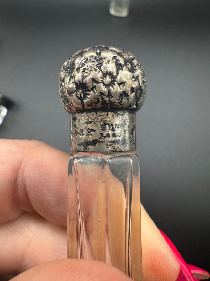 Antique Crystal Perfume Bottle Collection – 5 Pcs, 2 Sterling Tops.