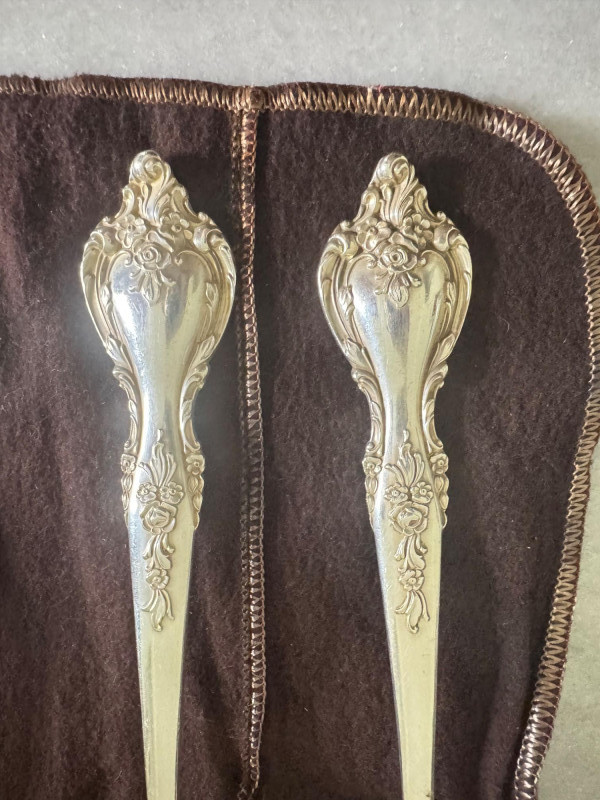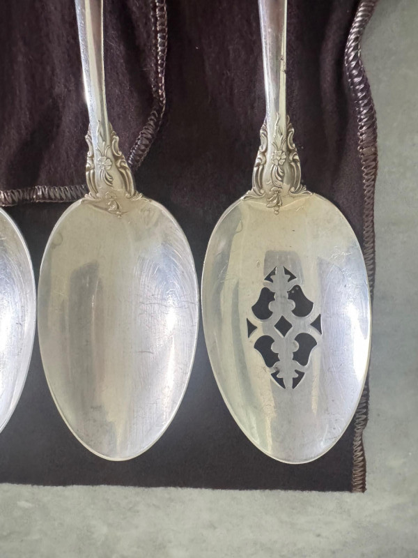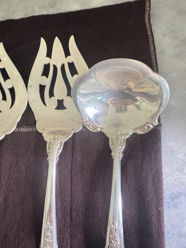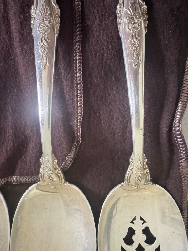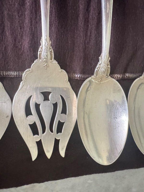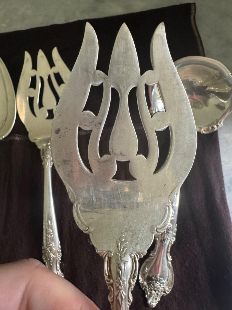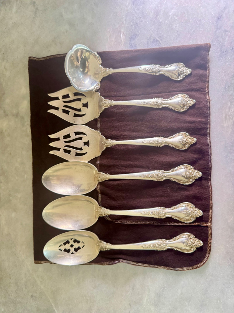 Lunt Sterling Silver Eloquence Pattern Serving Utensils – 6 Pc, 492g. Approx. 492.25 grams. Disclaimer: We do not test the metals of the items listed for auction. By placing a bid, you acknowledge and agree that you are purchasing the item "as is" and without any guarantee of metal quality. We do not offer refunds based on metal content or purity.