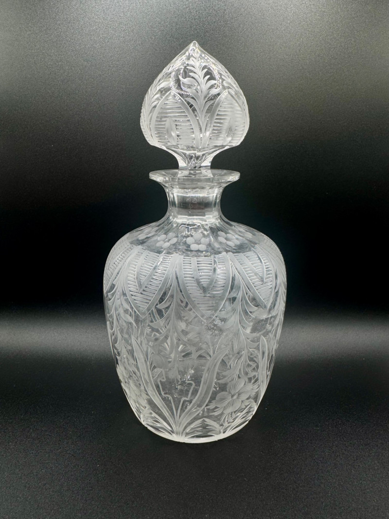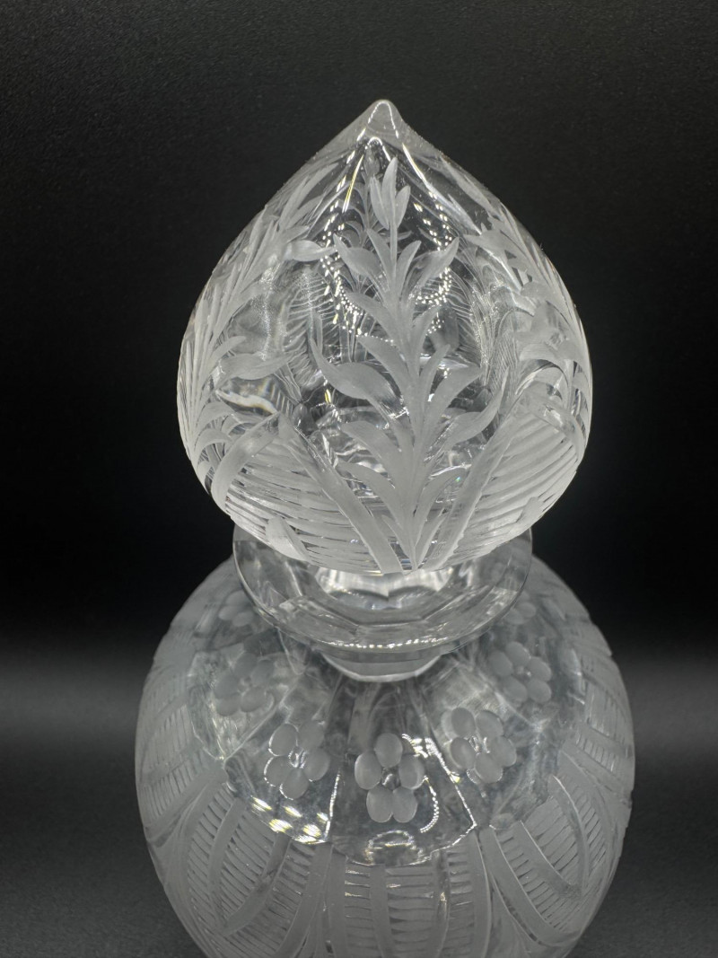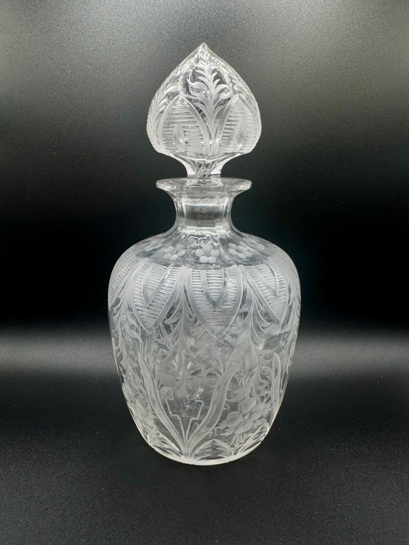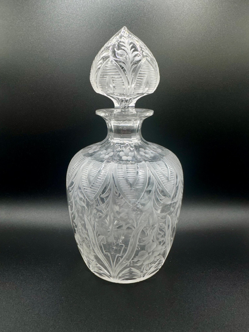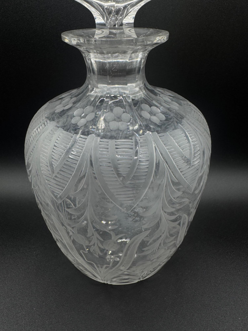 Lot # 120 - Cut Crystal Decanter w/ Stopper – Floral & Leaf Etched