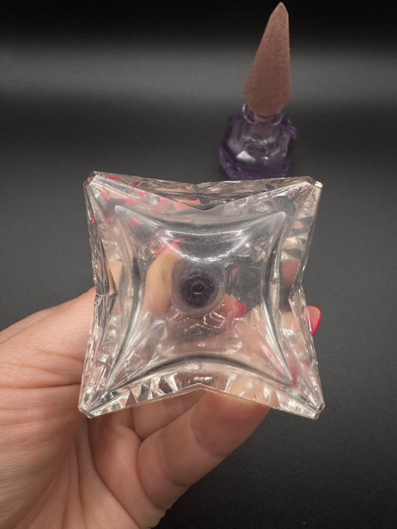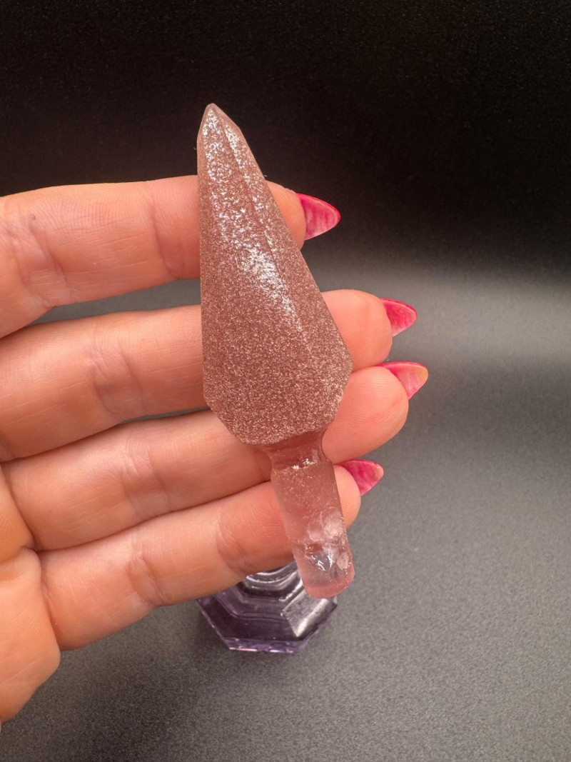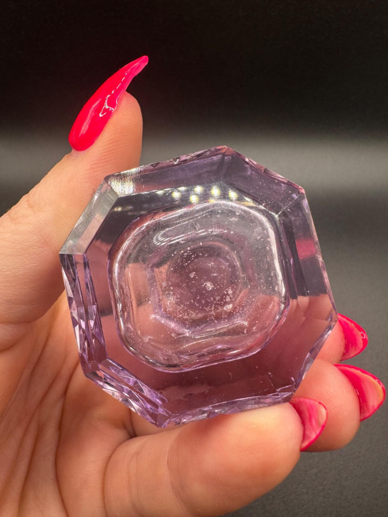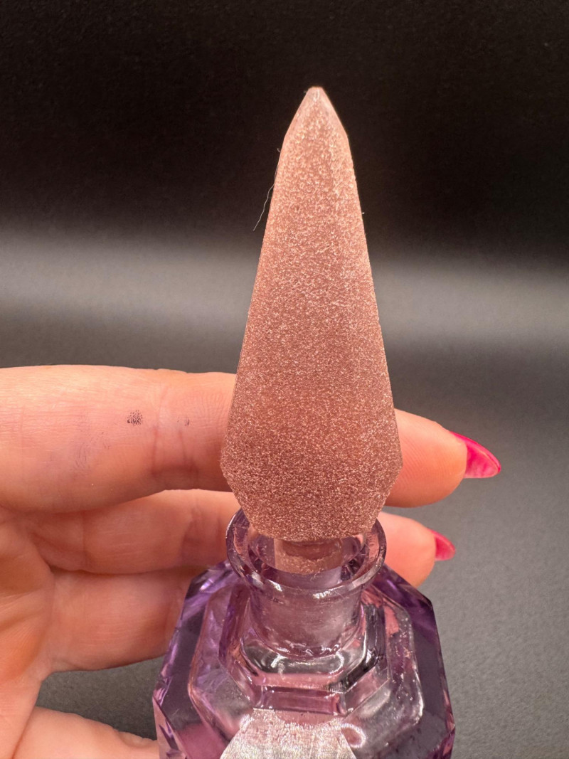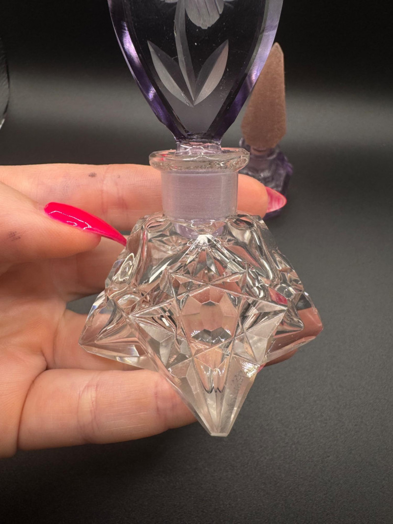 Czech Crystal Perfume Bottles – Frosted Pink & Etched Purple Stoppers.