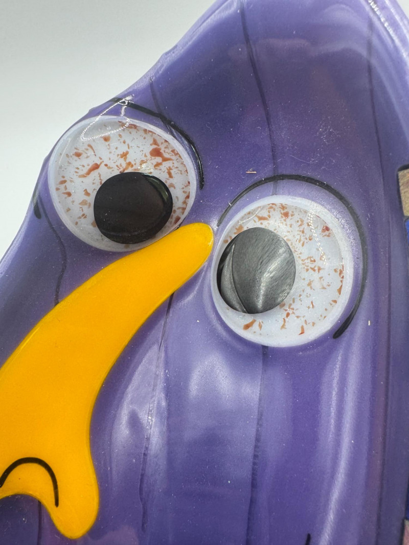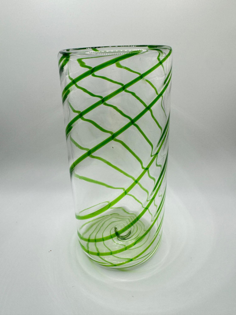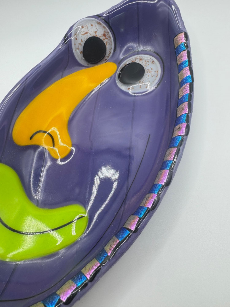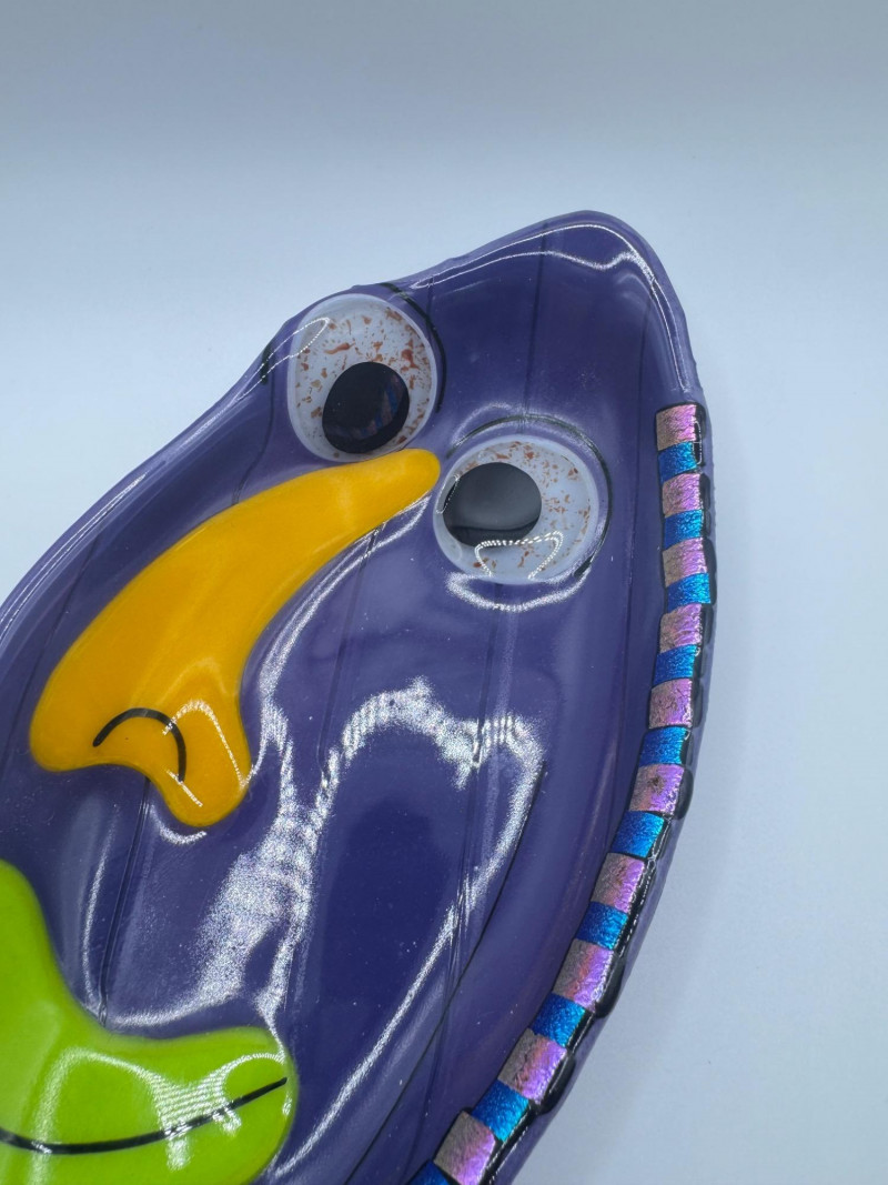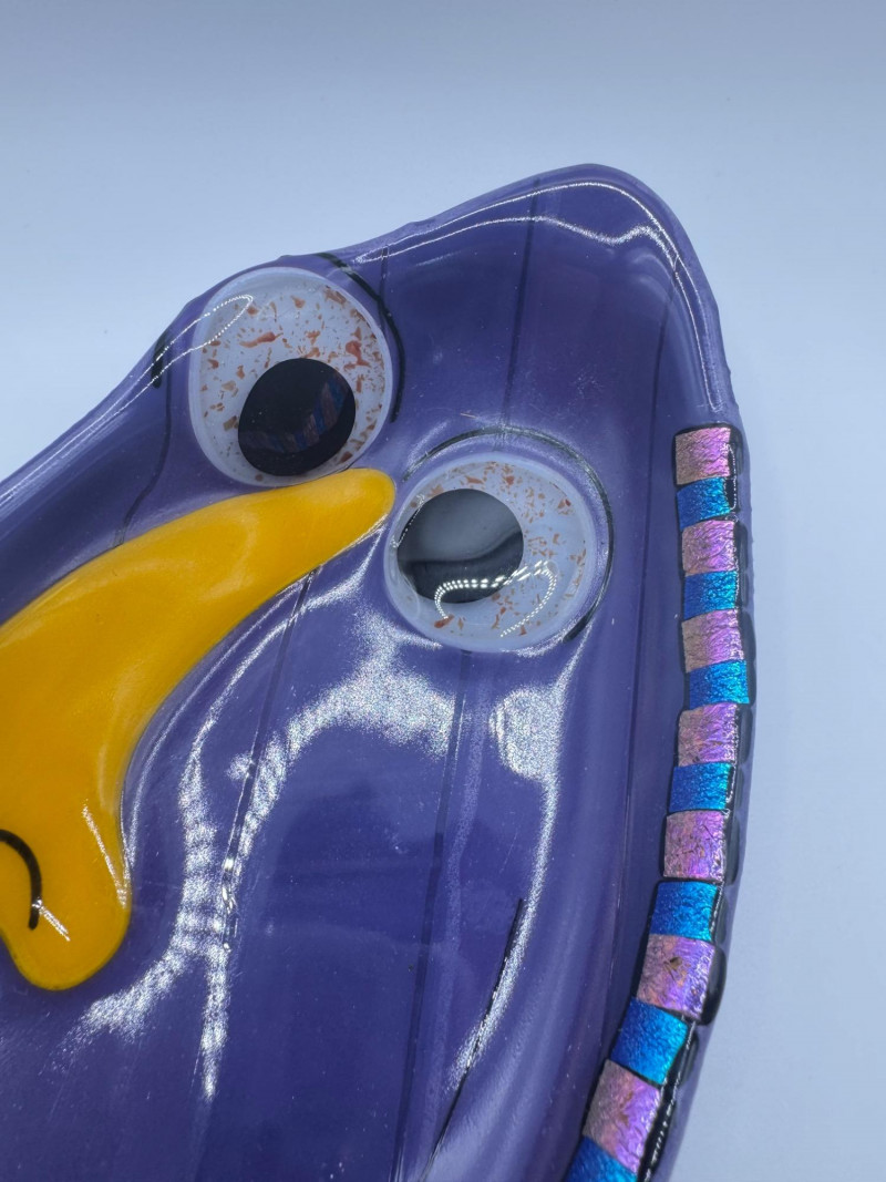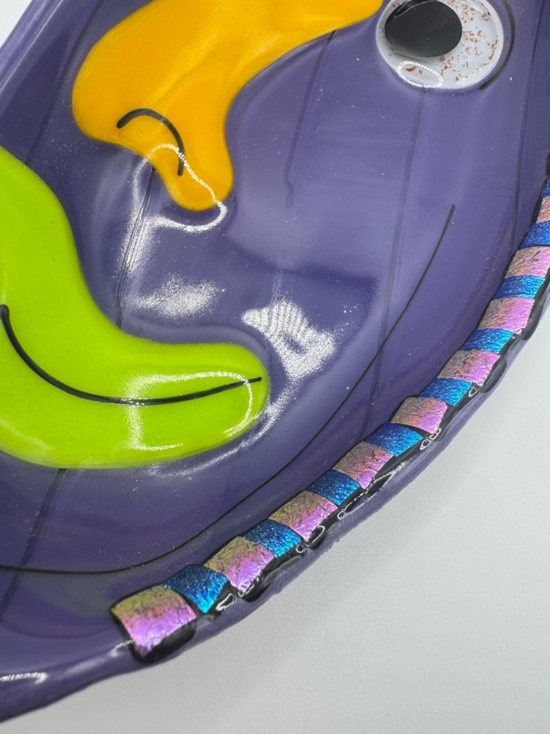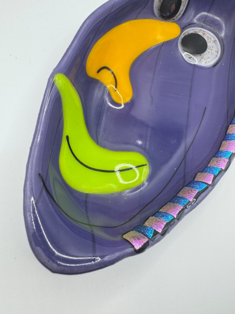 Curtiss Olson Fused Glass Face Dish '03 + Green Swirl Blown Glass Vase.