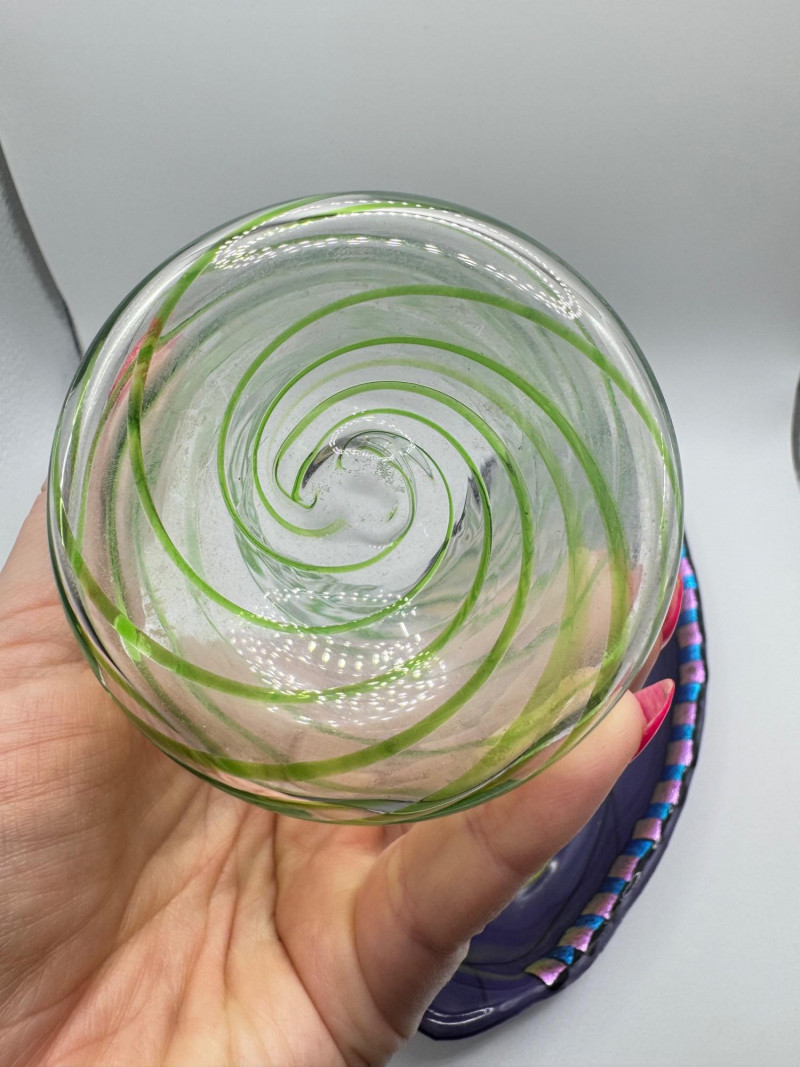 Lot # 123 - Curtiss Olson Fused Glass Face Dish '03 + Green Swirl Blown Glass Vase