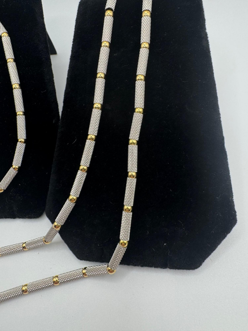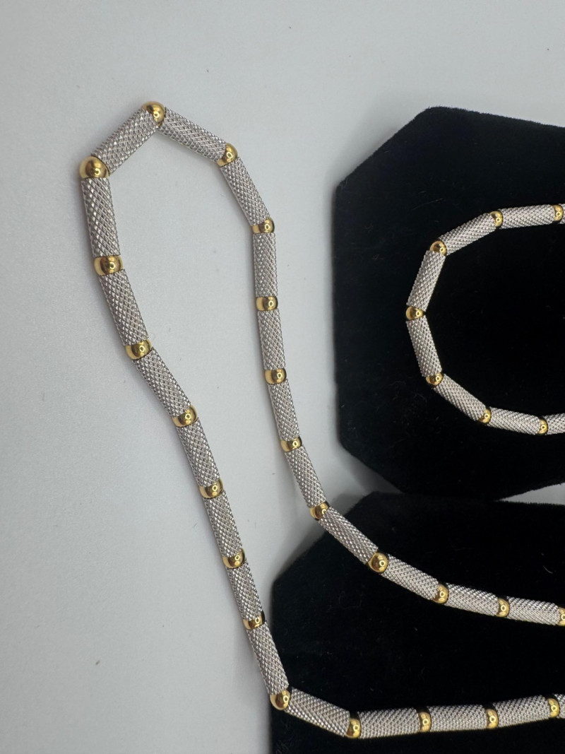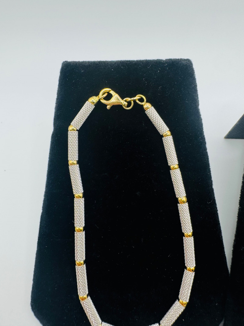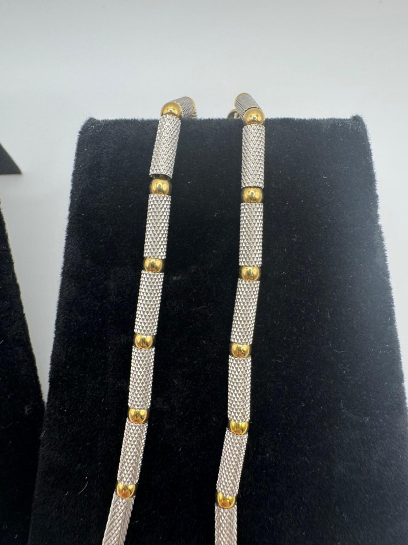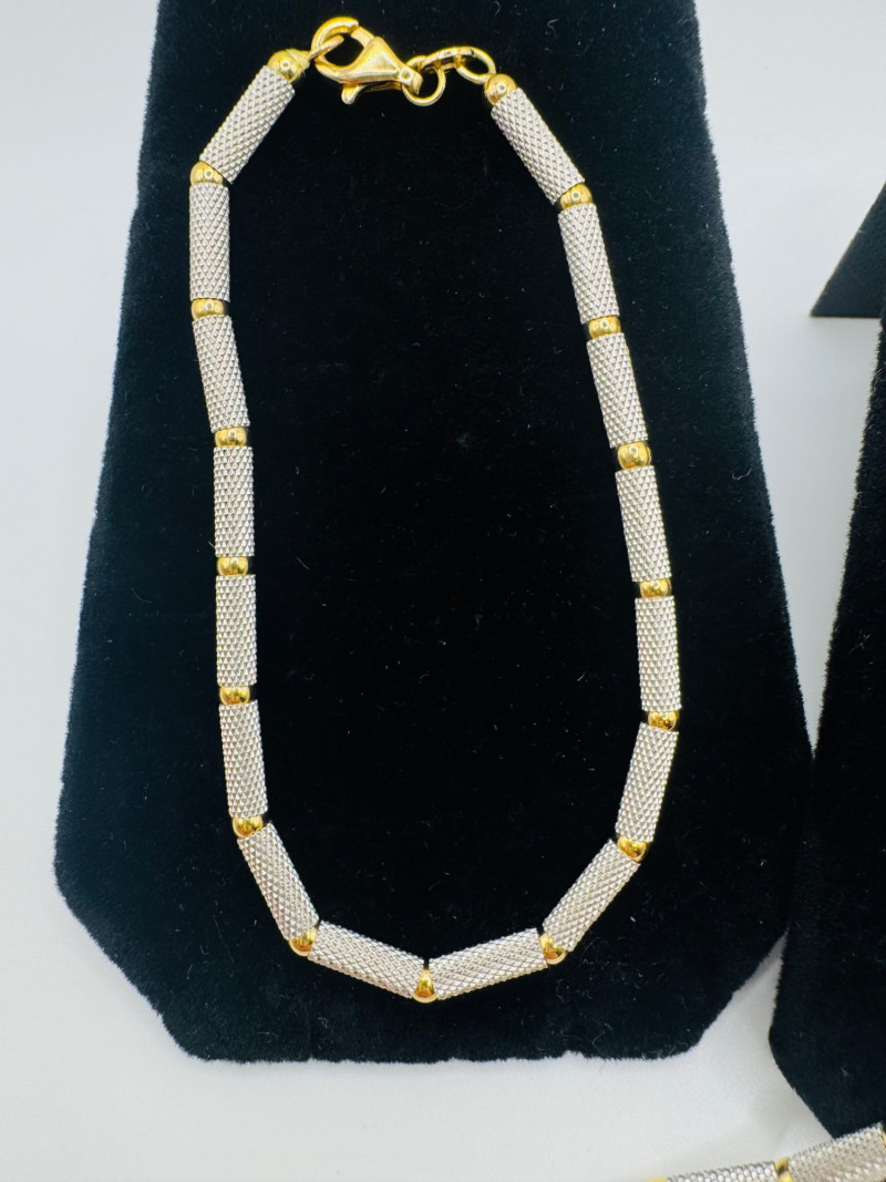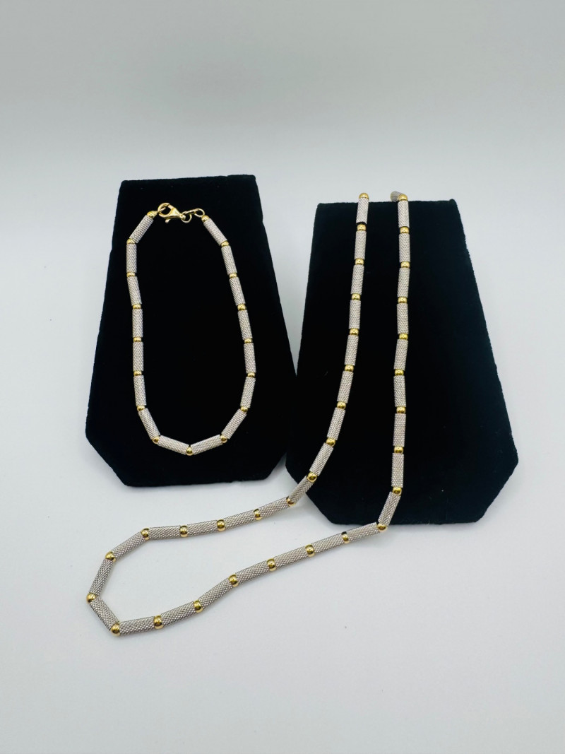 18K Gold Bar Link Necklace & Bracelet Set – 14.59g . This piece was acid tested, both silver and gold tone parts tested positive for 18k gold.