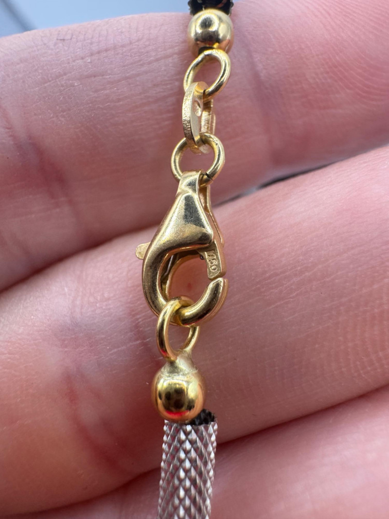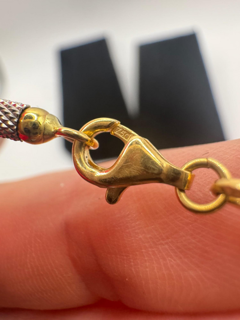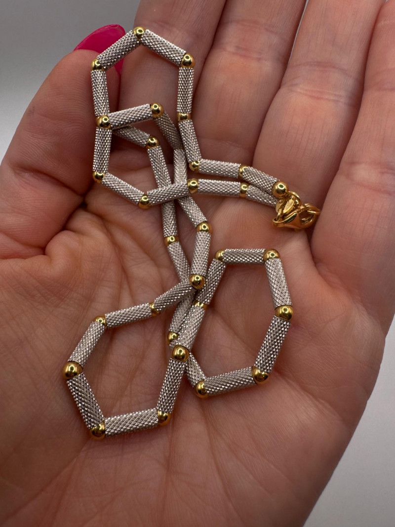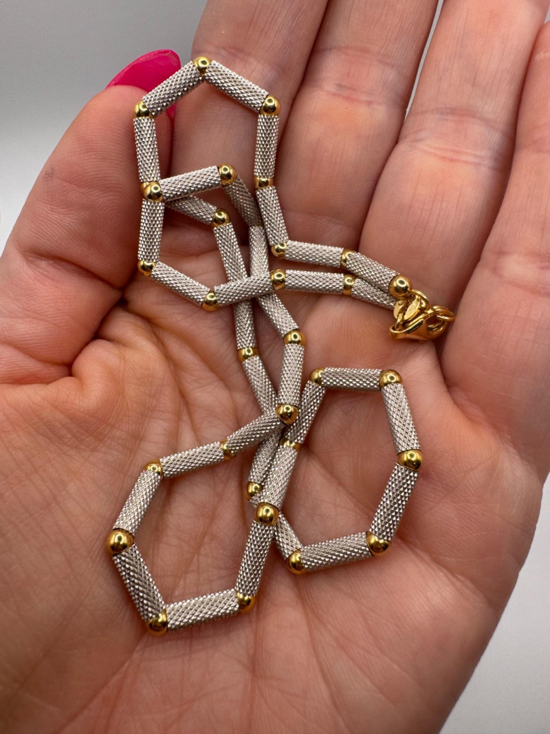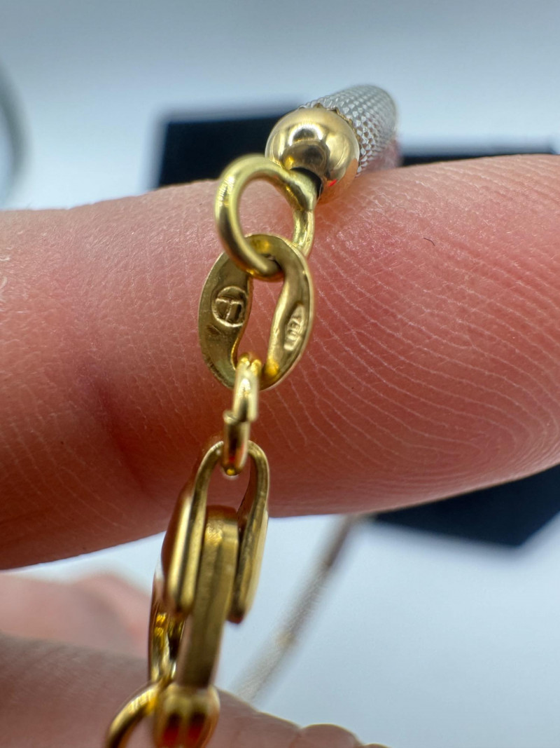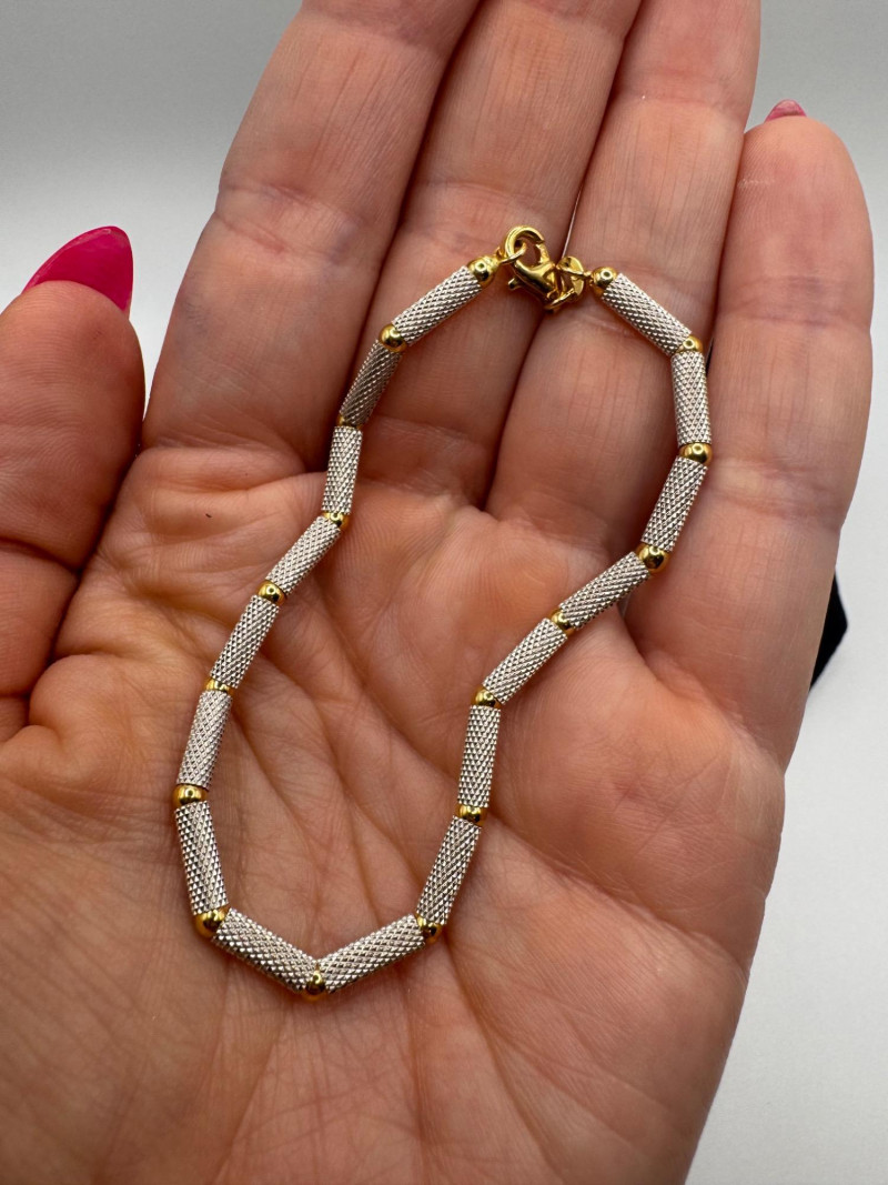 18K Gold Bar Link Necklace & Bracelet Set – 14.59g . This piece was acid tested, both silver and gold tone parts tested positive for 18k gold.