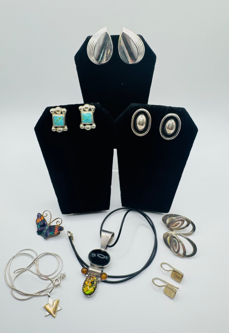 Lot # 130 - Vintage & Modern Sterling Silver Jewelry – Earrings, Necklace, Brooch