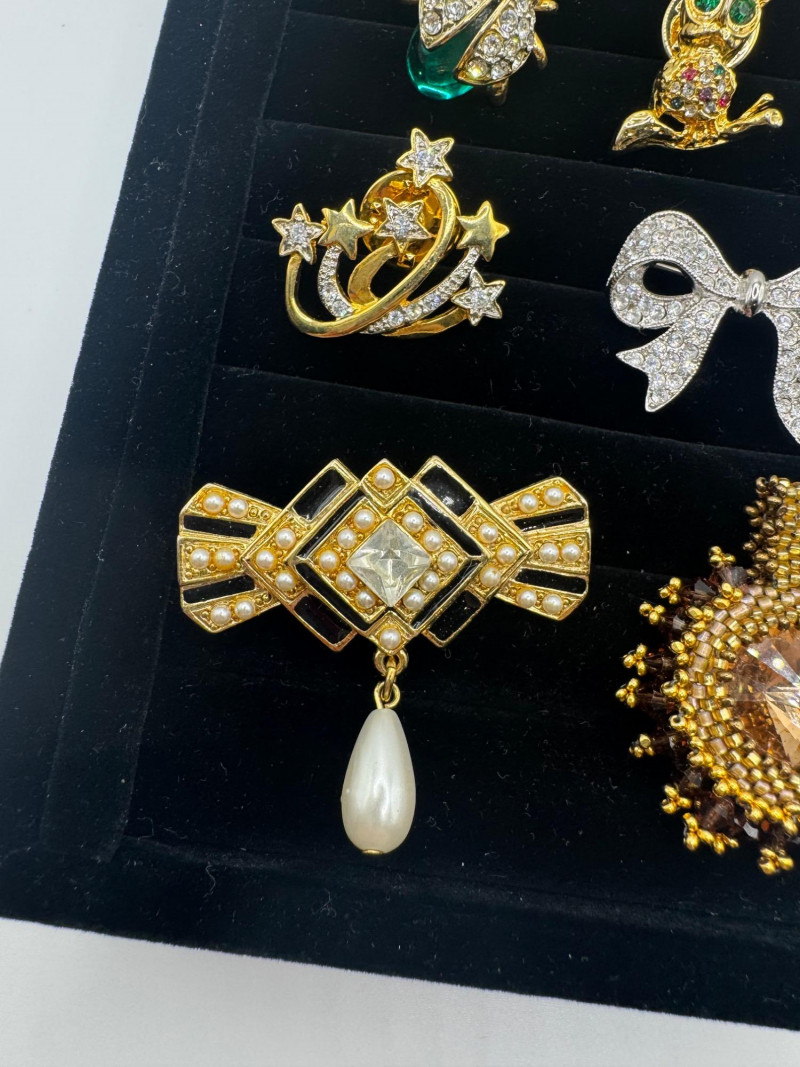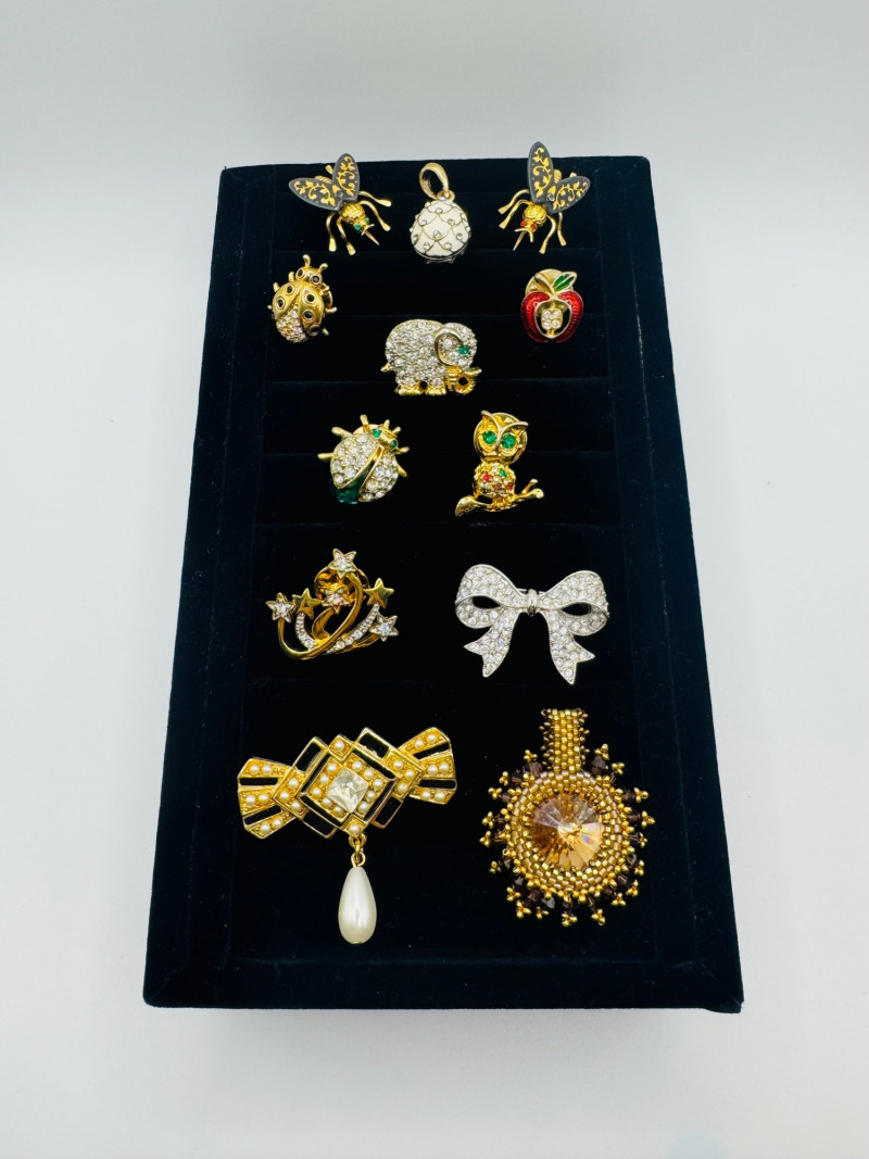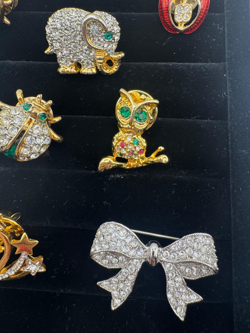12 Vintage & Modern Costume Brooches – Animals, Bow, Apple, Stars +