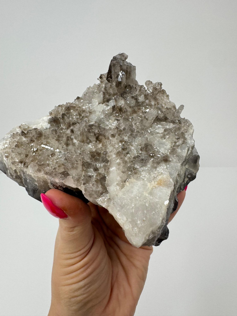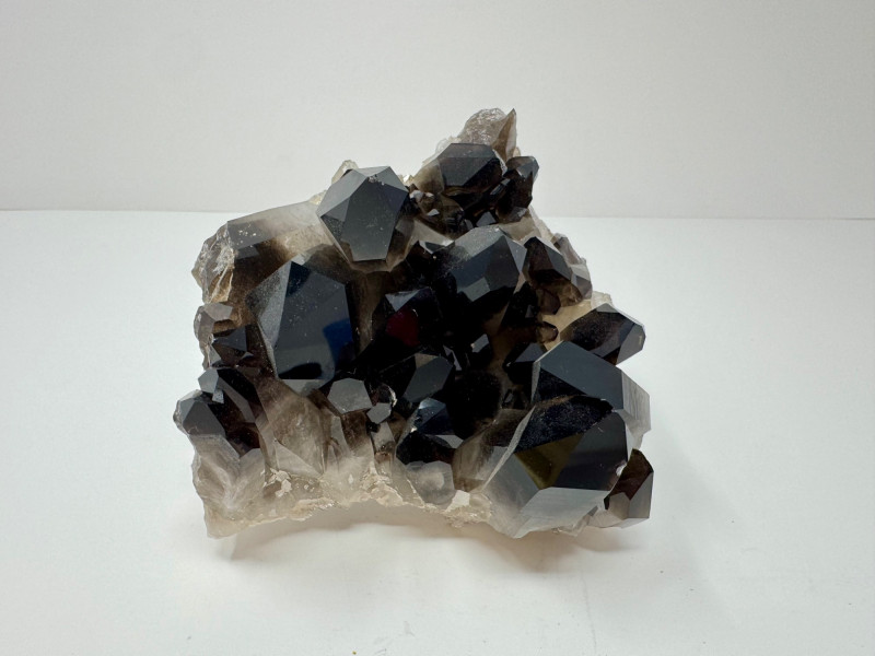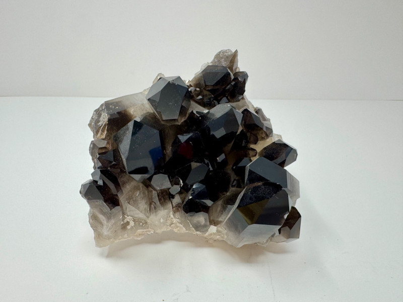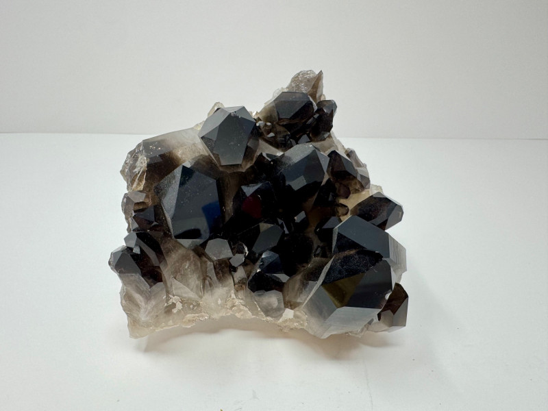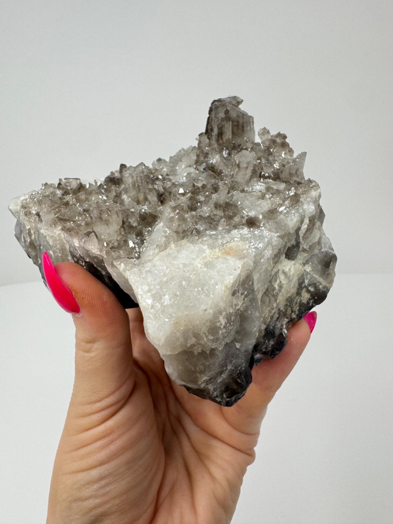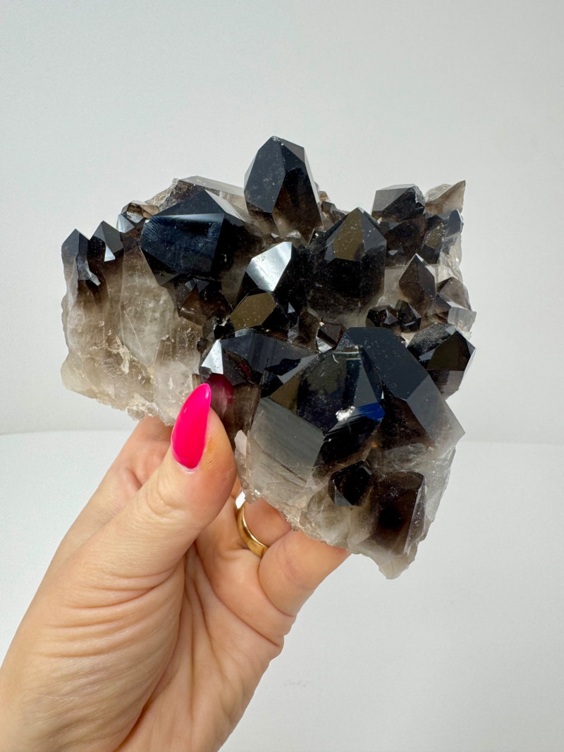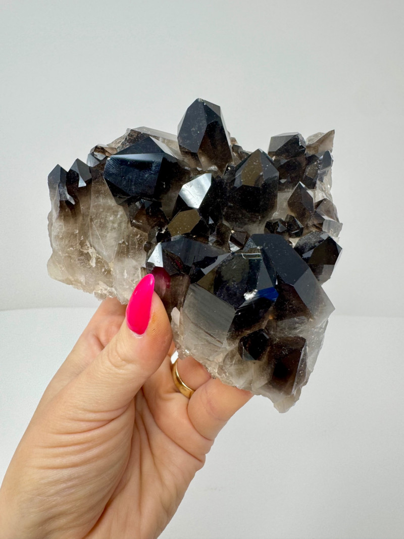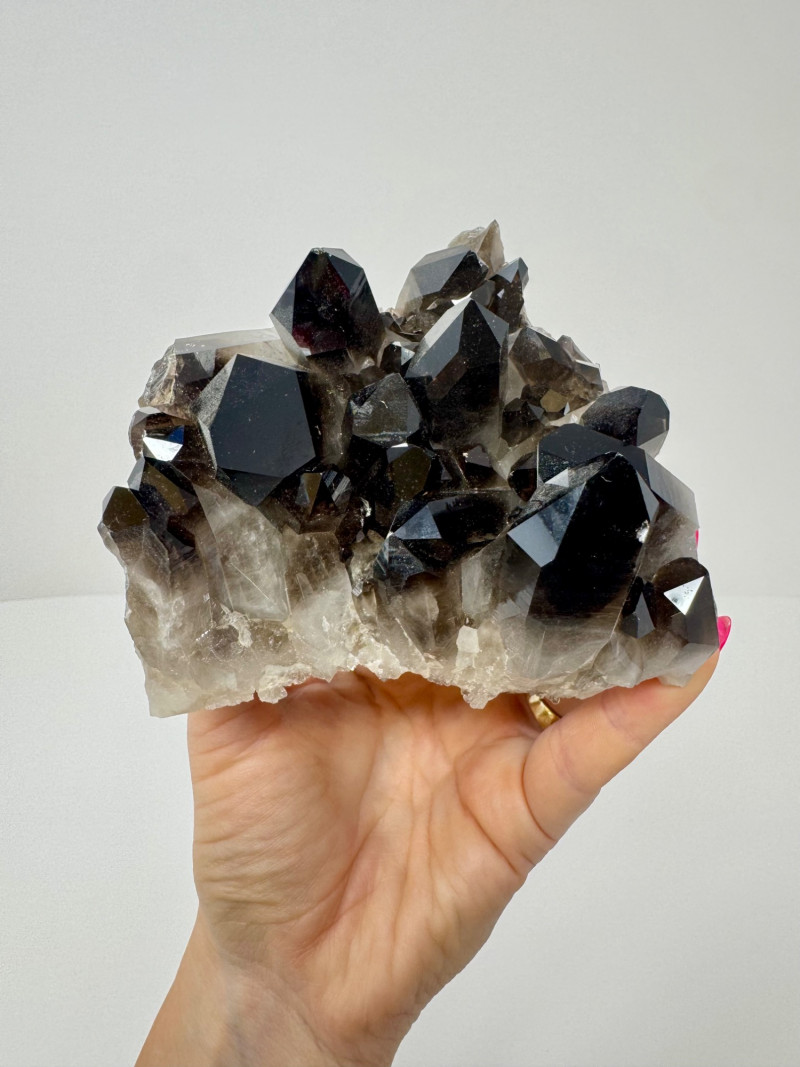 Smoky Quartz Crystal Cluster – 4” Dark Point Mineral Specimen. Natural smoky quartz cluster with deep dark crystal points. Measures approx. 4” tall x 4” wide. Please note: These mineral specimens have not been professionally tested or identified. They are offered "as-is" based on visual assessment. Bid accordingly.