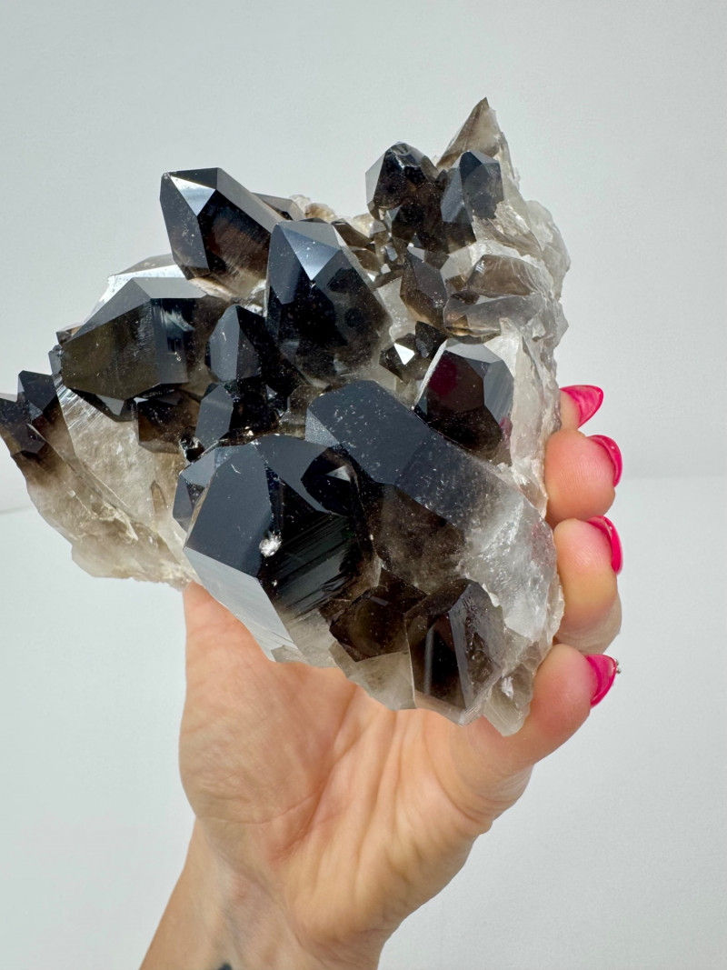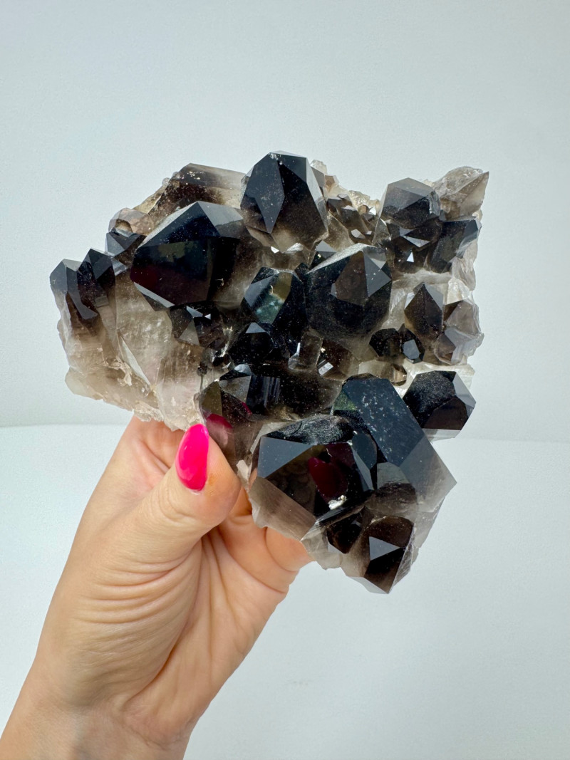 Lot # 1 - Smoky Quartz Crystal Cluster – 4” Dark Point Mineral Specimen