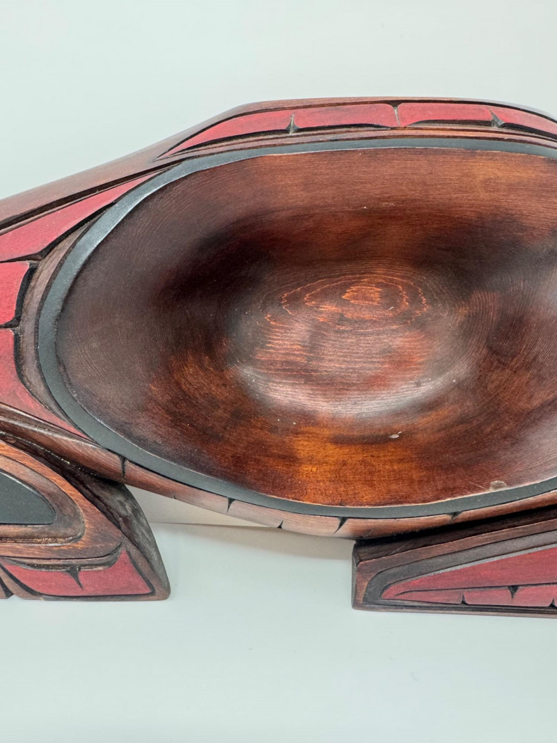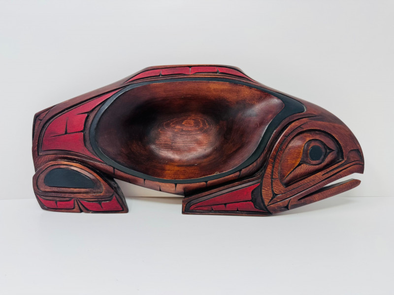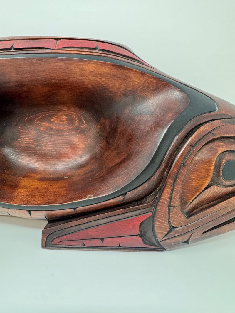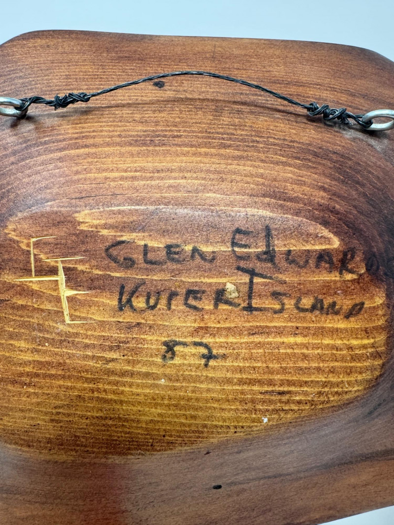 Glen Edward Signed Carved Wood Salmon Bowl/Wall Art – 1987.