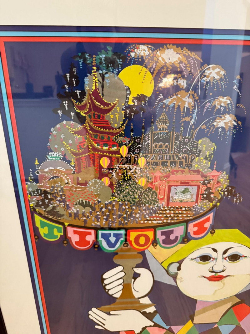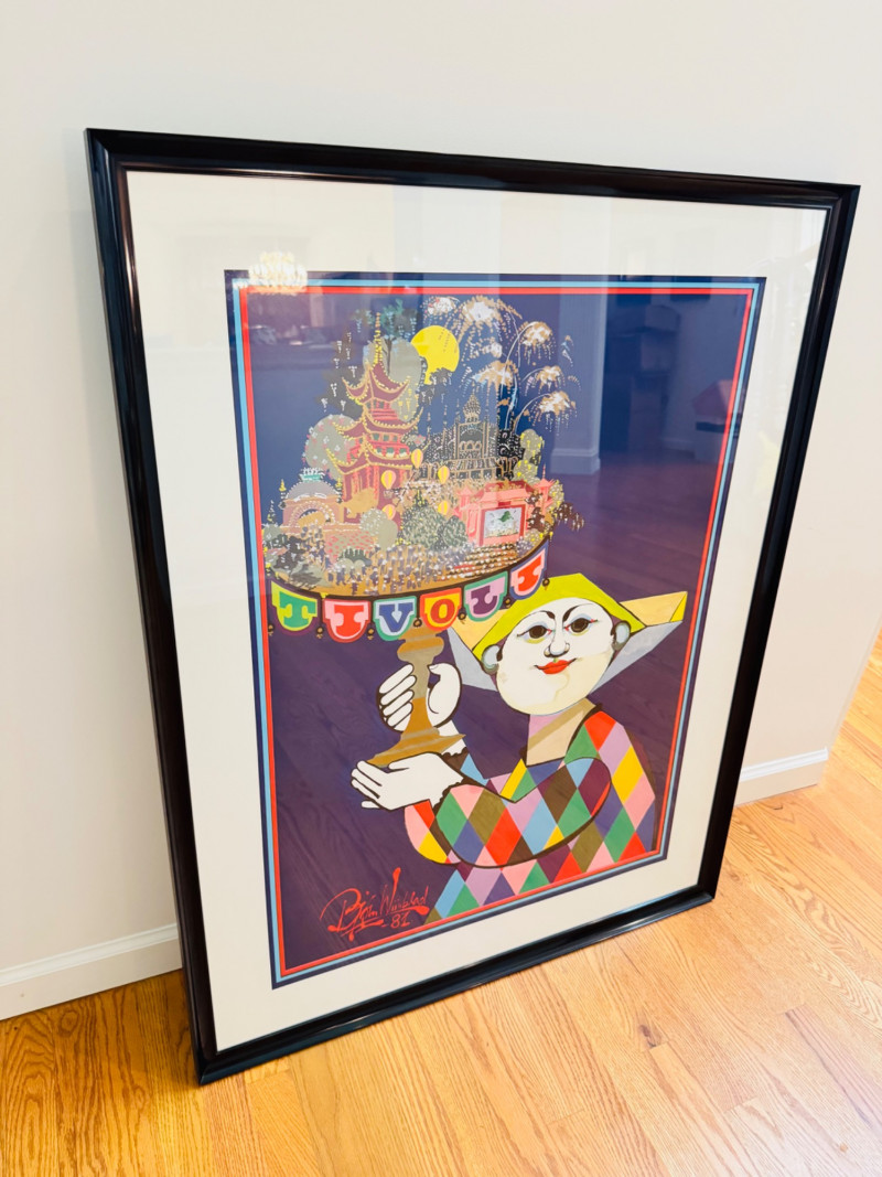 Bjørn Wiinblad Tivoli Gardens Vintage Framed Poster – Large, 1981. Dimensions: 34” W x 43” H