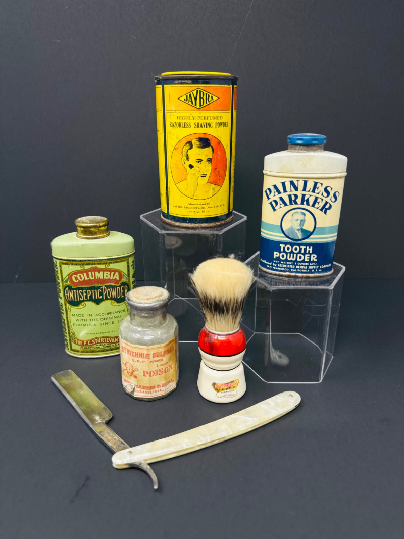 Lot # 24 - Vintage Barber & Apothecary Lot – Shave, Smile & Survive Poison!