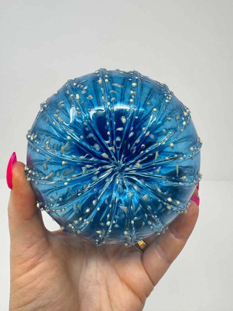 Lot # 31 - Pair Of Hand-Blown Glass Pumpkins – Red & Blue Confetti