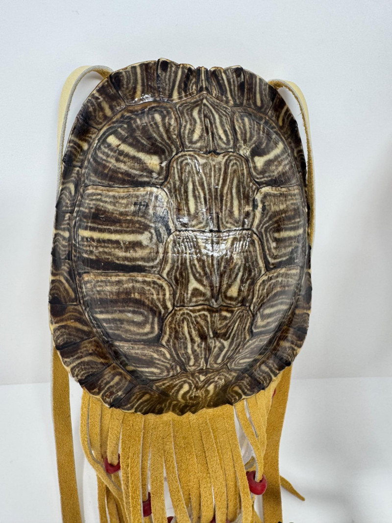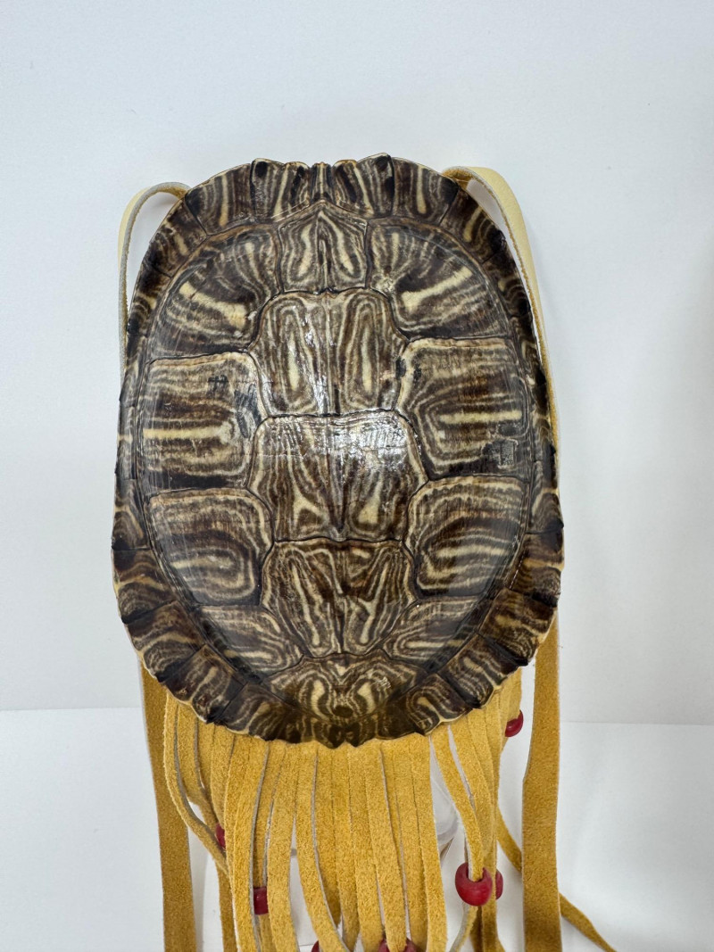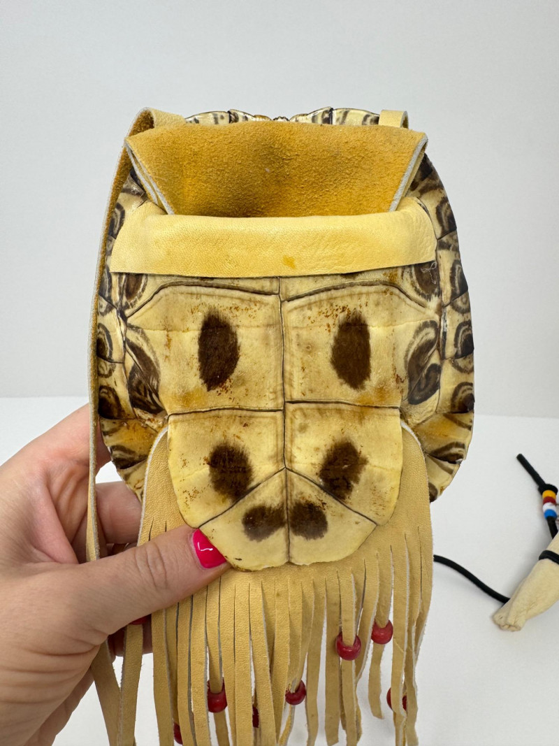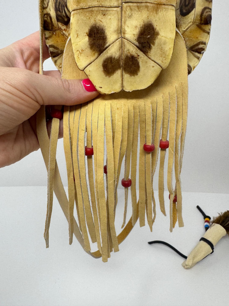 Native American Turtle Shell Purse w/ Leather Fringe + Feather Fun.