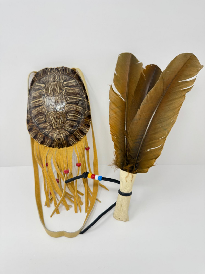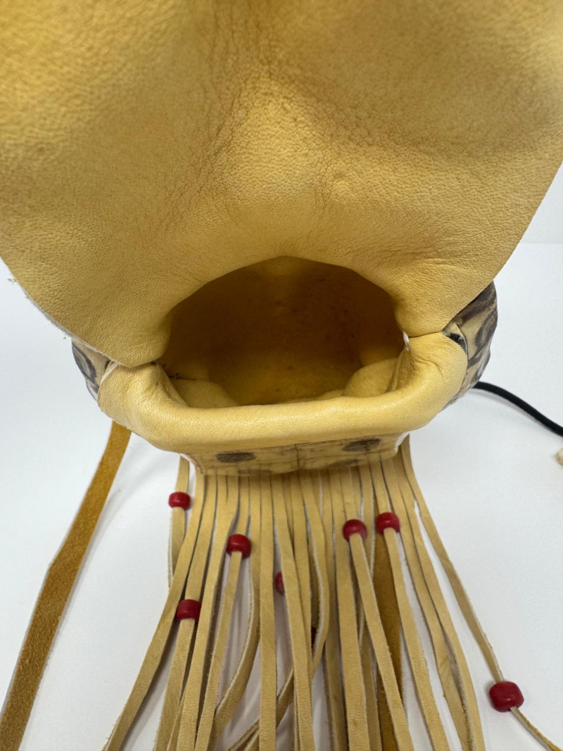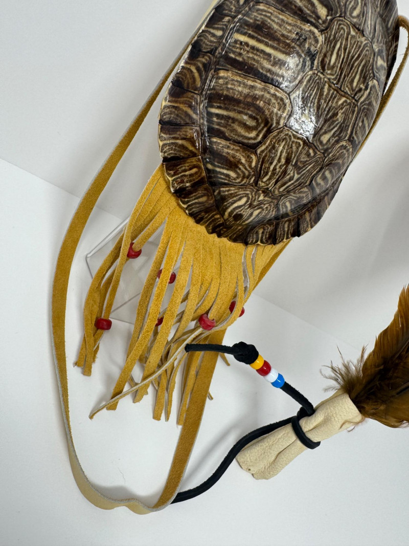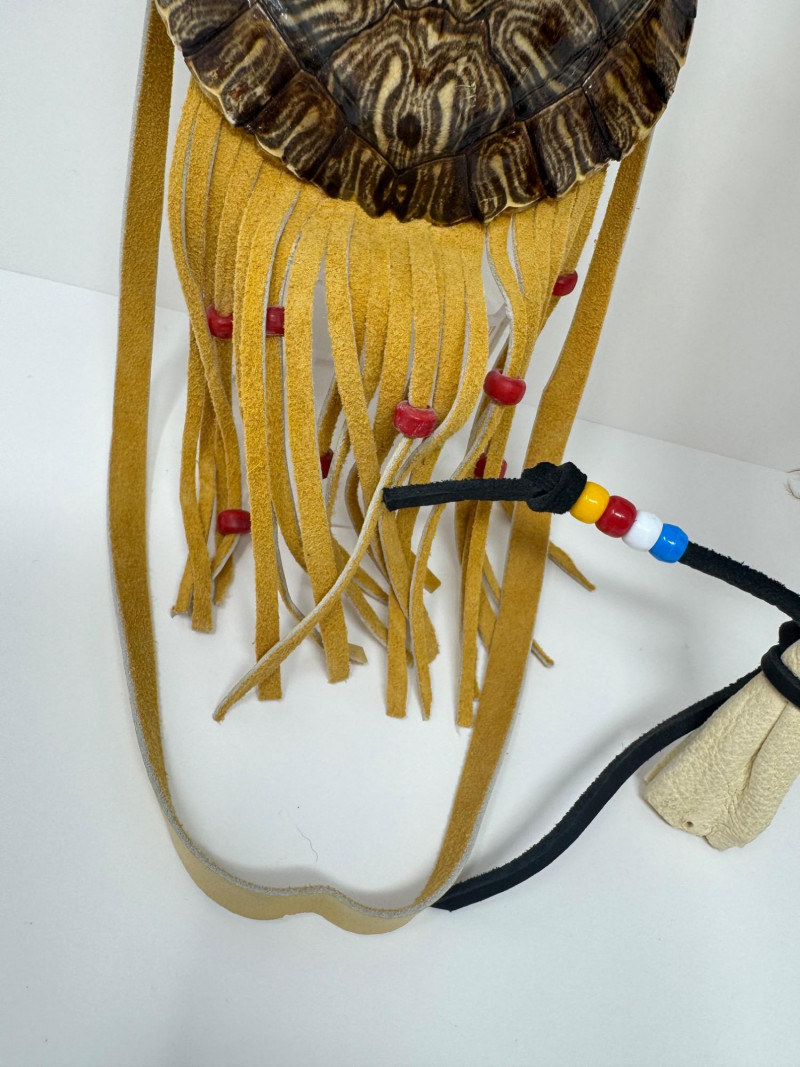 Native American Turtle Shell Purse w/ Leather Fringe + Feather Fun.