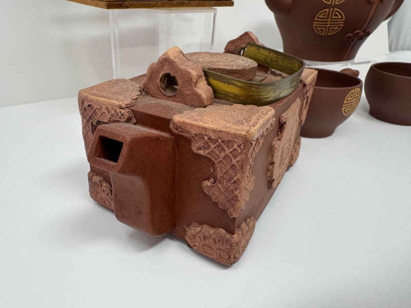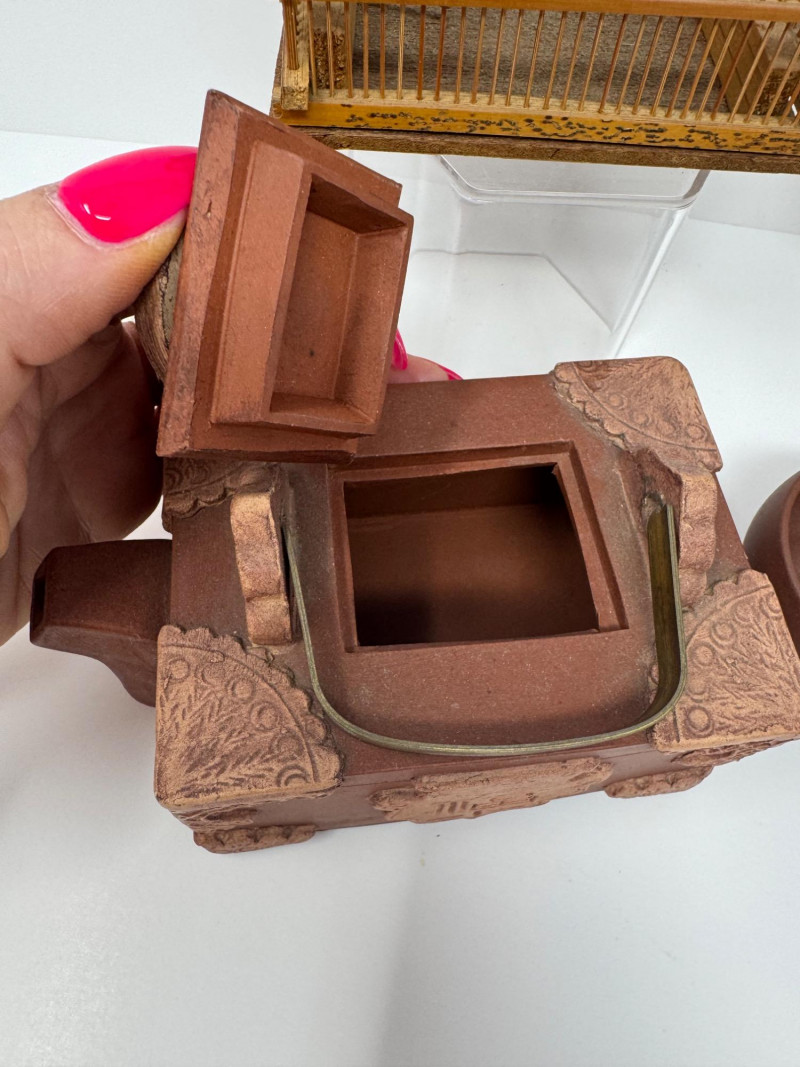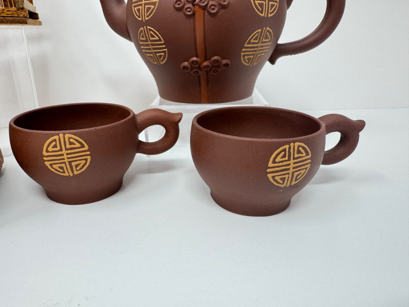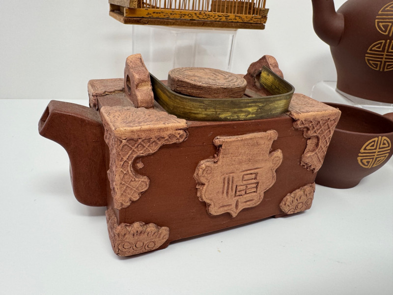 Lot # 38 - Chinese Yixing Teapots, Cups & Decorative Birdcage
