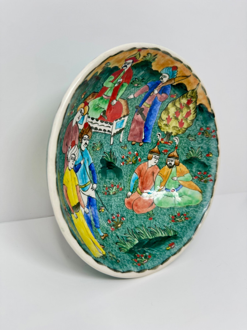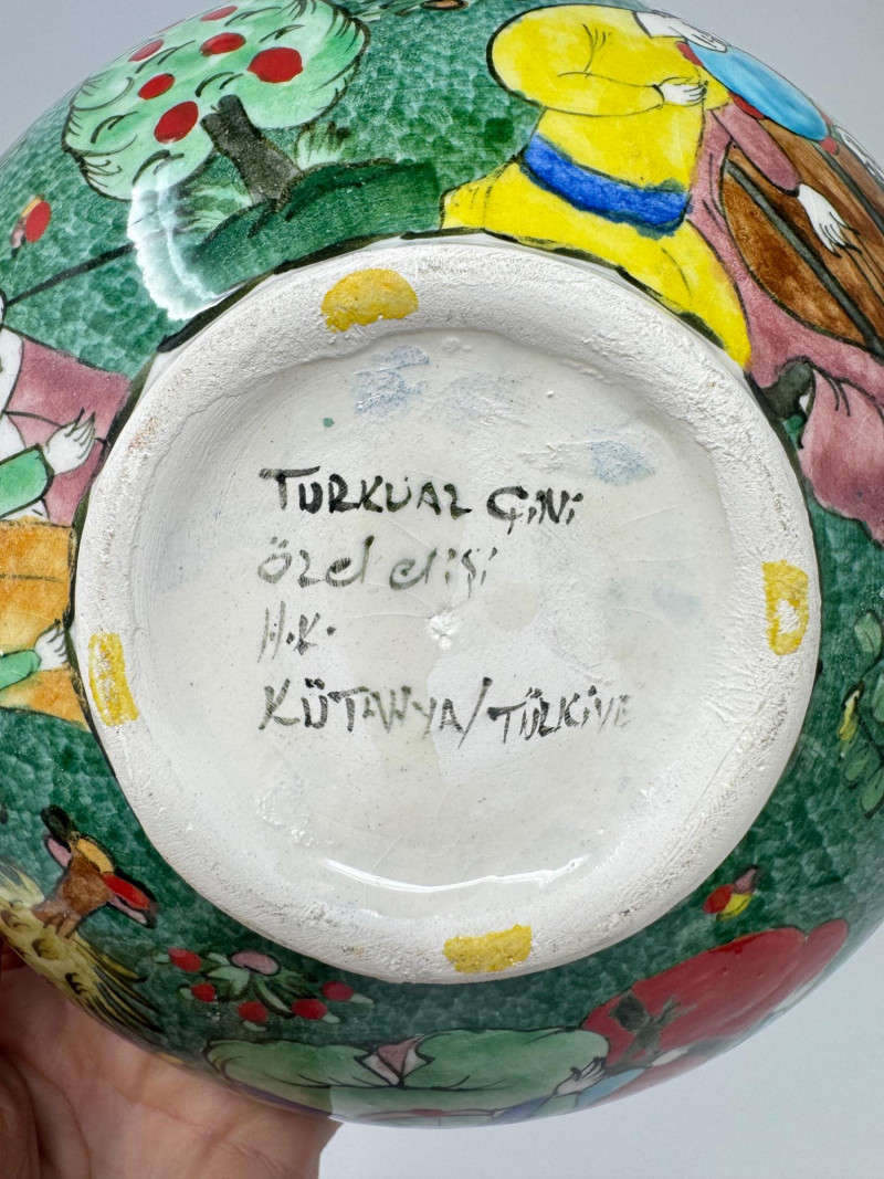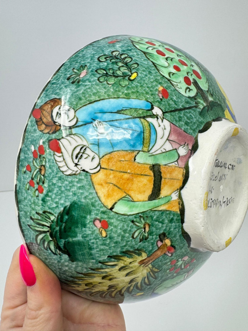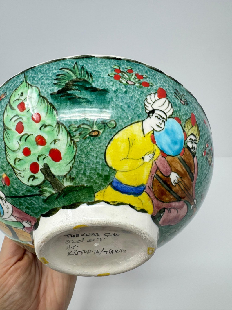 Hand Painted Turkish Kutahya Bowl – Ottoman Scene. Dimensions: 8" diameter x 3" tall
