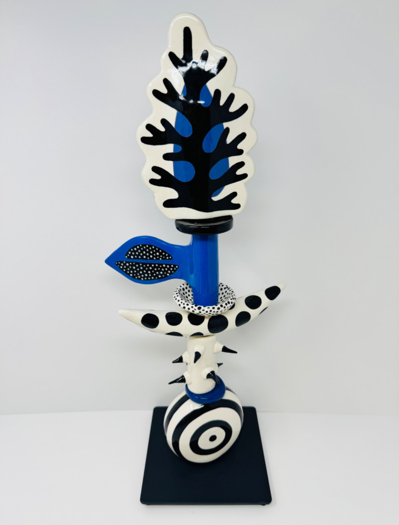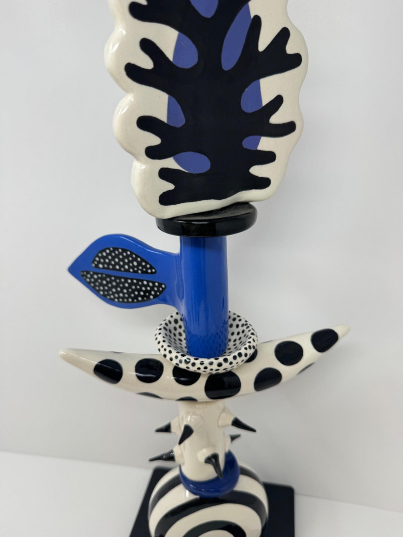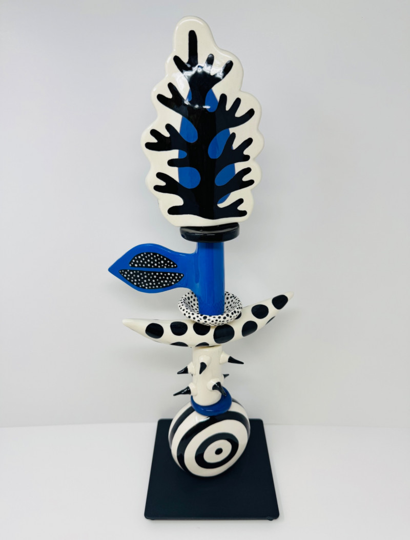 Lot # 49 - Leslie Codina Hand-Painted Ceramic Sculpture – Whimsical Totem Style
