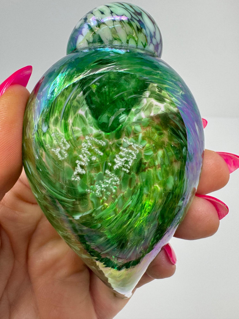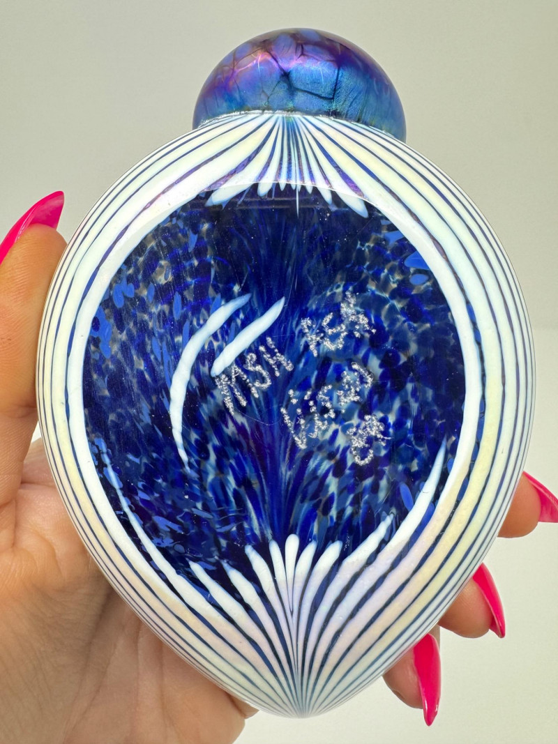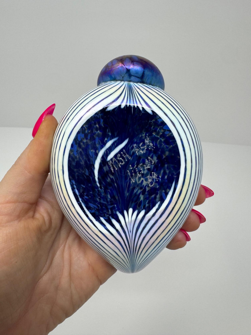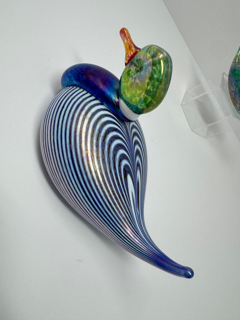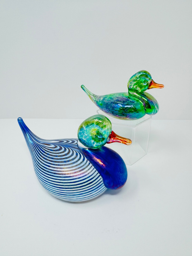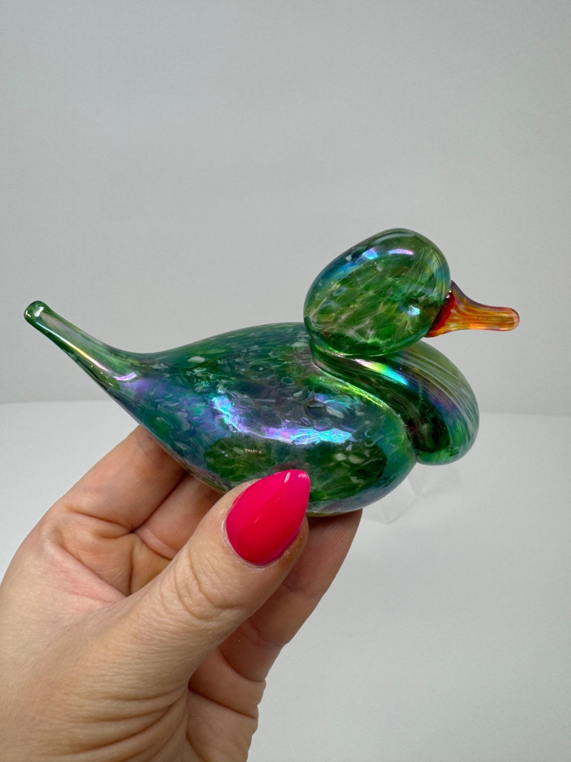 Signed Ash Glass Ducks – Iridescent Blue & Green Figurines. 4-6”