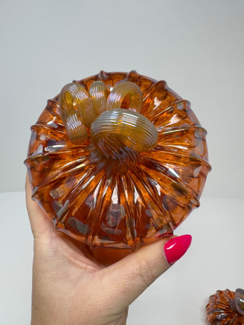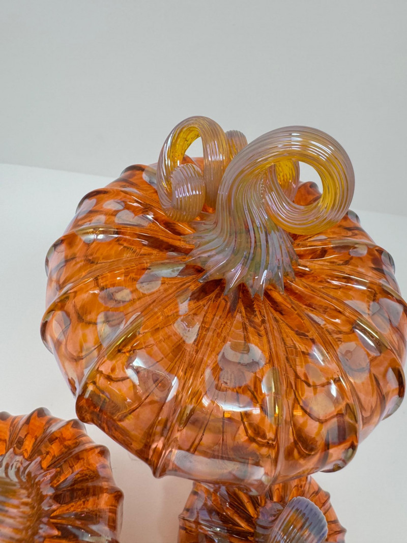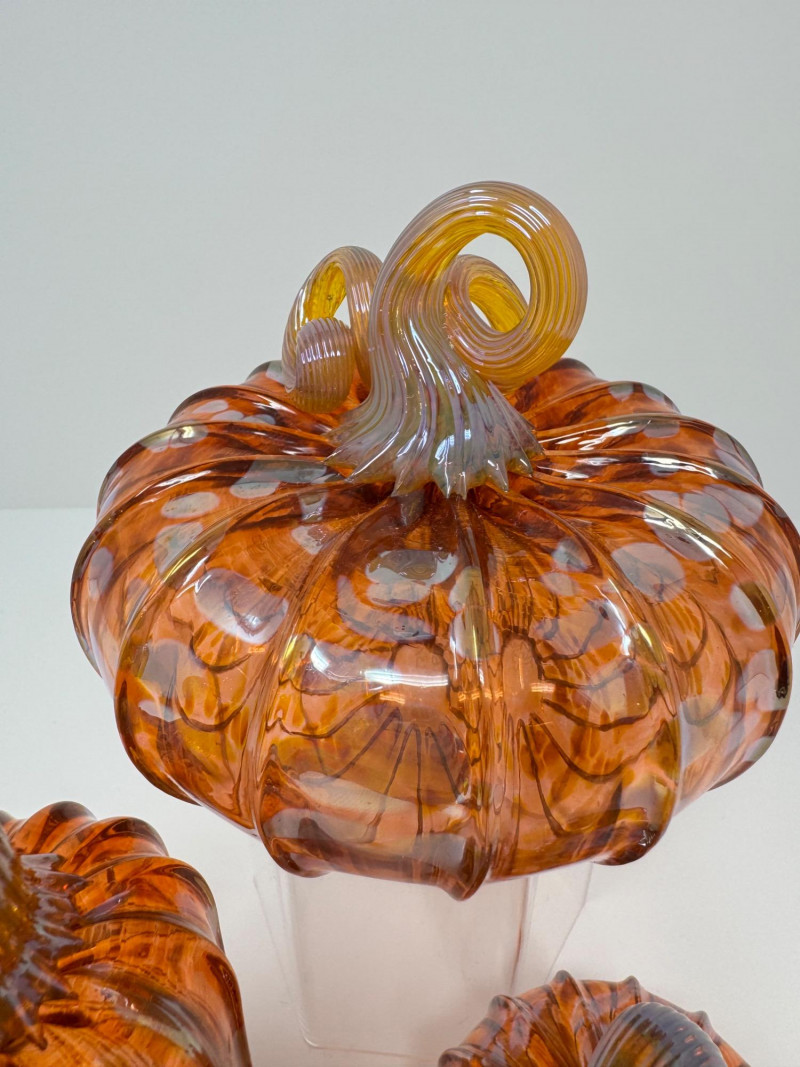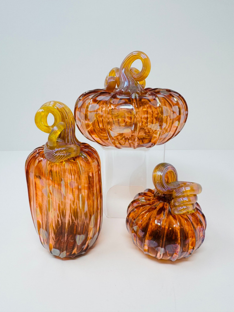 Lot # 53 - 3 Blown Northwest Glass Pumpkins – Amber Swirl Design, Signed 2012
