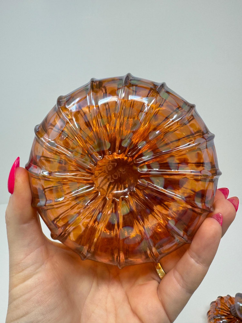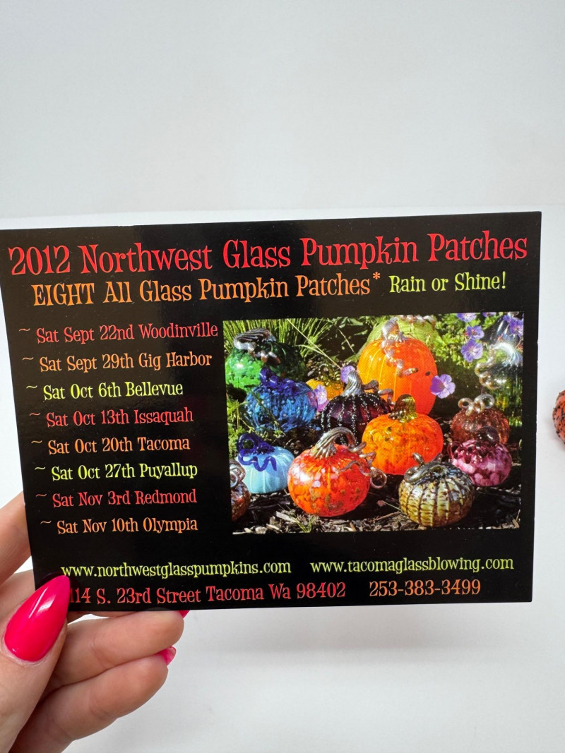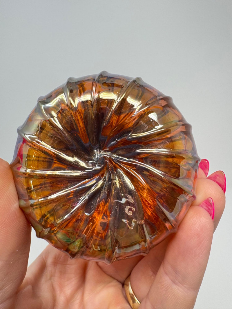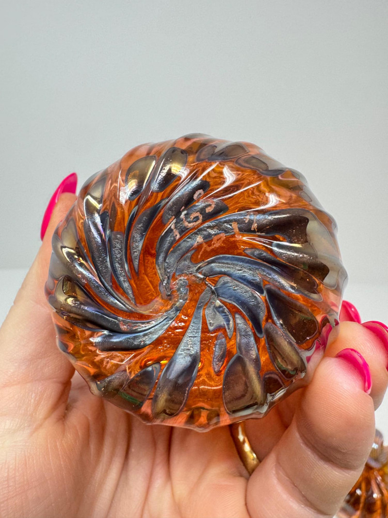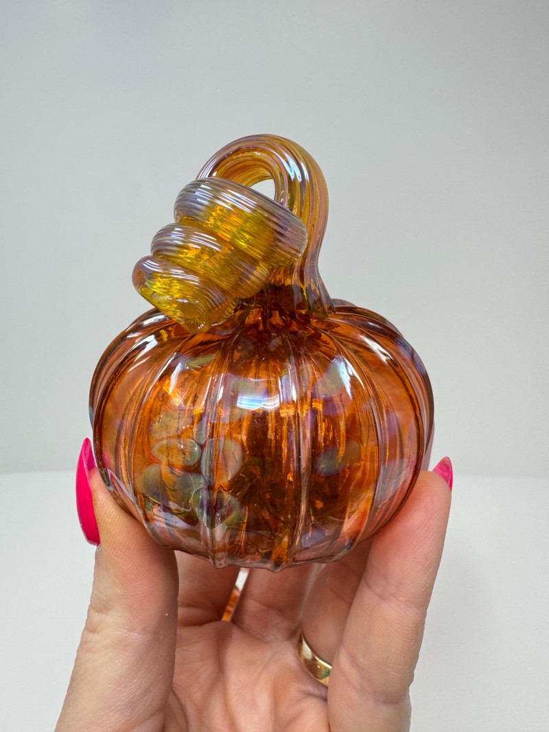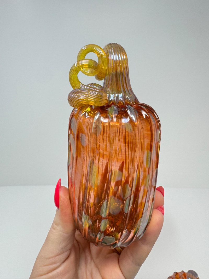 3 Blown Northwest Glass Pumpkins – Amber Swirl Design, Signed 2012. 3.5 - 5.5”