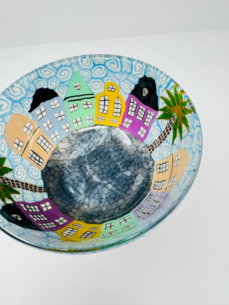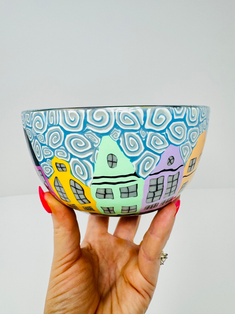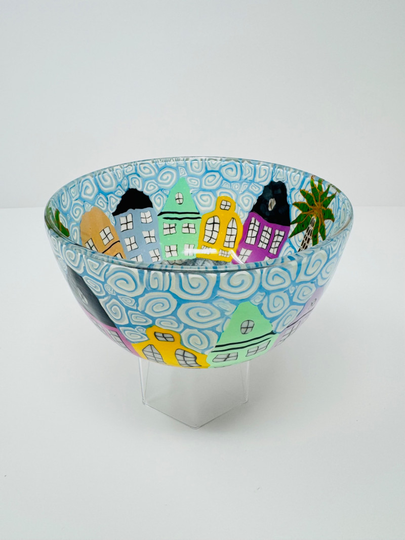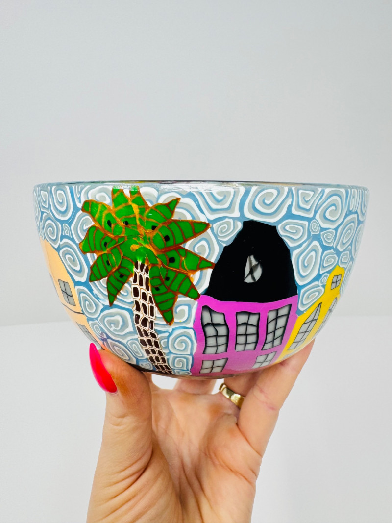 Lot # 54 - Heather Martinez Handcrafted Glass Bowl – Charleston SC Rainbow Row