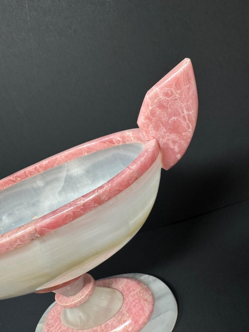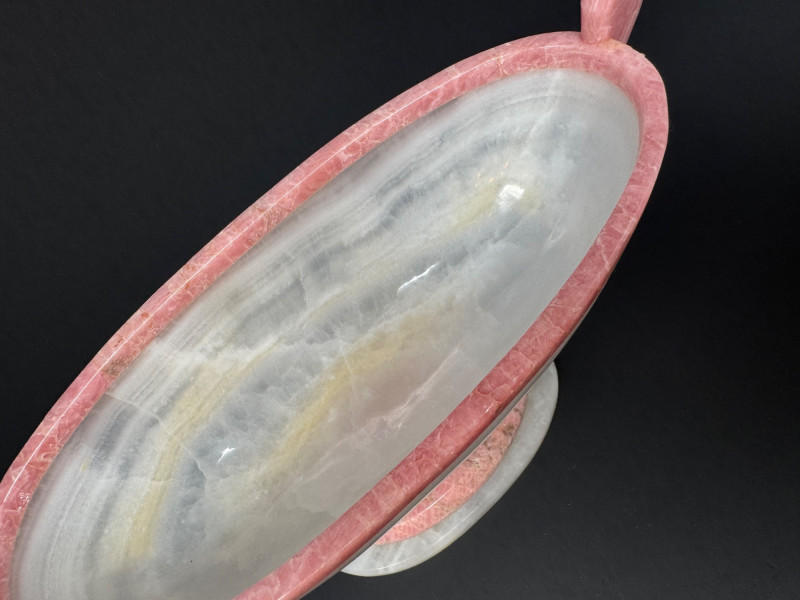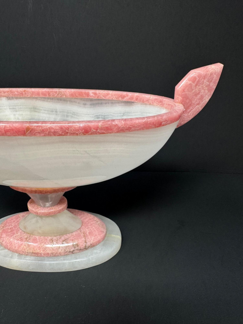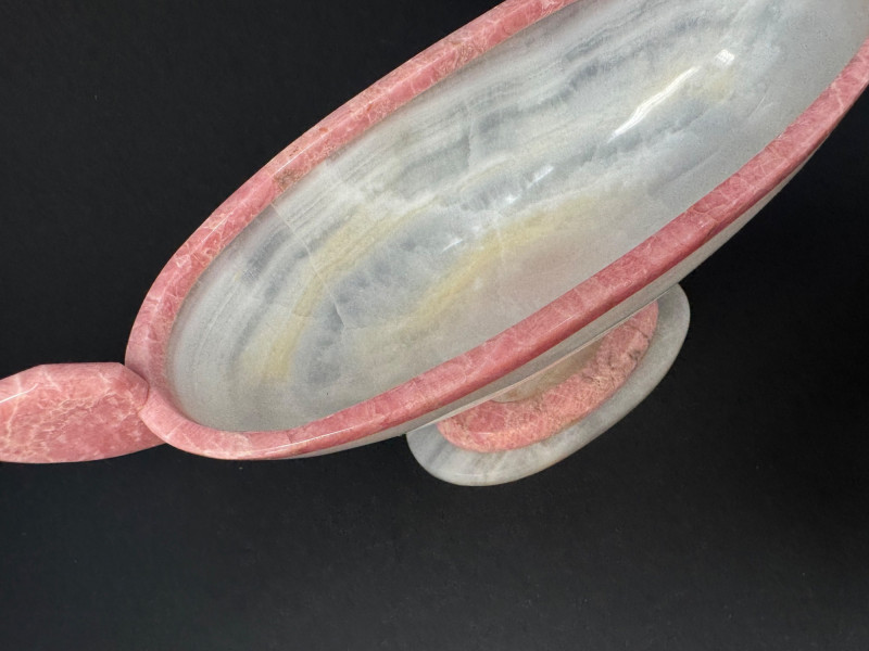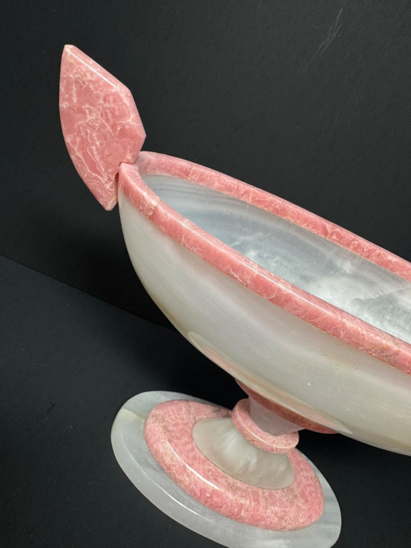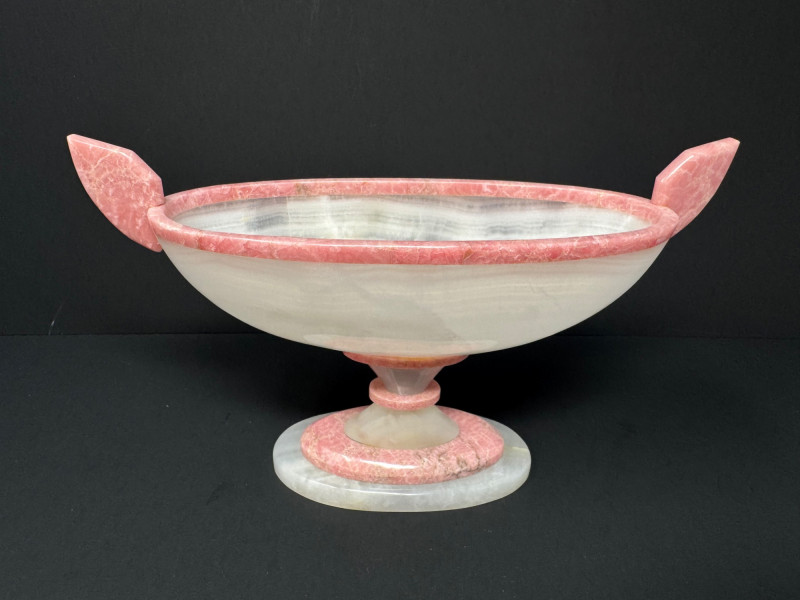 Lot # 58 - Argentinian Rhodochrosite & Calcite Stone Bowl w/ Glass Grapes, $500+