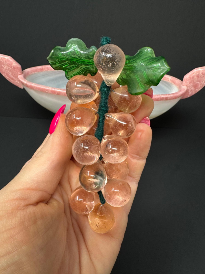 Argentinian Rhodochrosite & Calcite Stone Bowl w/ Glass Grapes, $500+