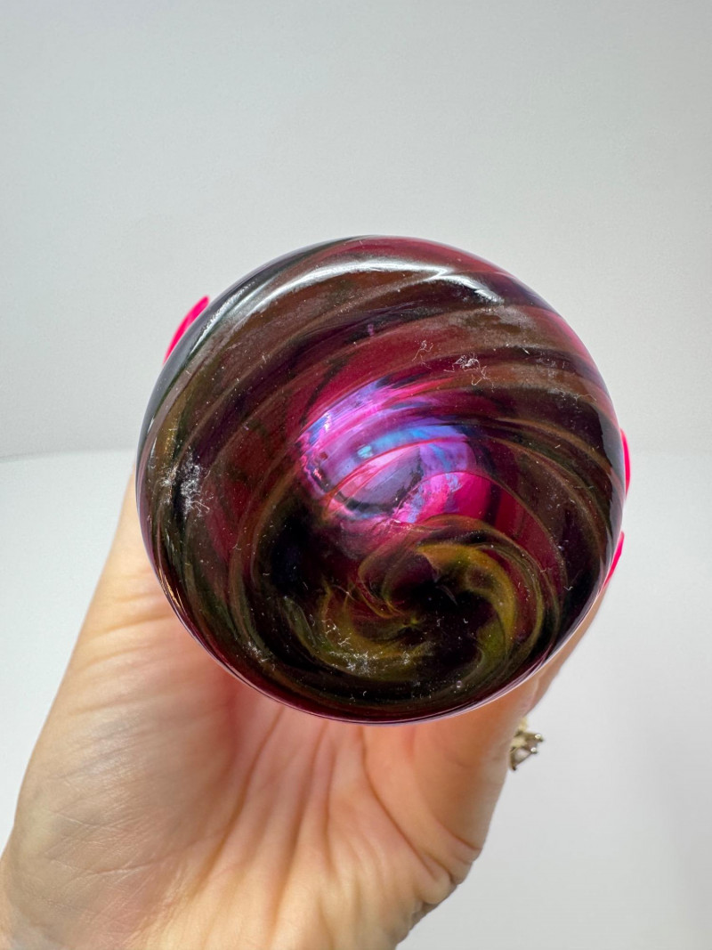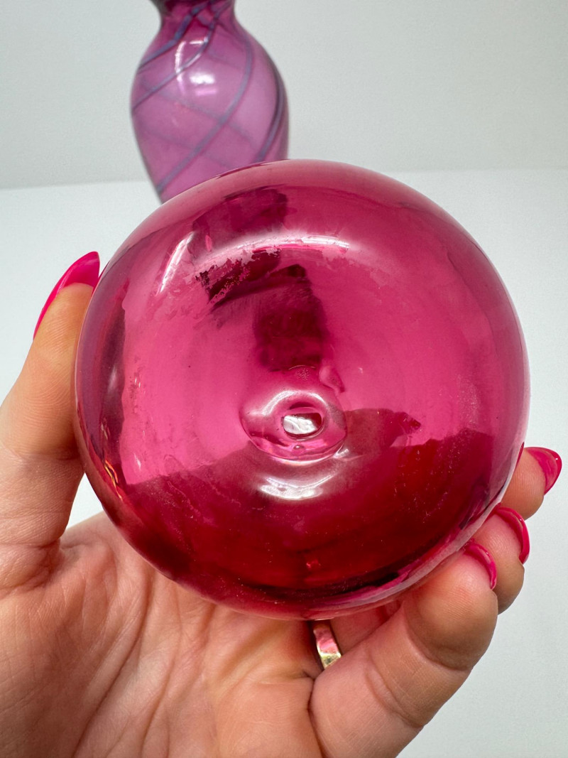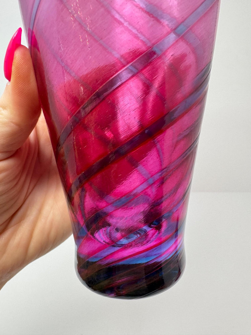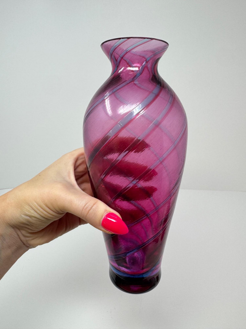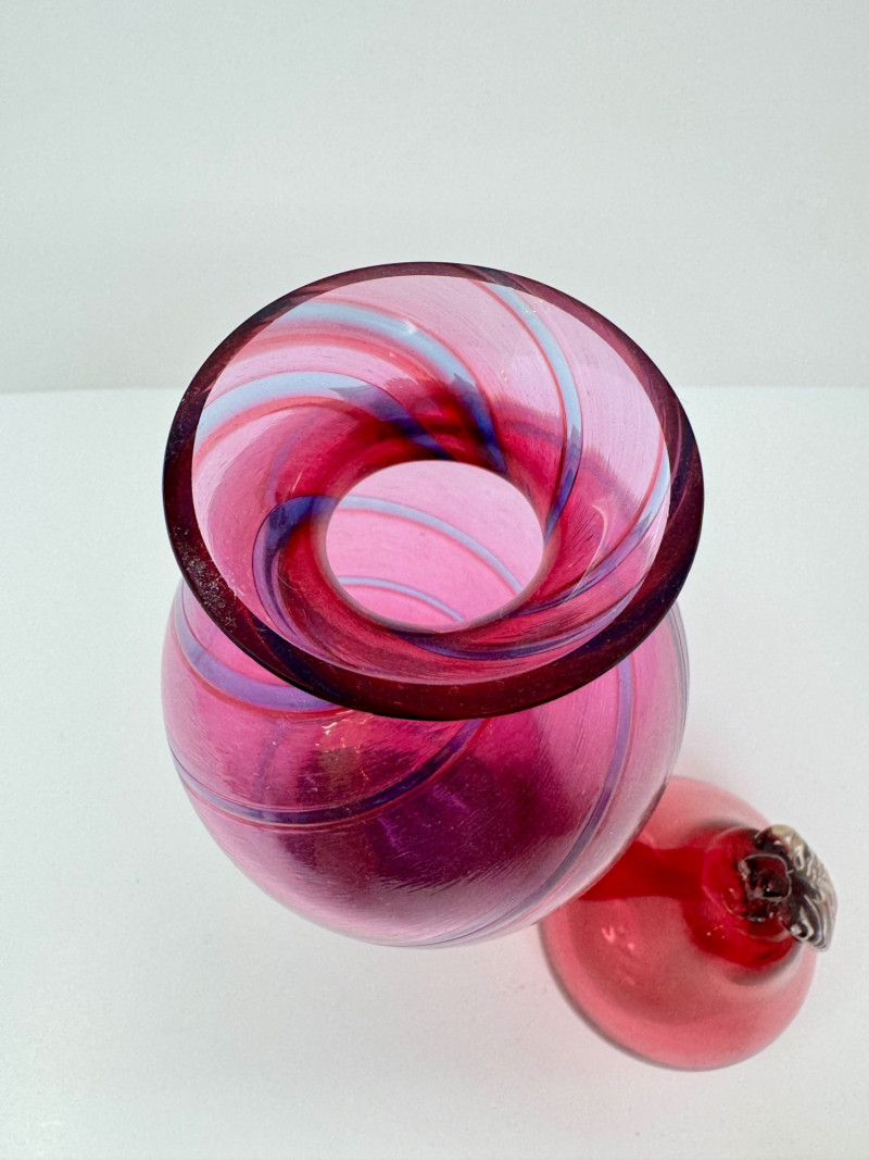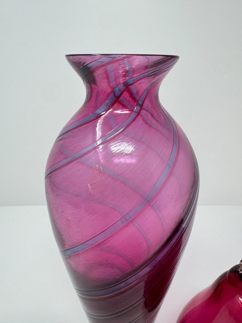 Lot # 61 - Hand-Blown Glass Vase w/ a Twisted Design & Cranberry Glass Pear