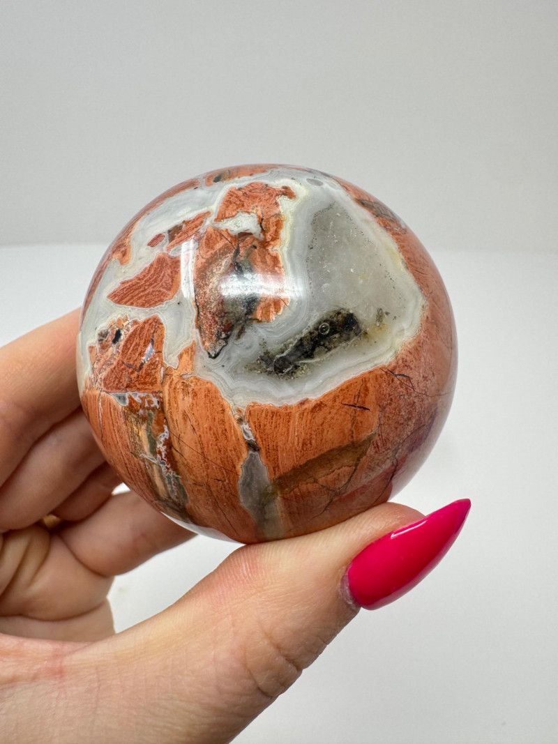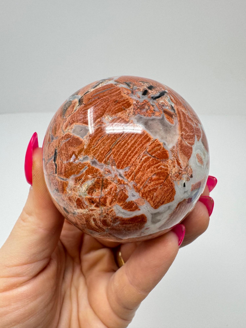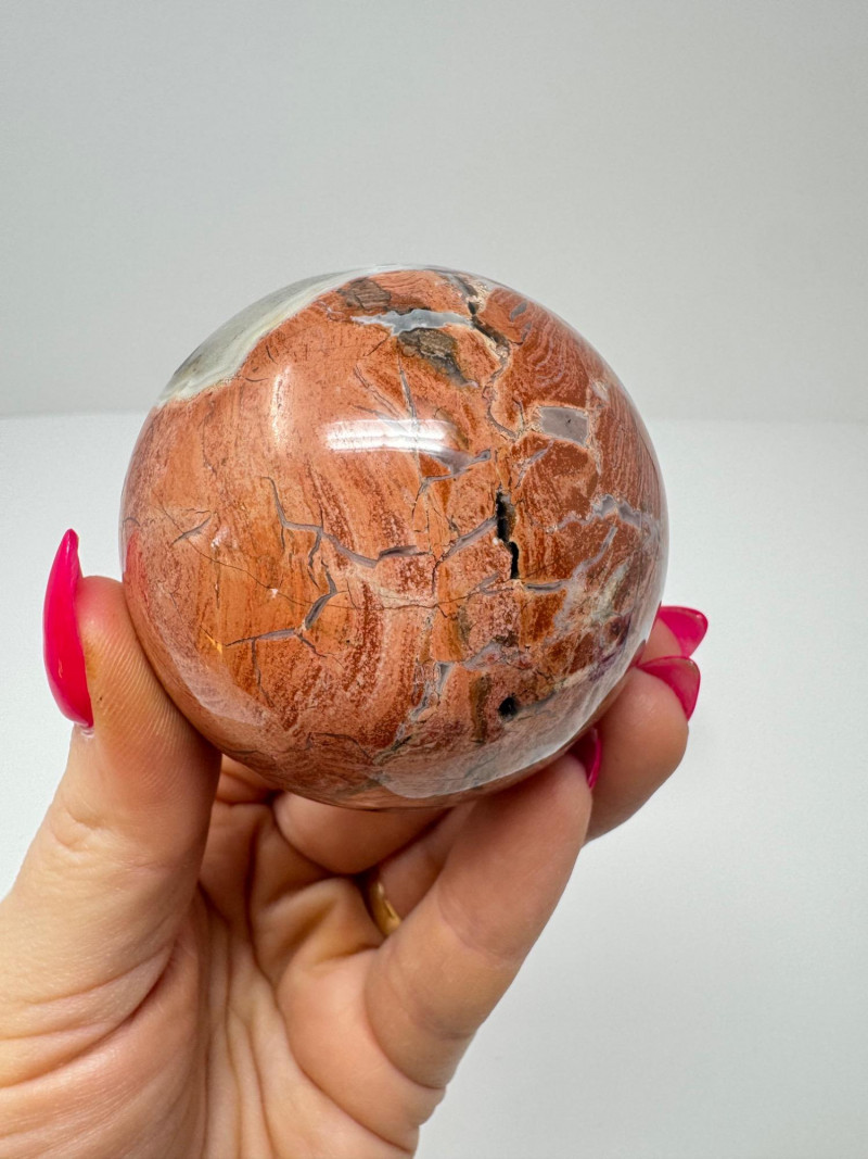 • Petrified Wood or Jasper (multicolor red/cream sphere)