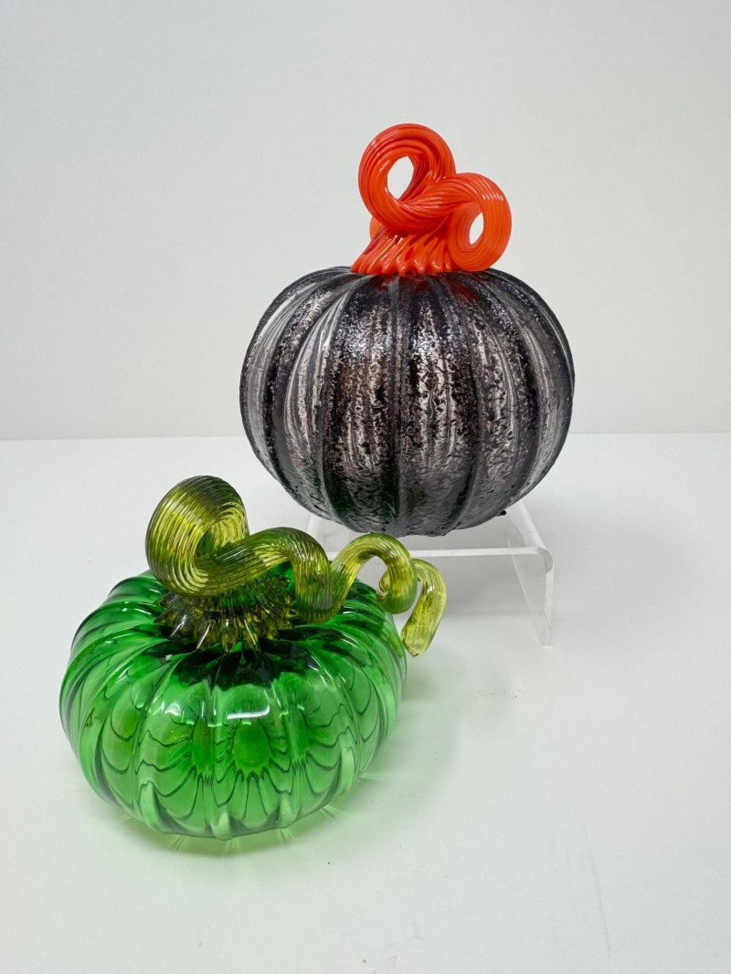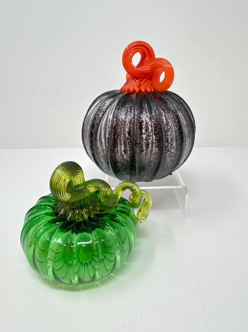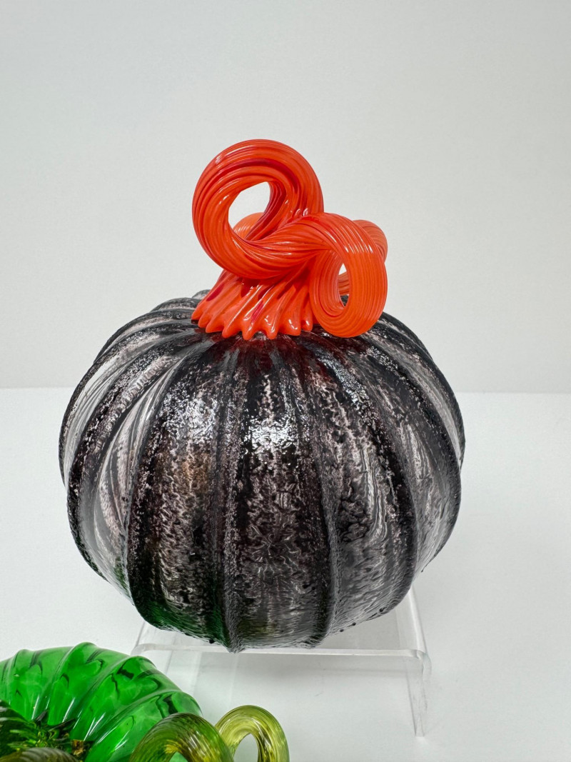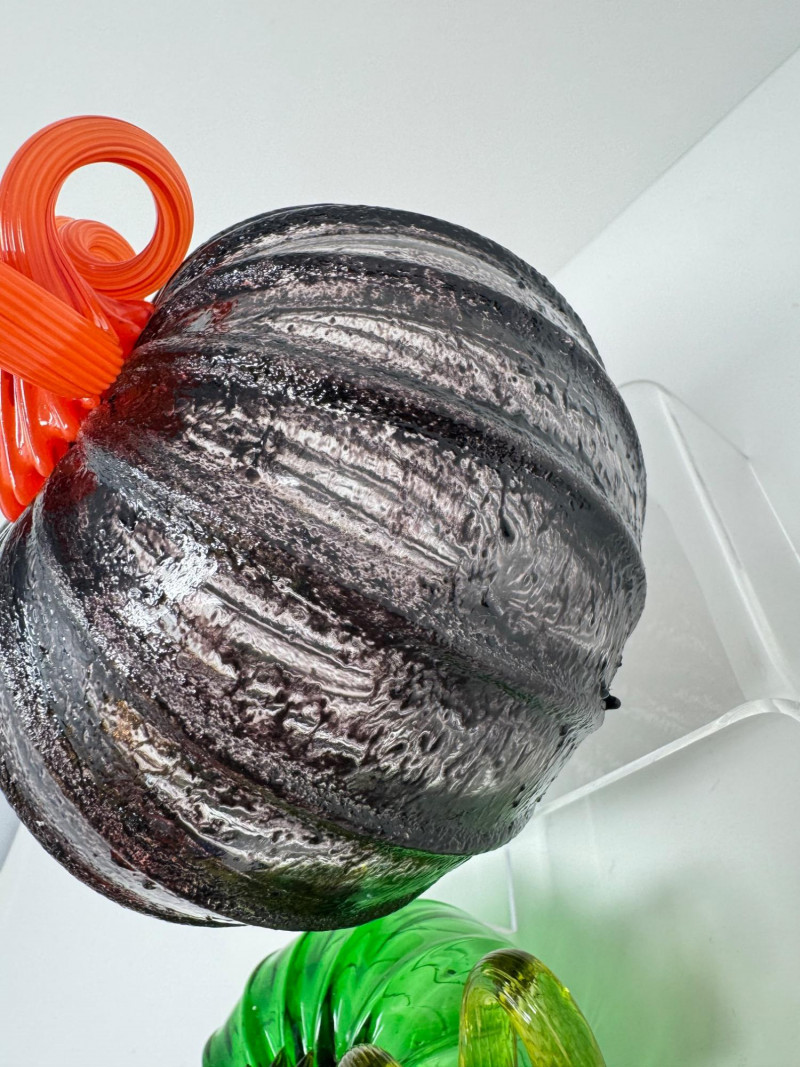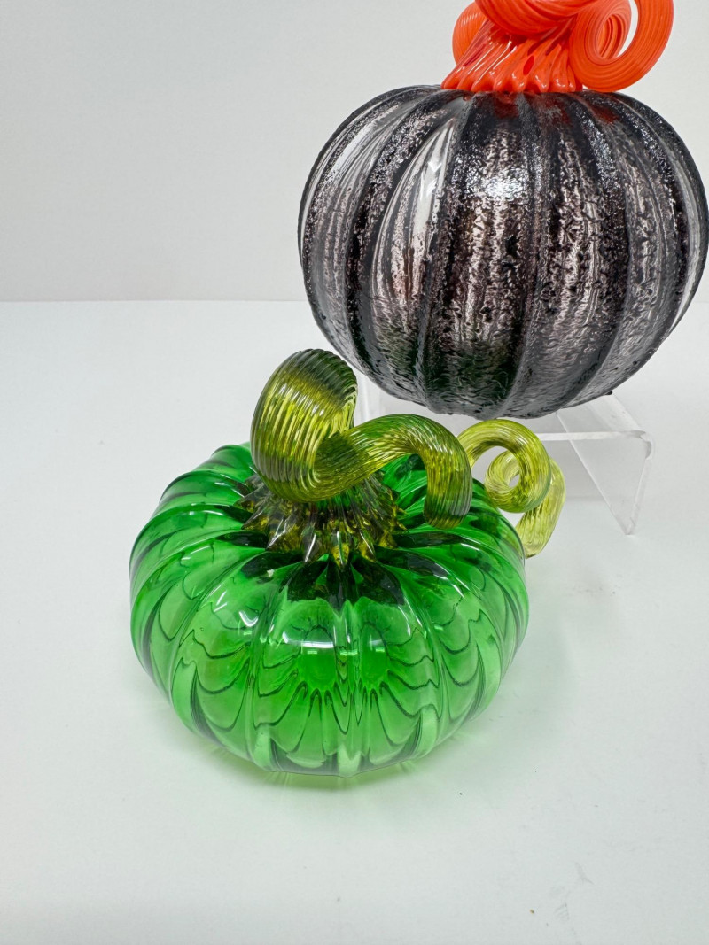 Northwest Glass Pumpkins – Two-Tone Metallic Black & Green Signed 2012. 3 - 5”
