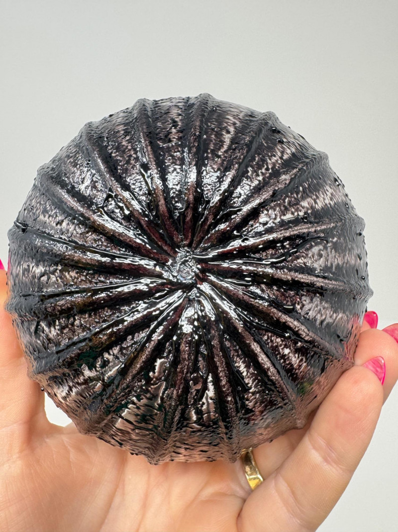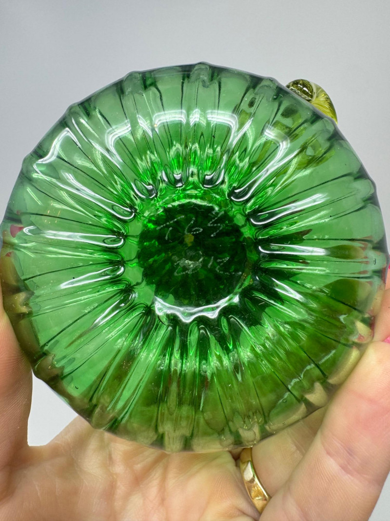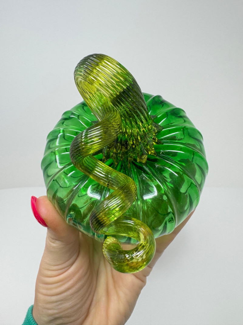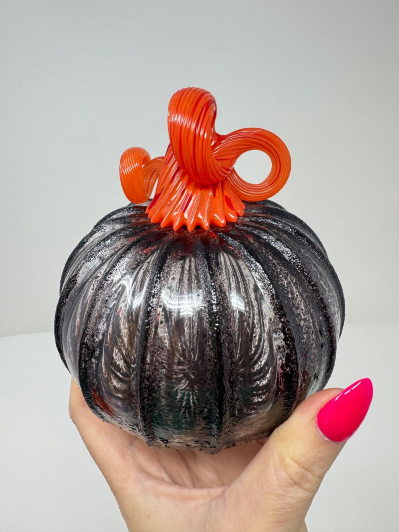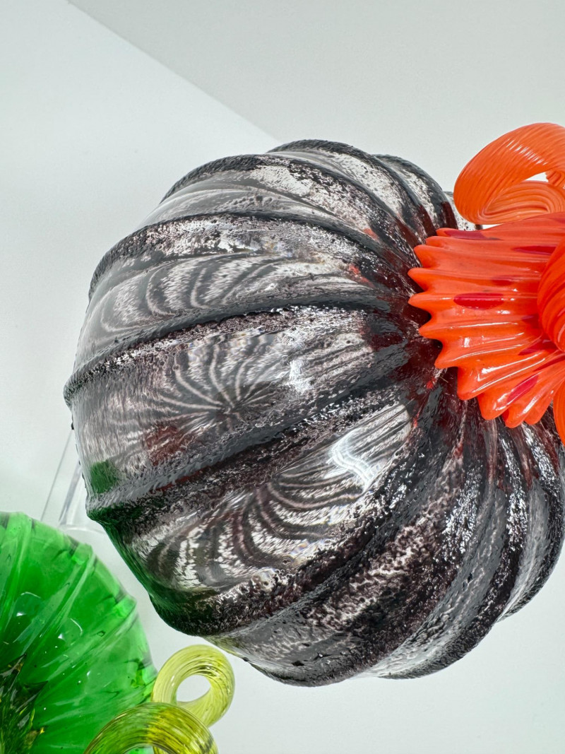 Northwest Glass Pumpkins – Two-Tone Metallic Black & Green Signed 2012. 3 - 5”
