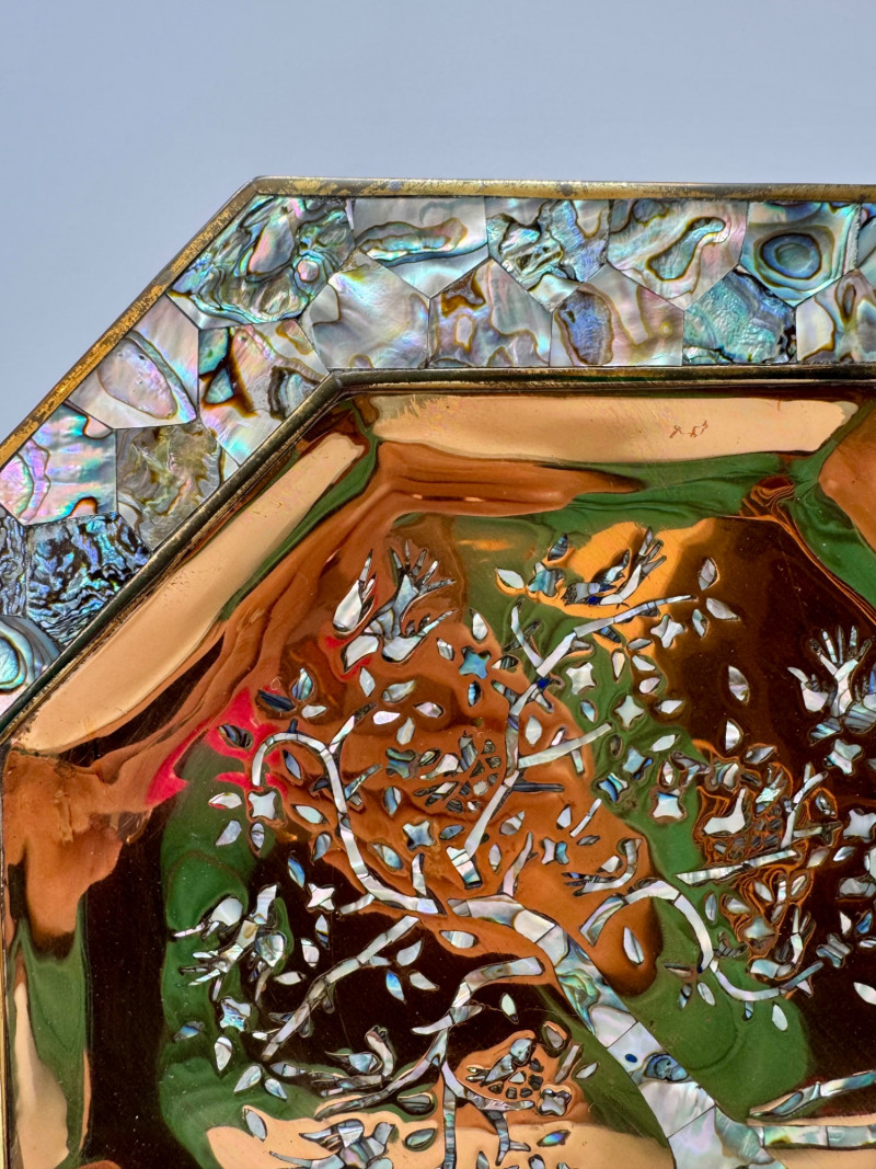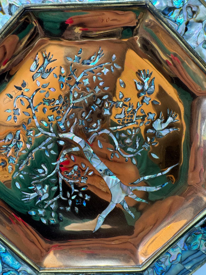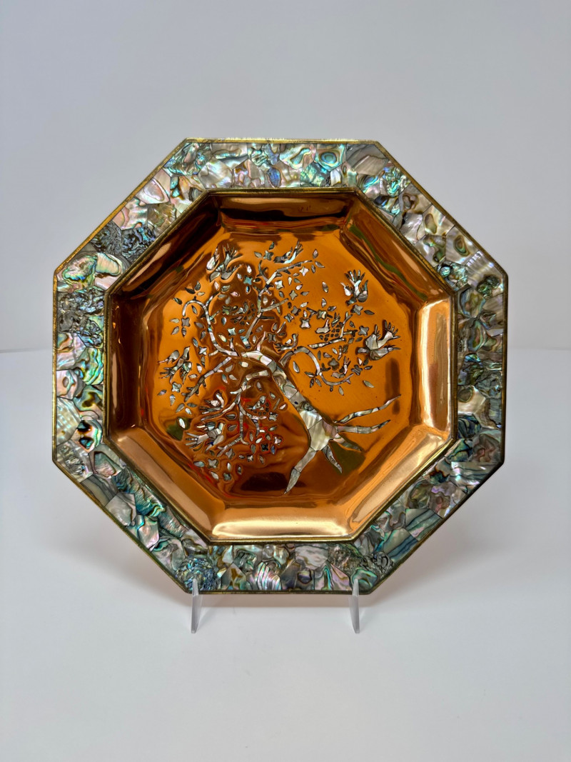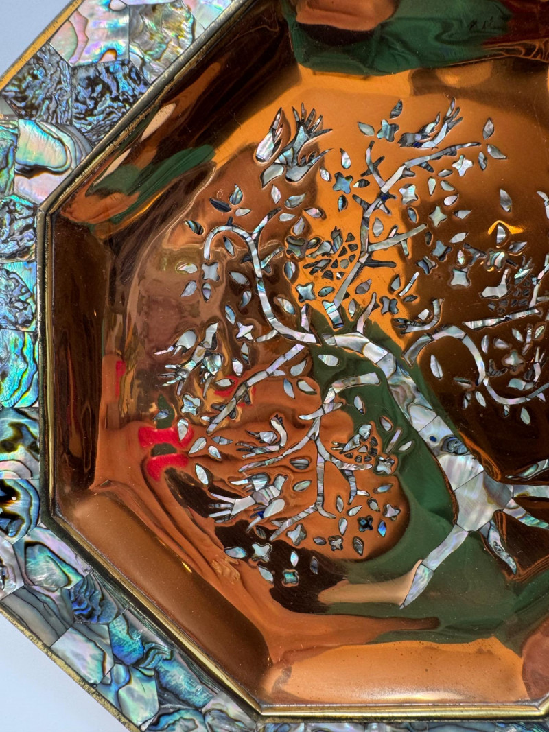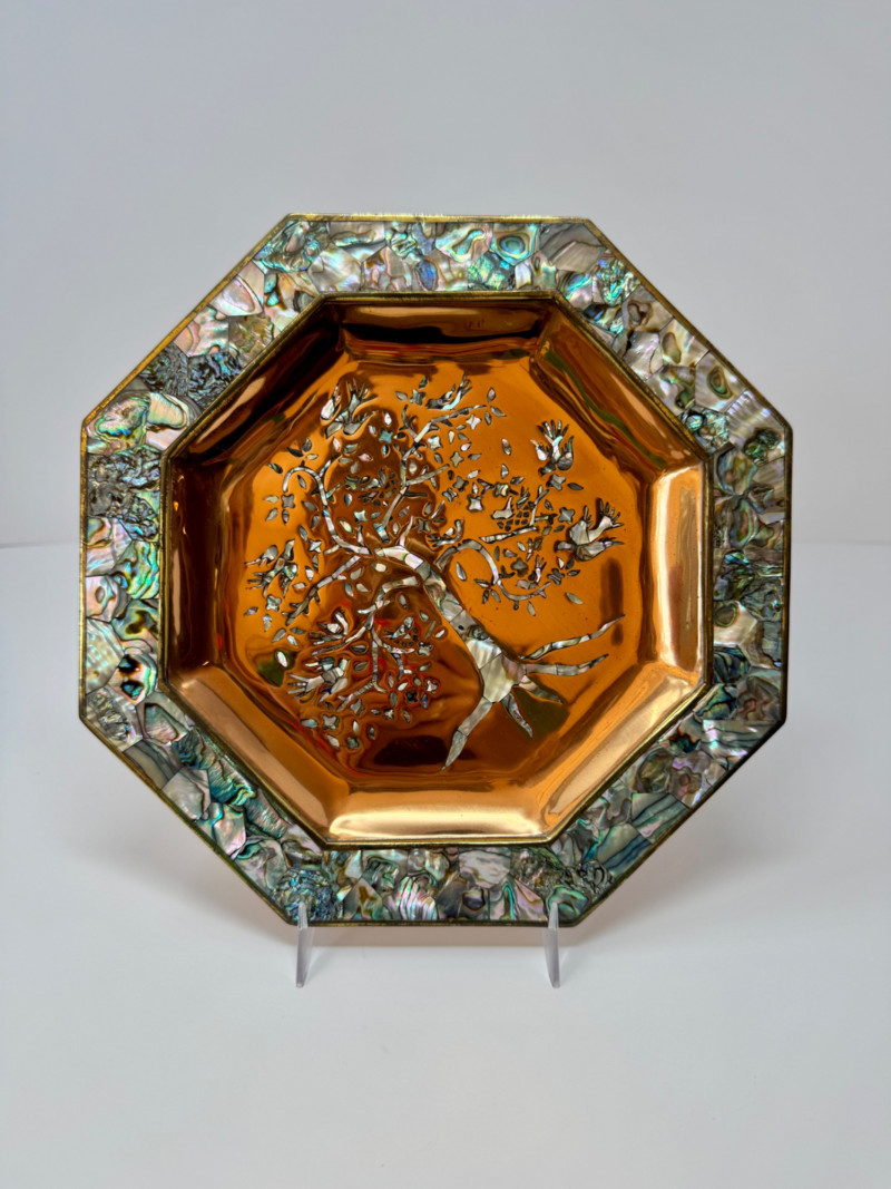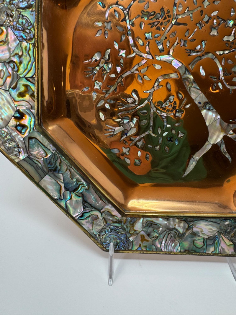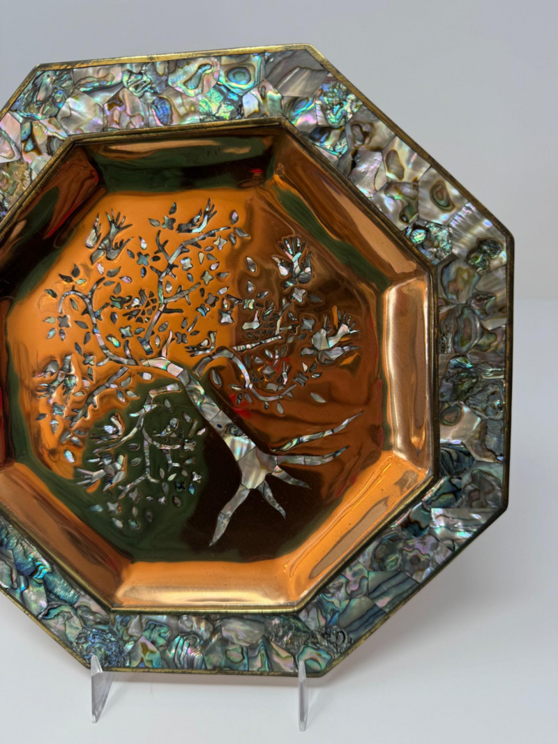 Los Castillo Taxco Plate 781 – Copper-Tone Silverplate, Abalone Inlay.