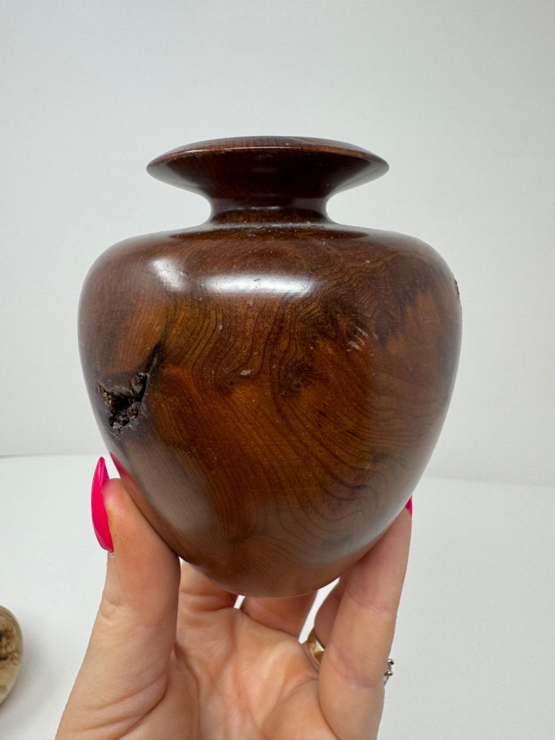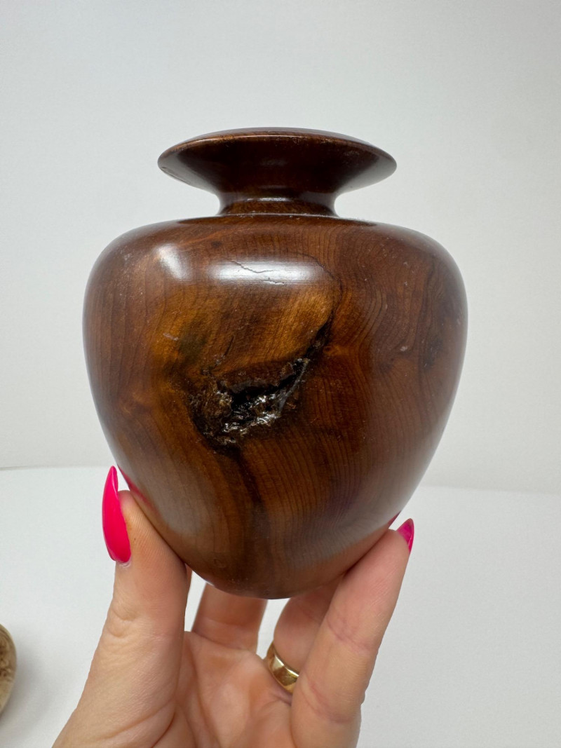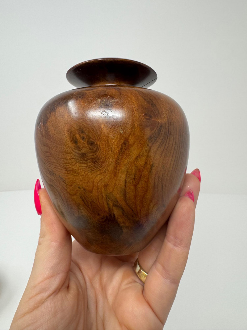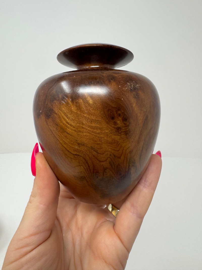 Lot # 71 - Set of 3 Hand-Turned Burl Wood Bud Vases – Redwood & Maple