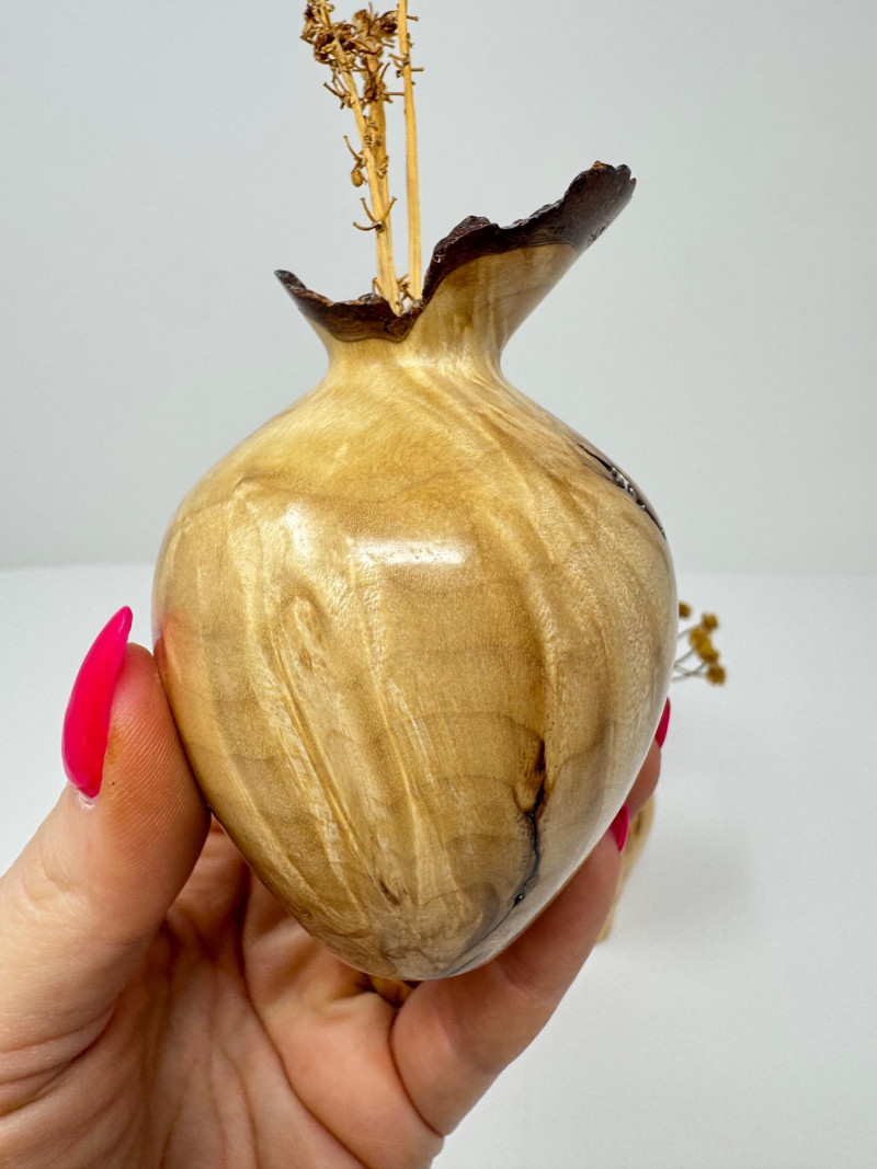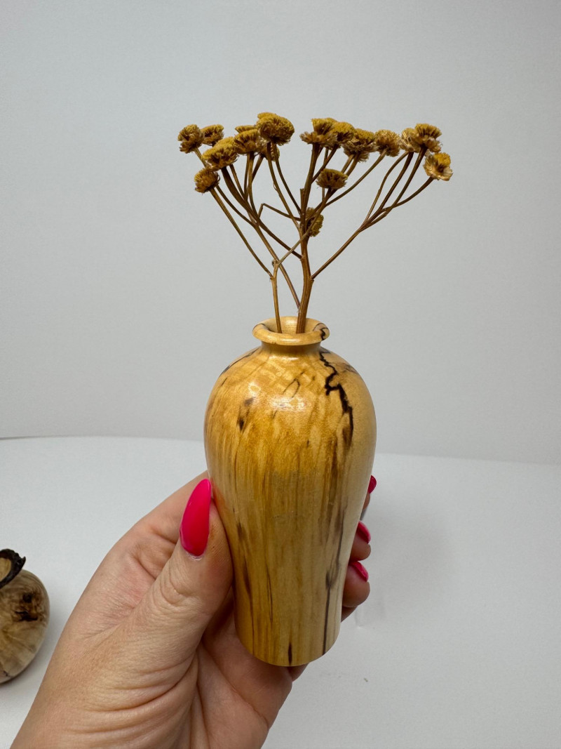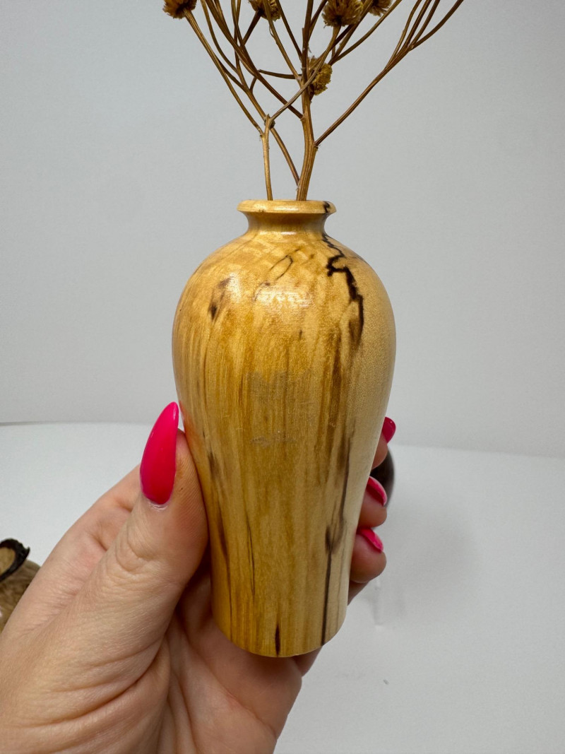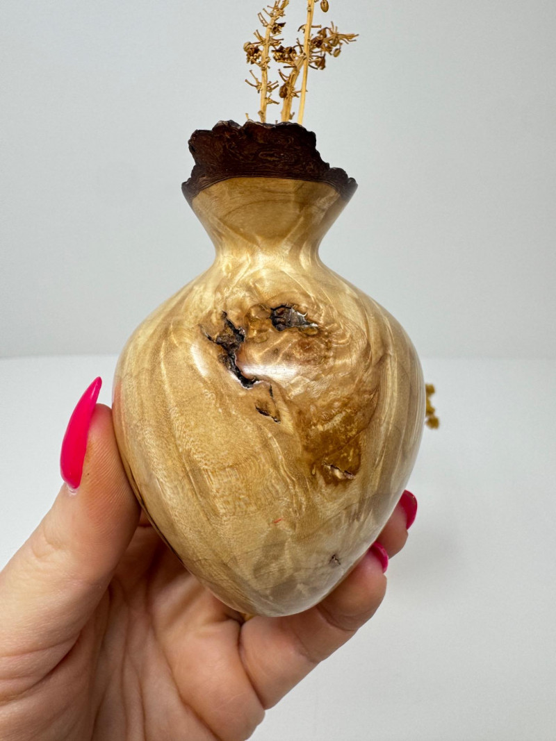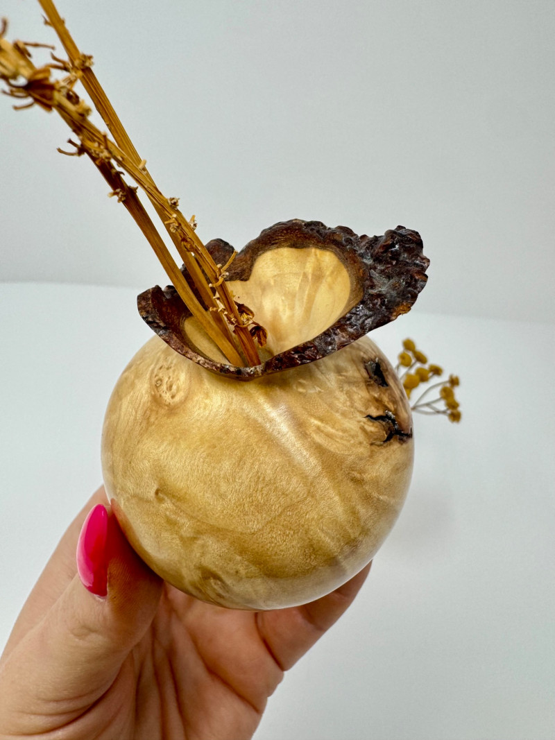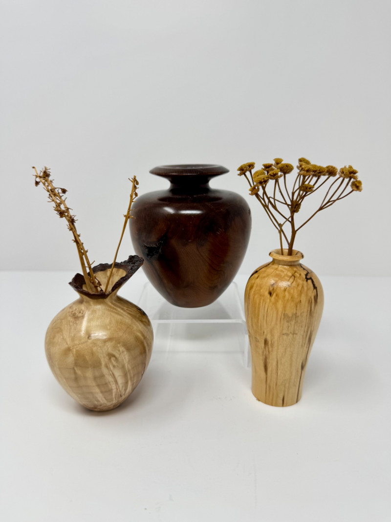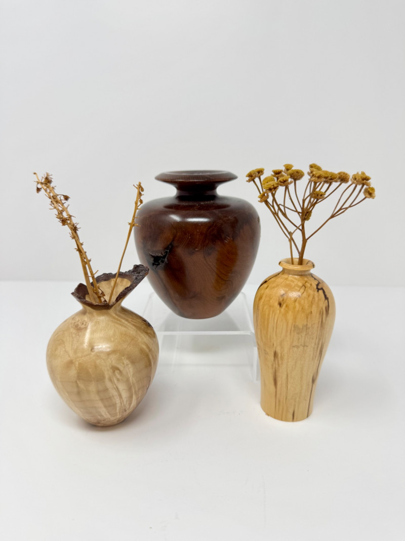 Set of 3 Hand-Turned Burl Wood Bud Vases – Redwood & Maple. Includes: