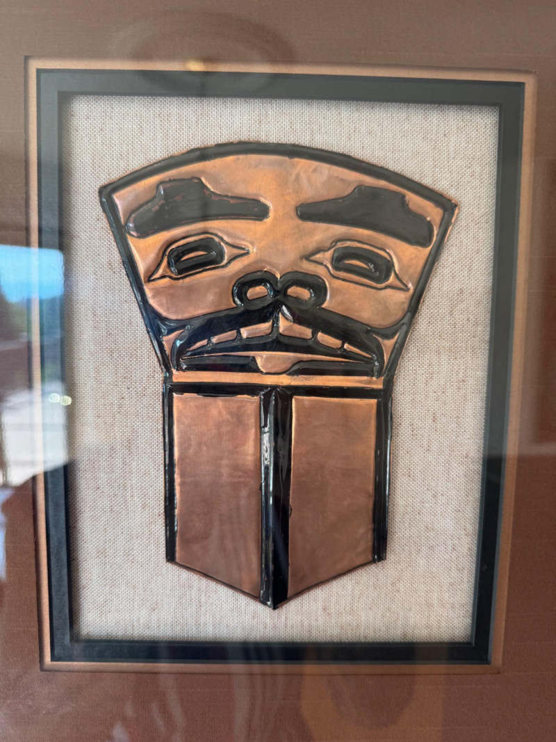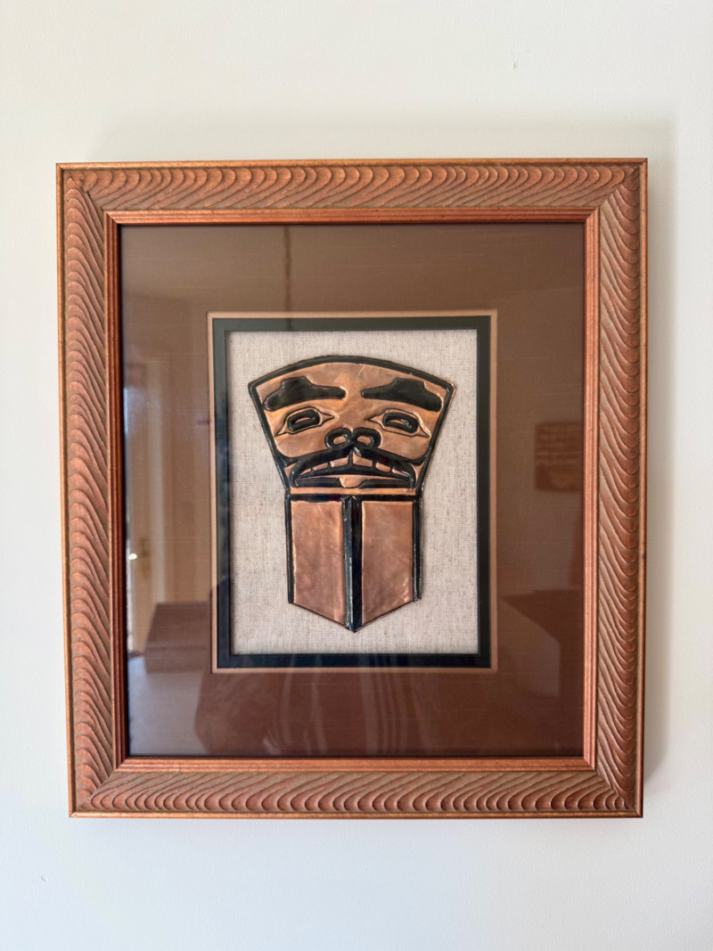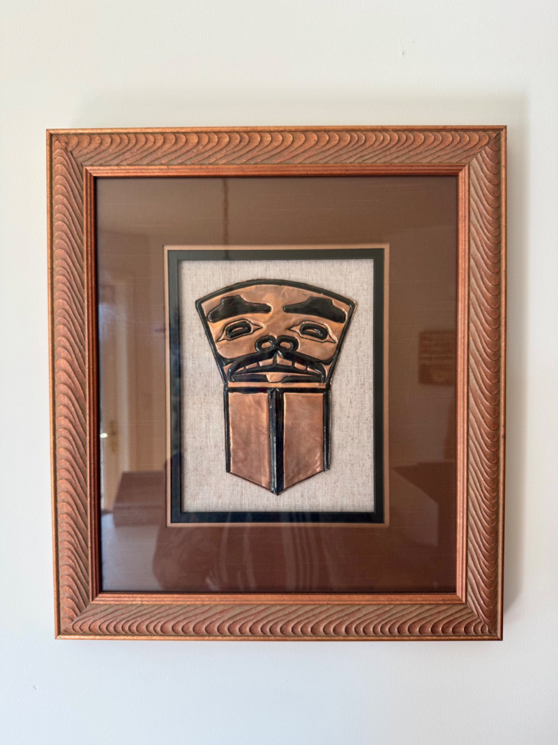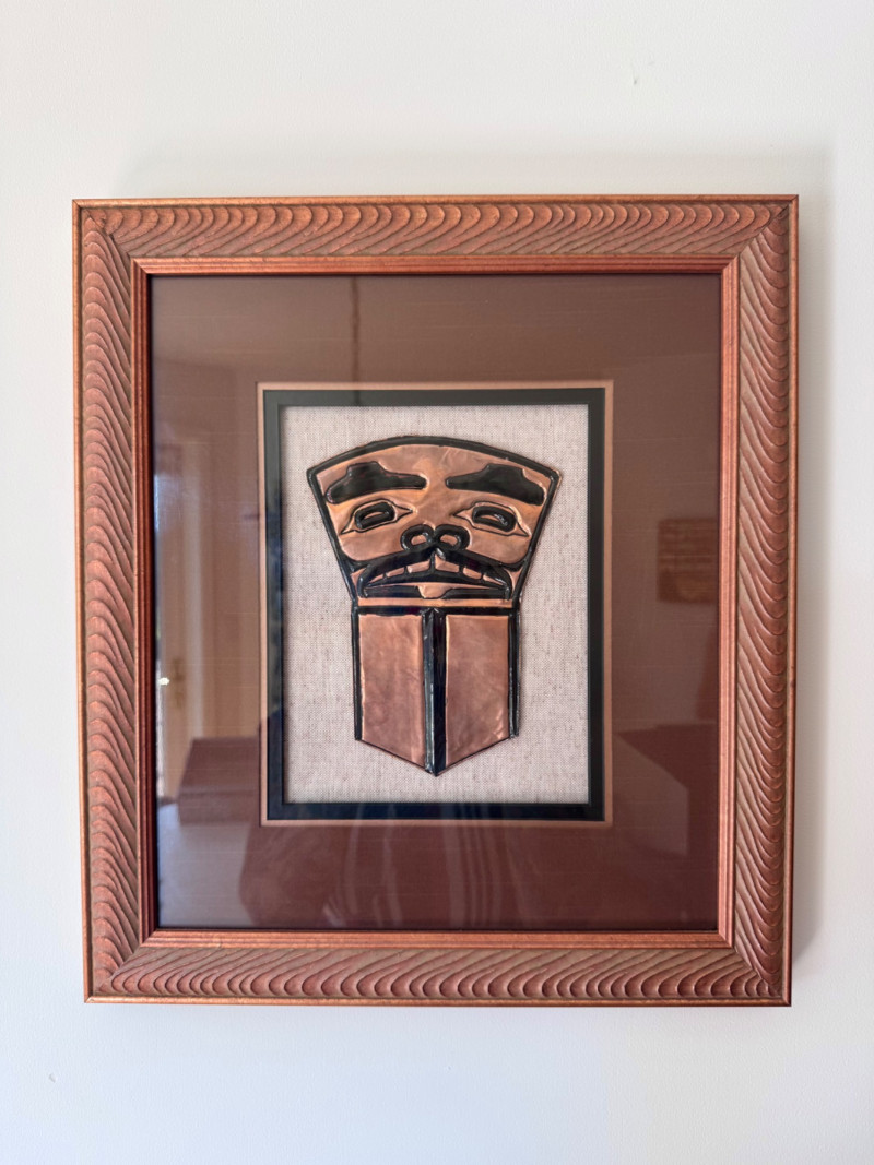Framed Copper Relief Wall Art – In the Style of Haida Copper Shield. 14 x 16”